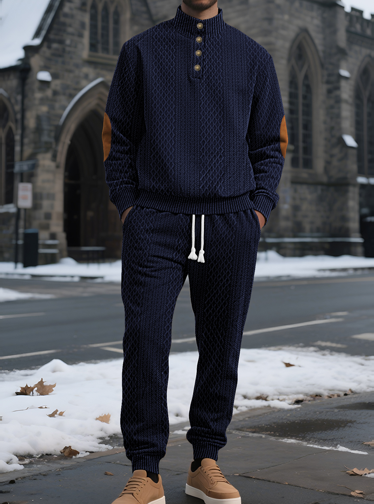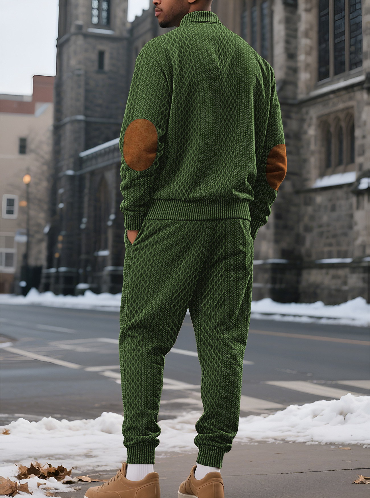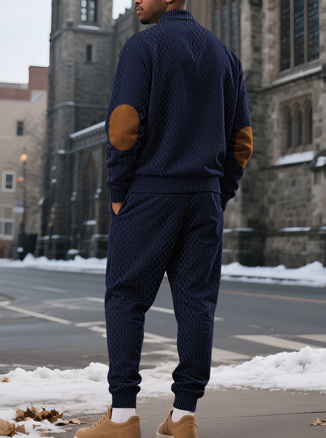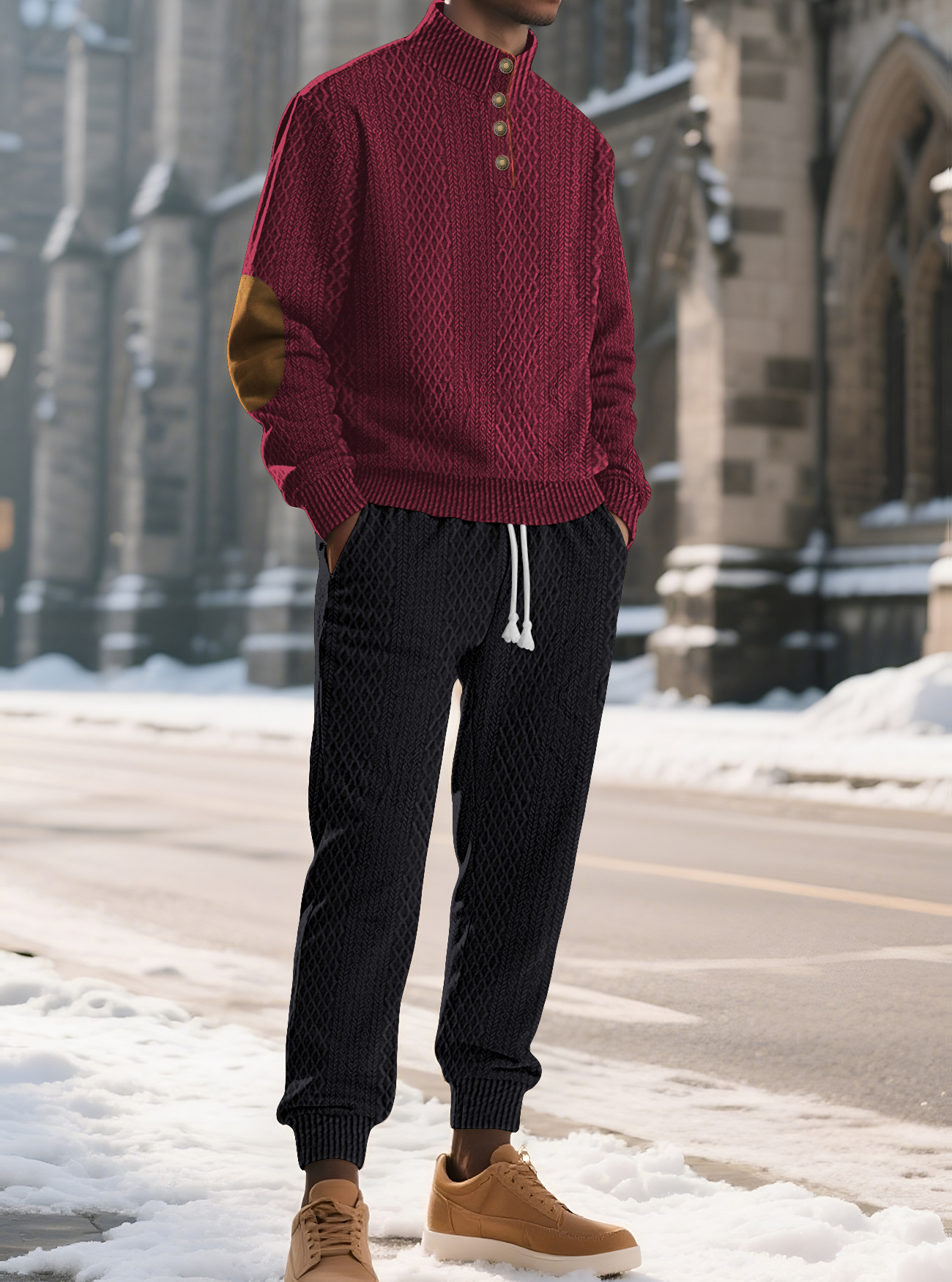 Transfronterizo Europa y América Amazon hombre cuello alto Jacquard casual bordado sweaters deportivos de color sólido manga larga pantalones largos set