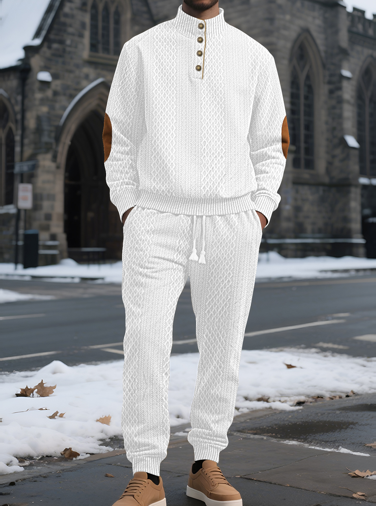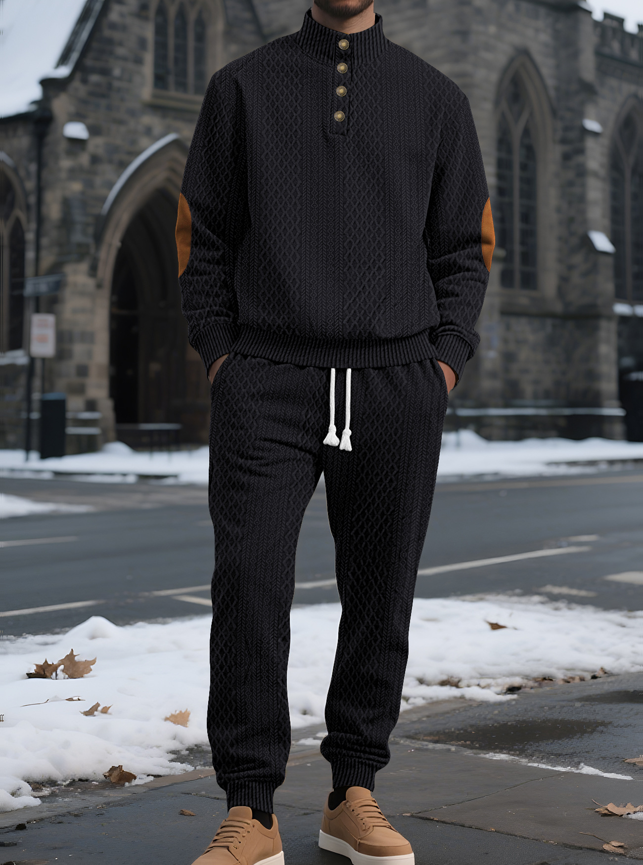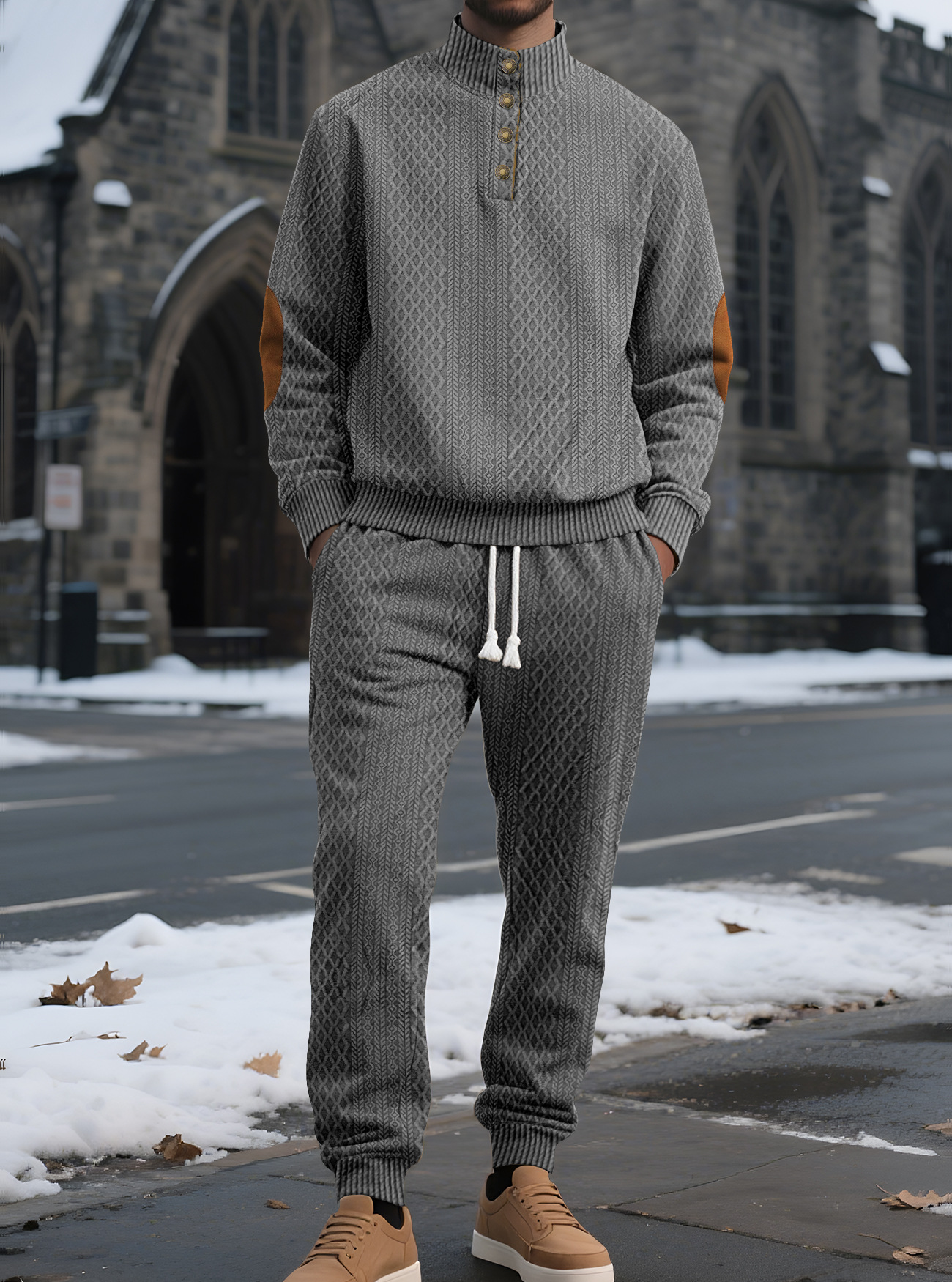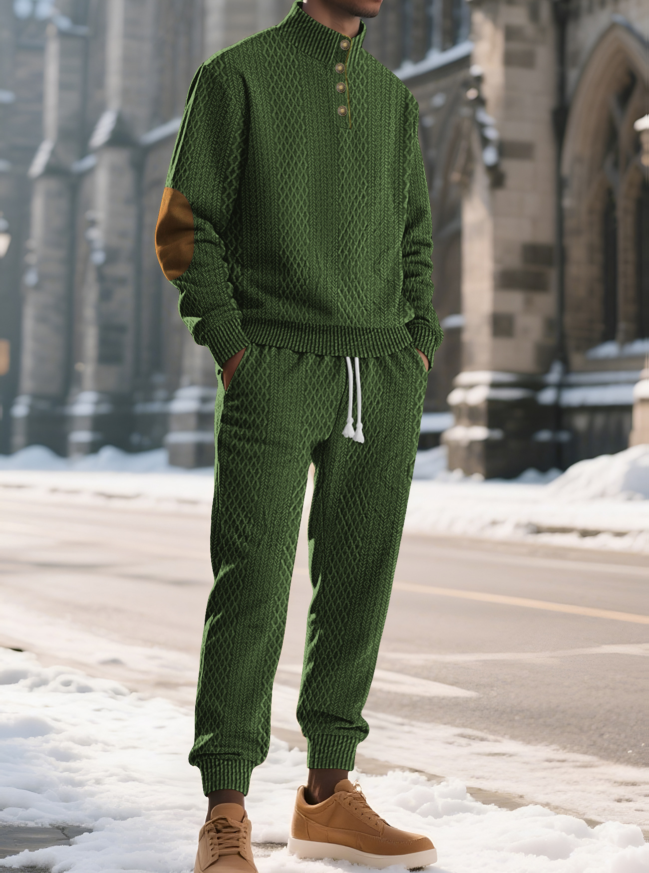 Transfronterizo Europa y América Amazon hombre cuello alto Jacquard casual bordado sweaters deportivos de color sólido manga larga pantalones largos set