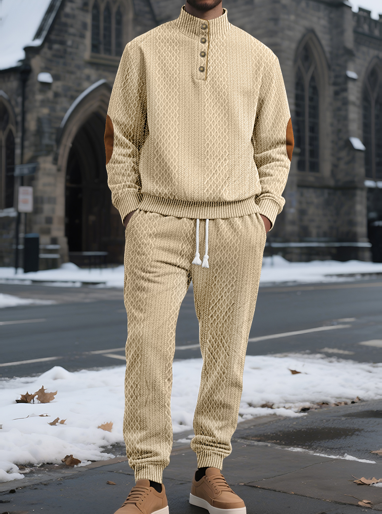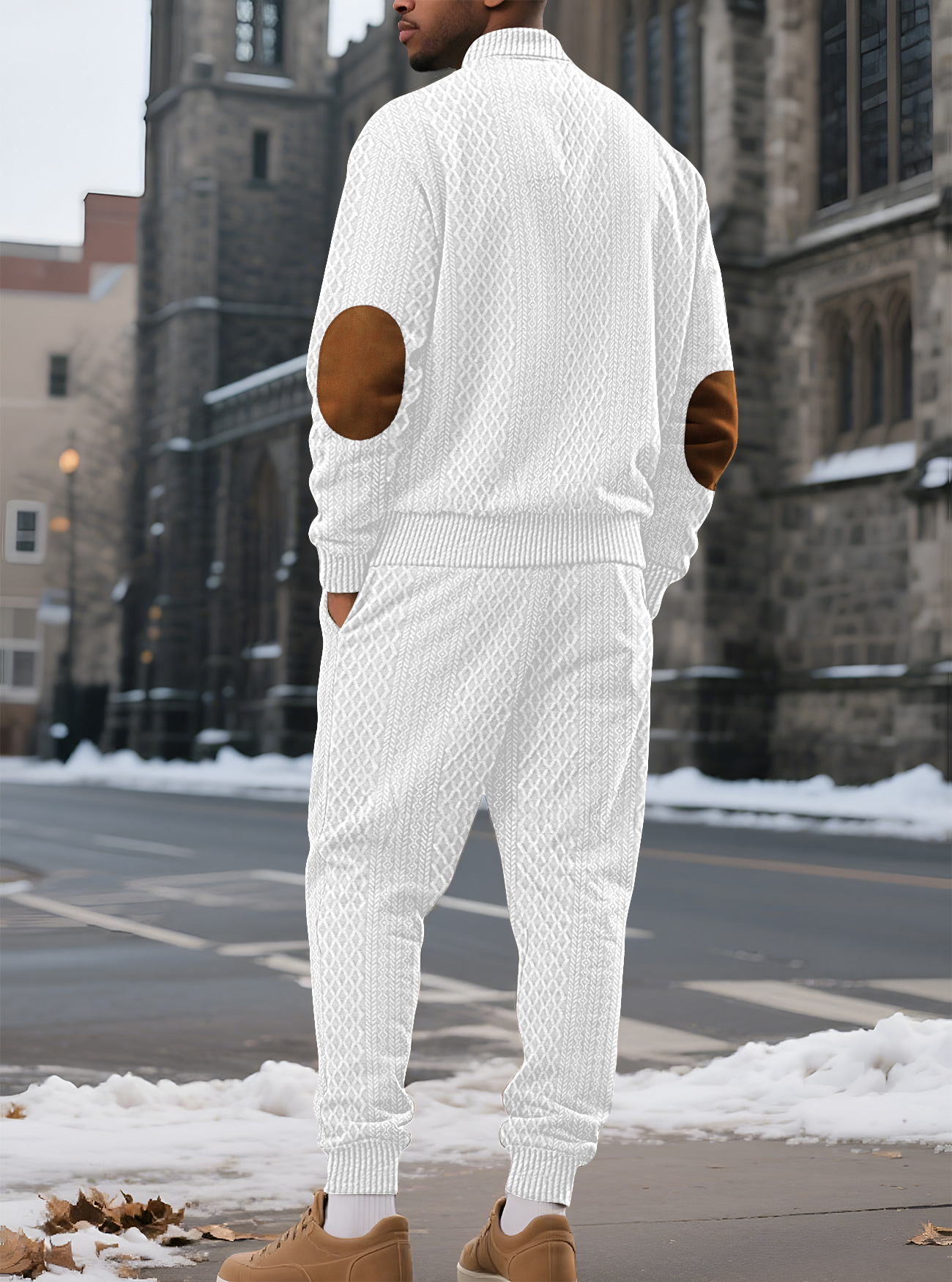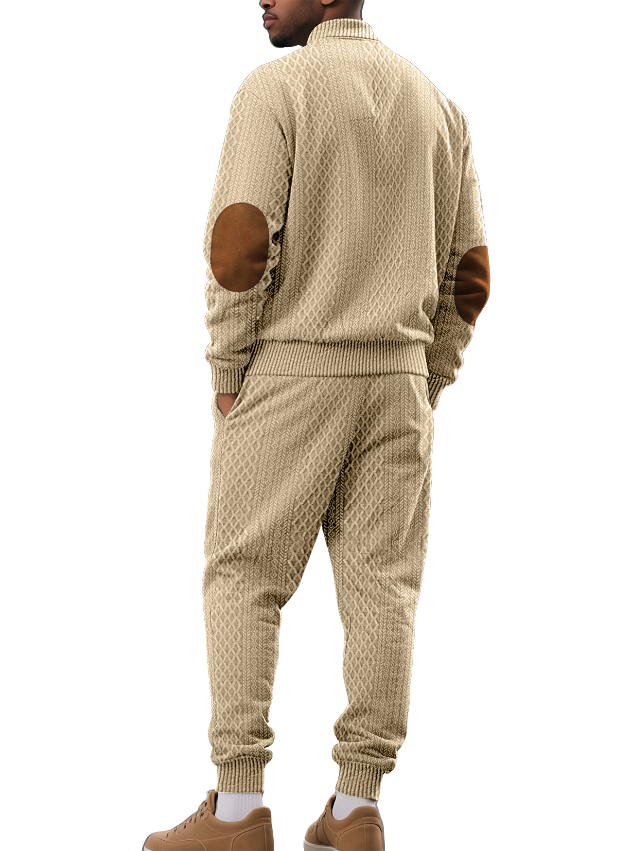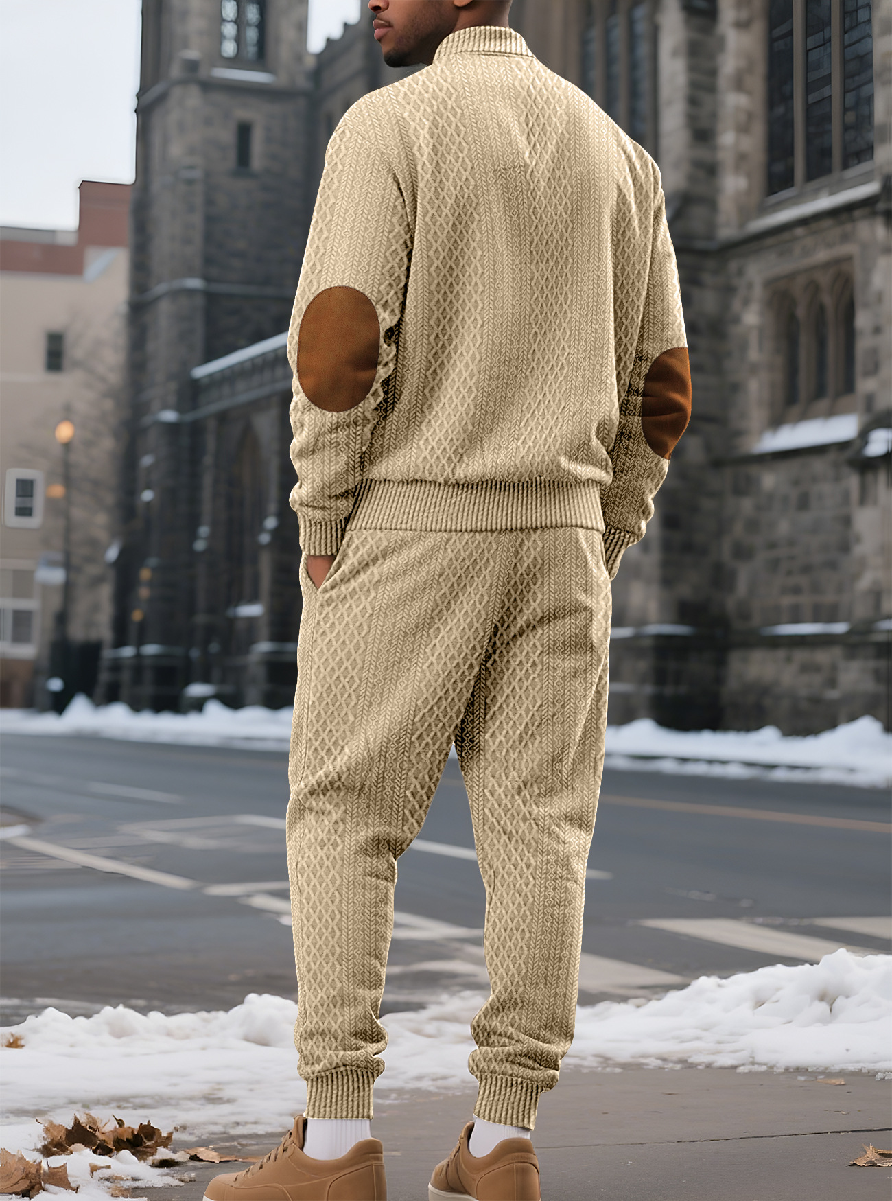 Transfronterizo Europa y América Amazon hombre cuello alto Jacquard casual bordado sweaters deportivos de color sólido manga larga pantalones largos set