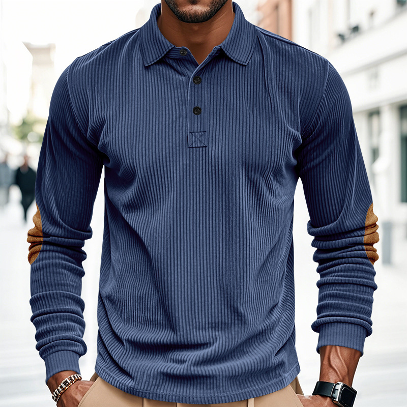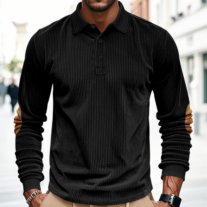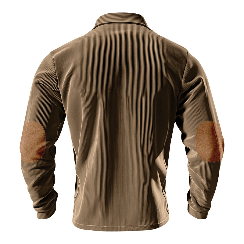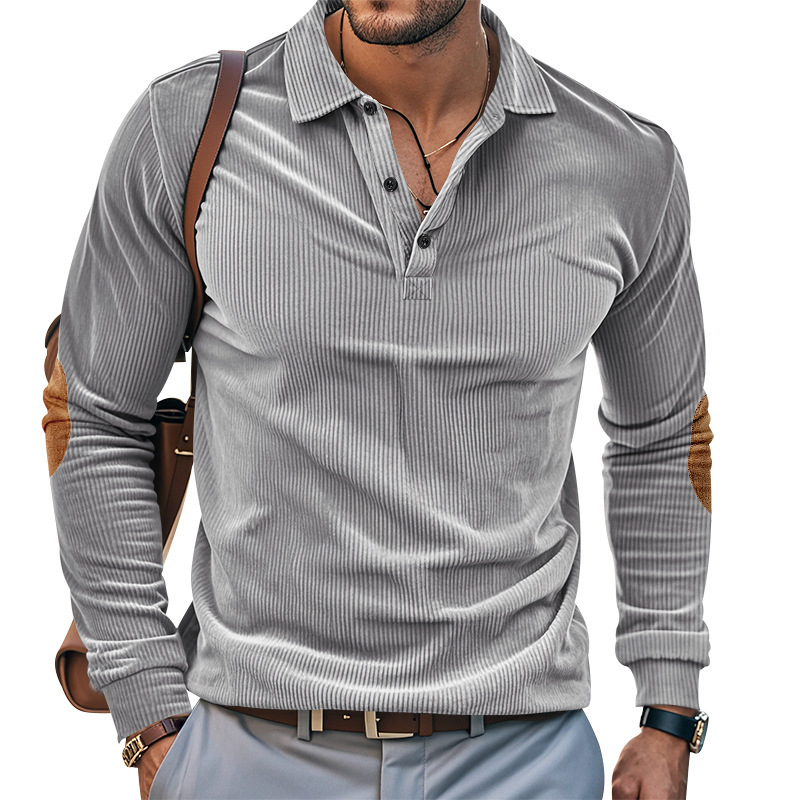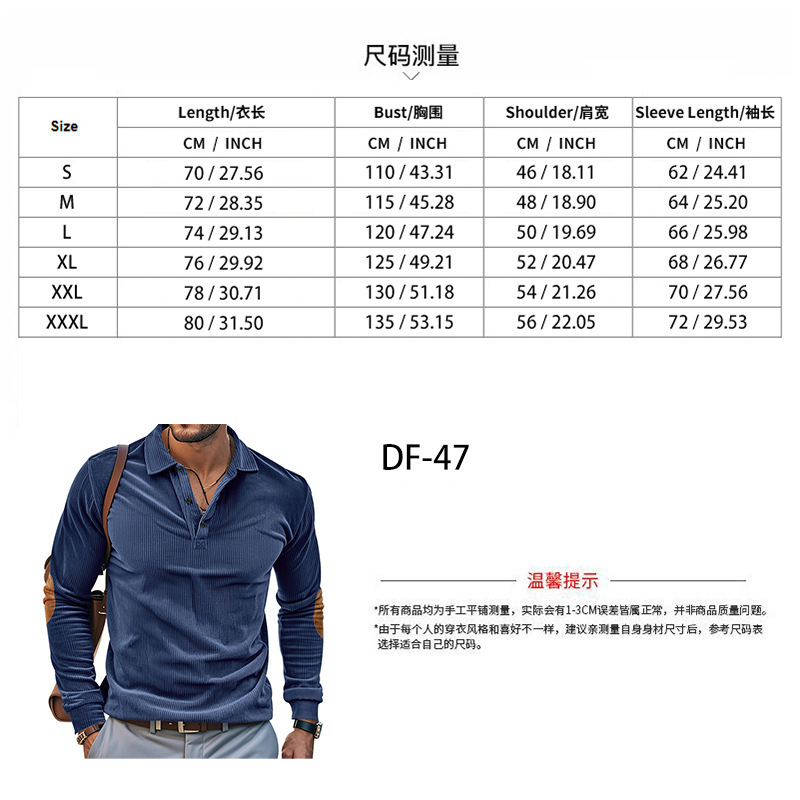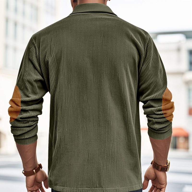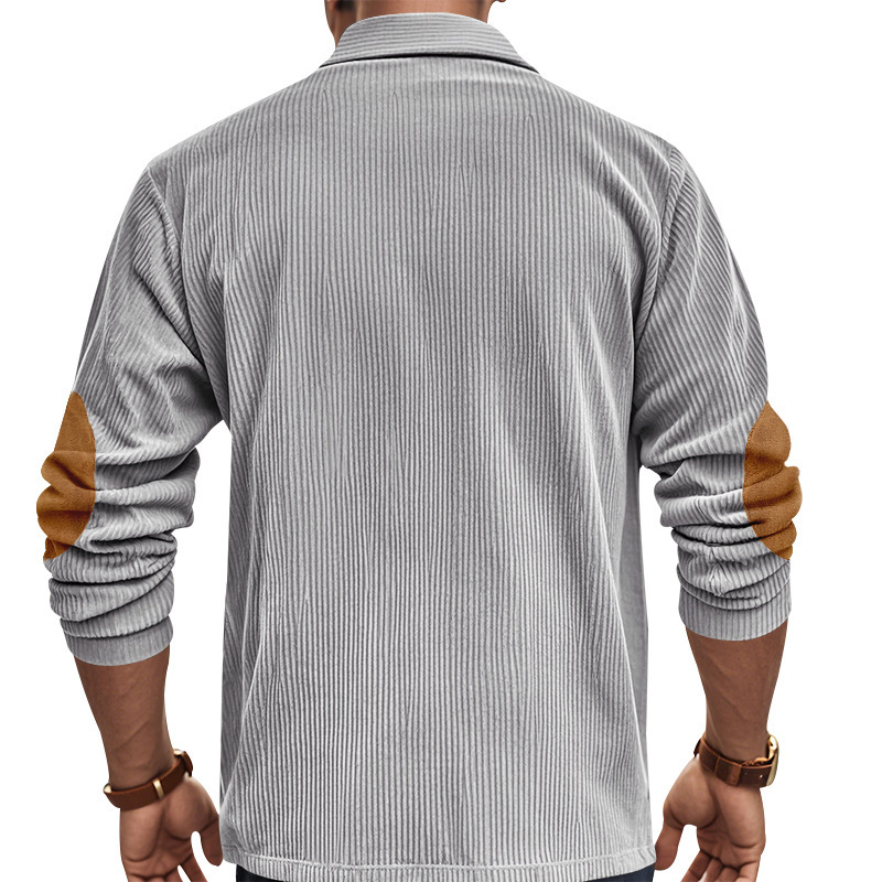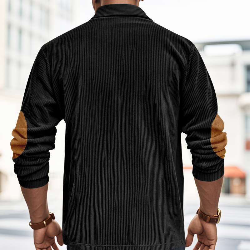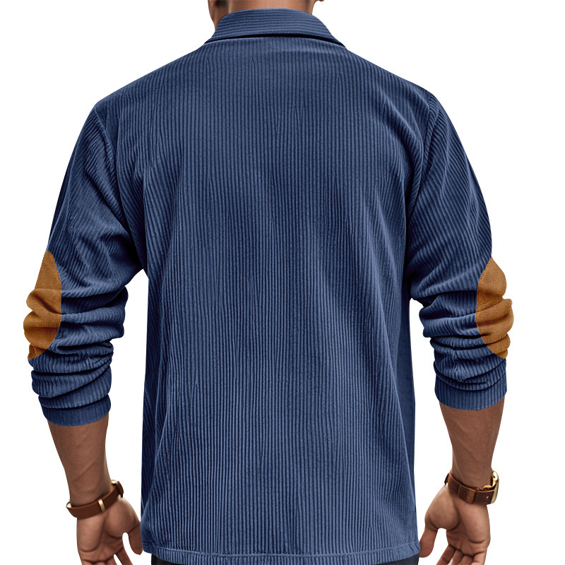 Venta caliente transfronteriza hombres americanos primavera y otoño pana retro suelto casual al aire libre parche de manga larga camisa de fondo POLO