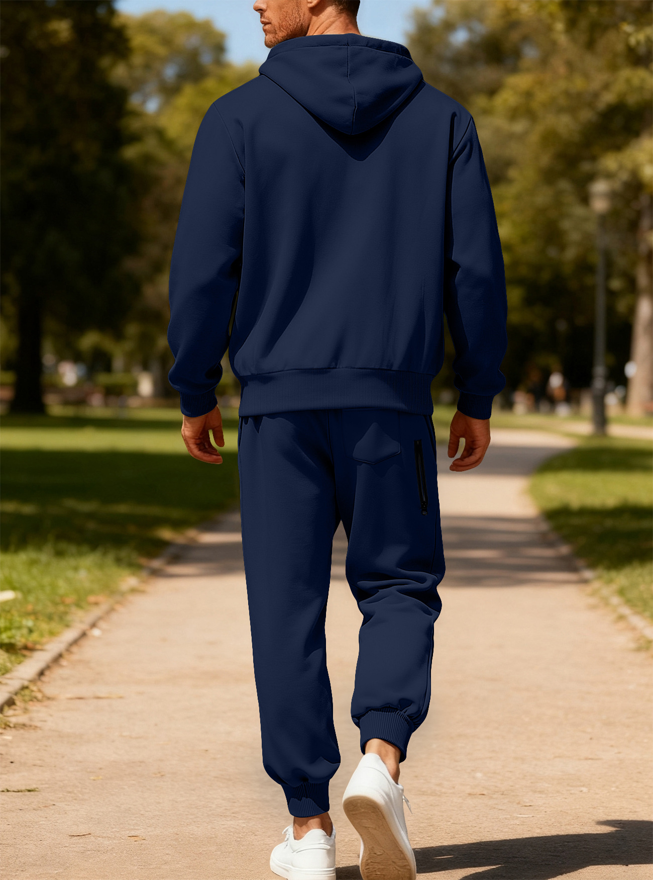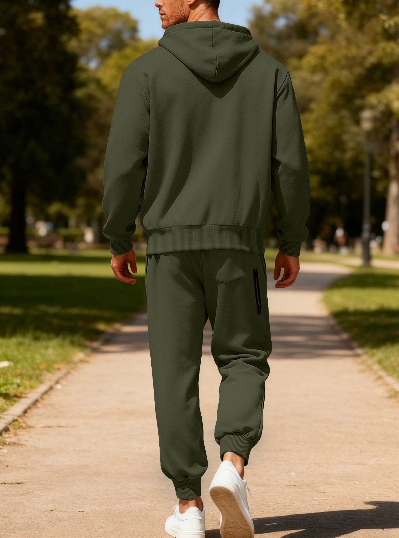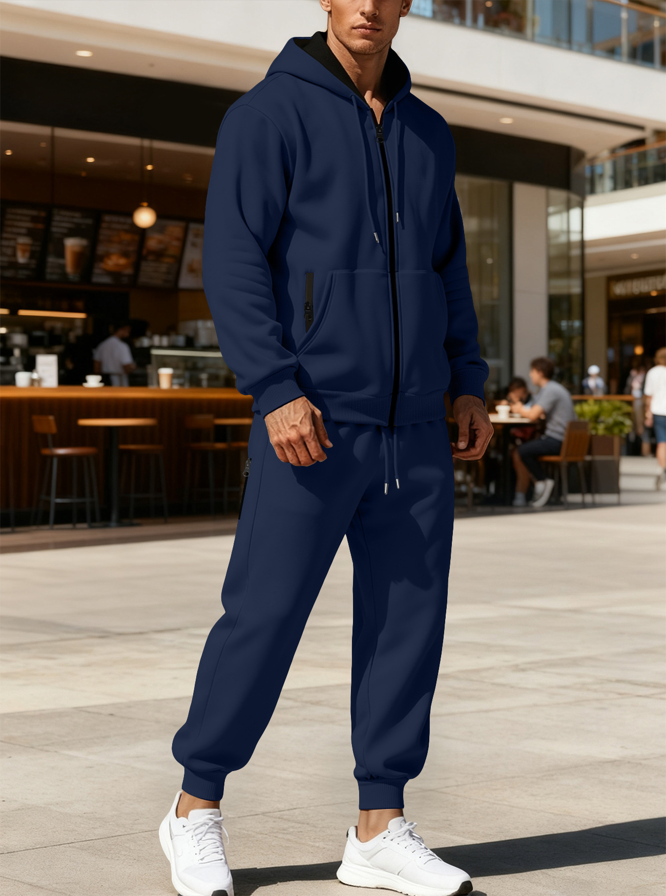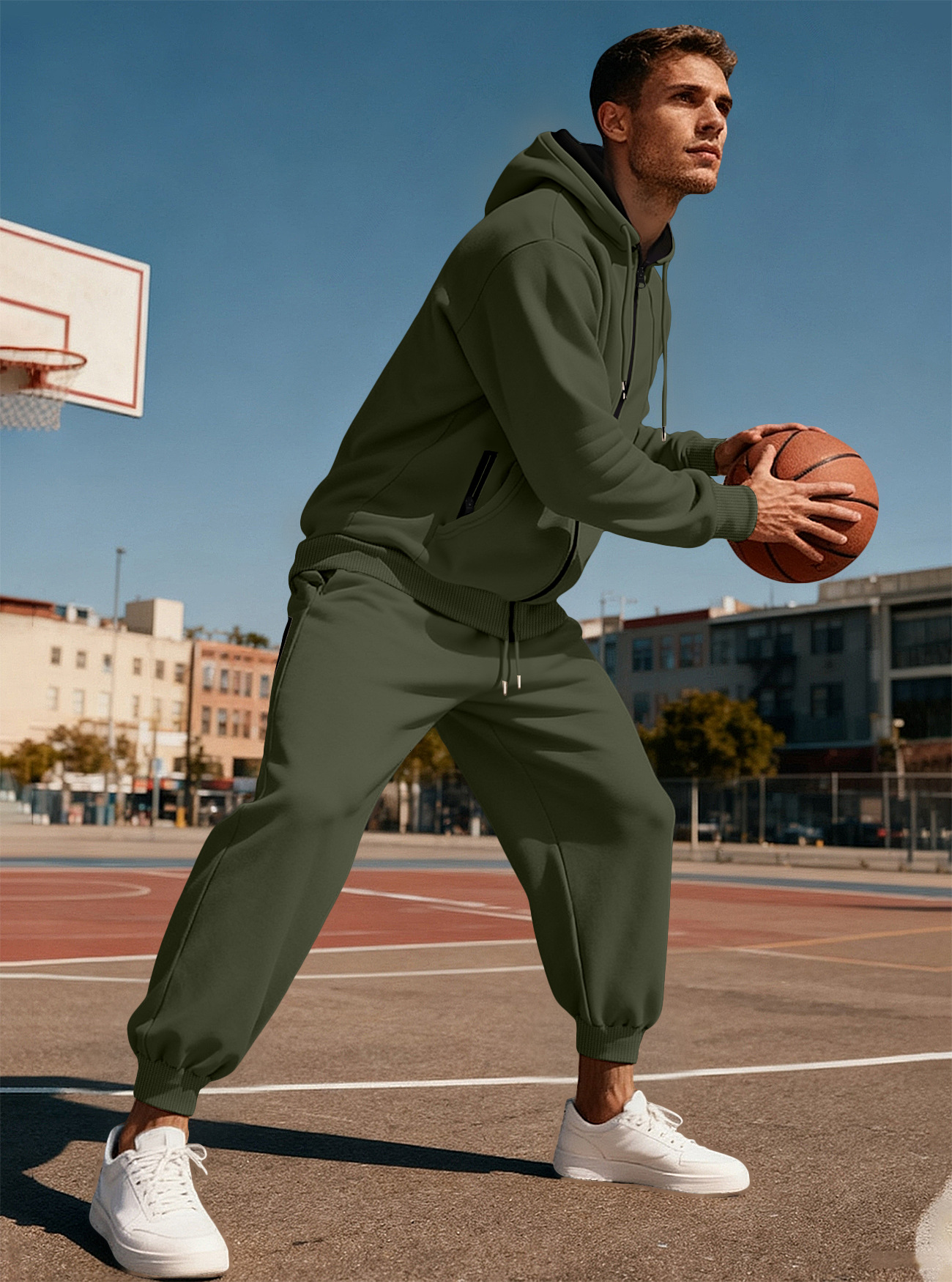 Transfronterizos Europa y América Amazon otoño y invierno masculino de color sólido con cremallera caliente con manga larga encapuchada juego deportivo casual
