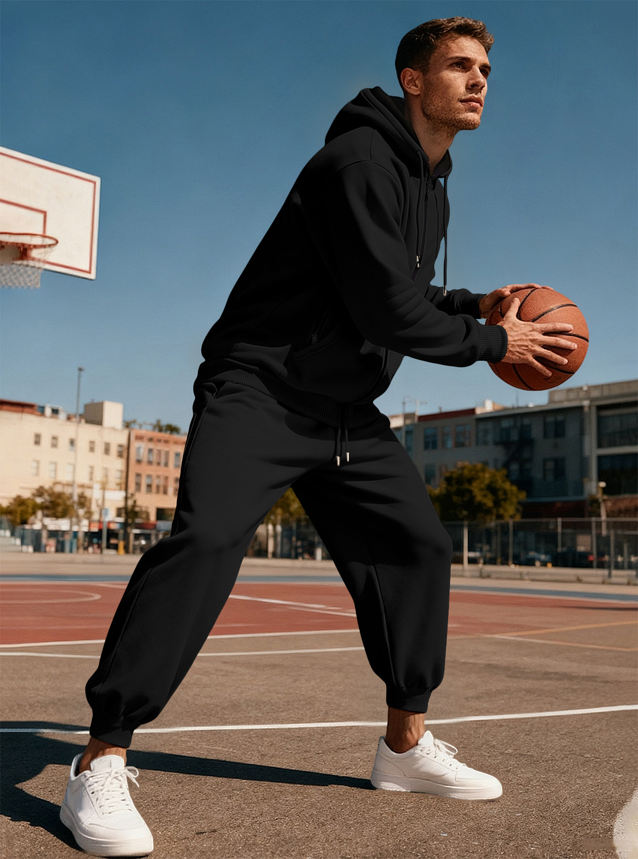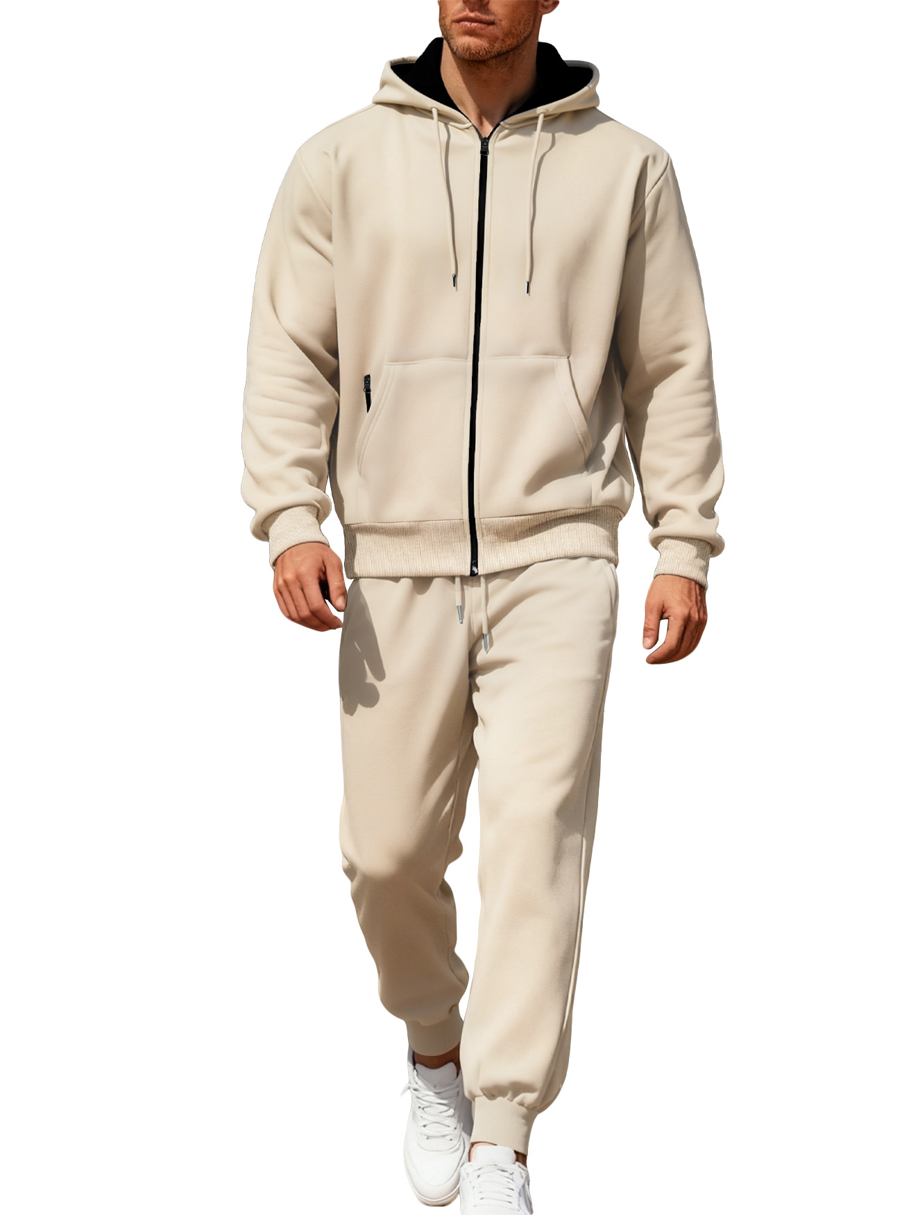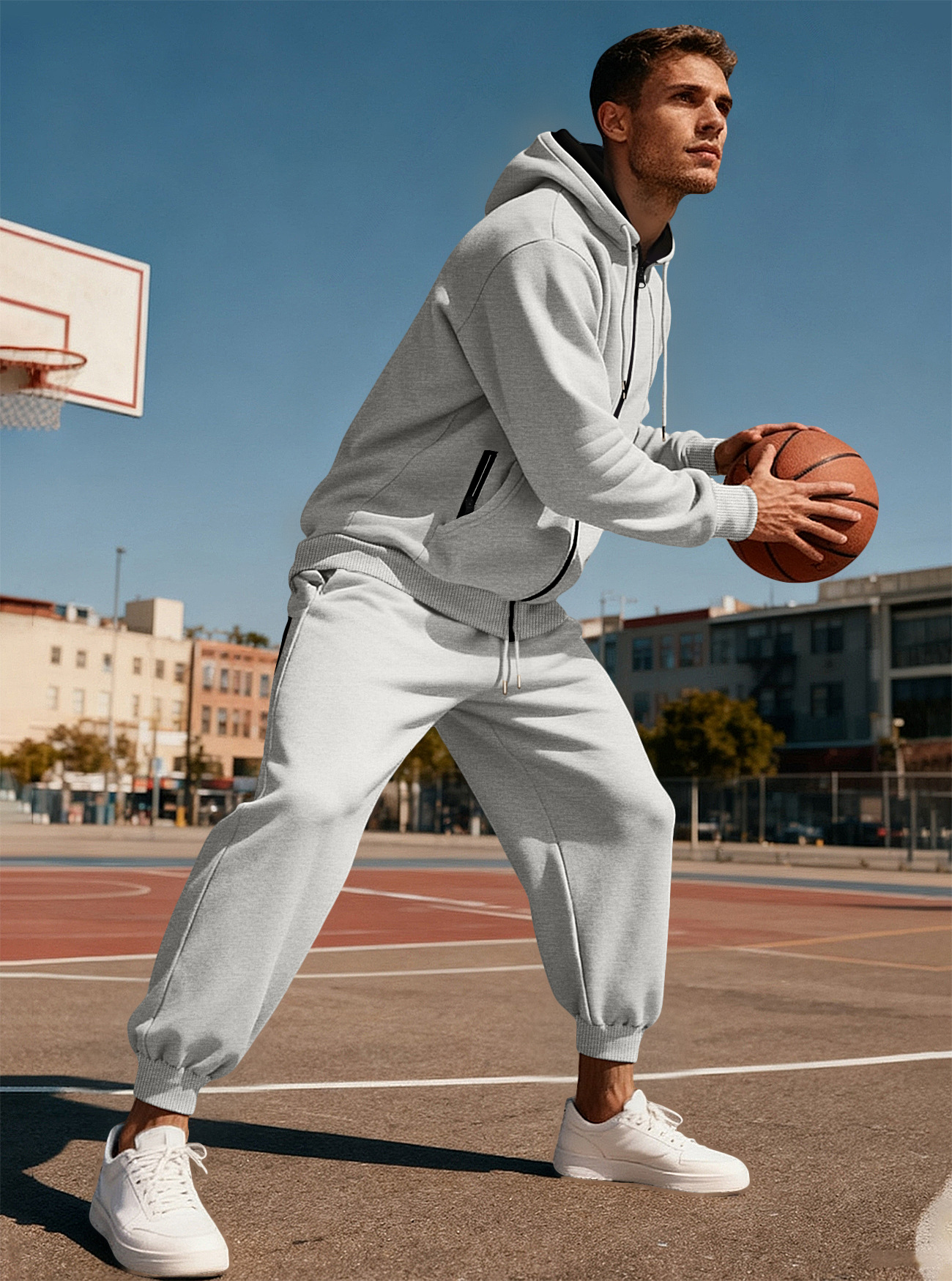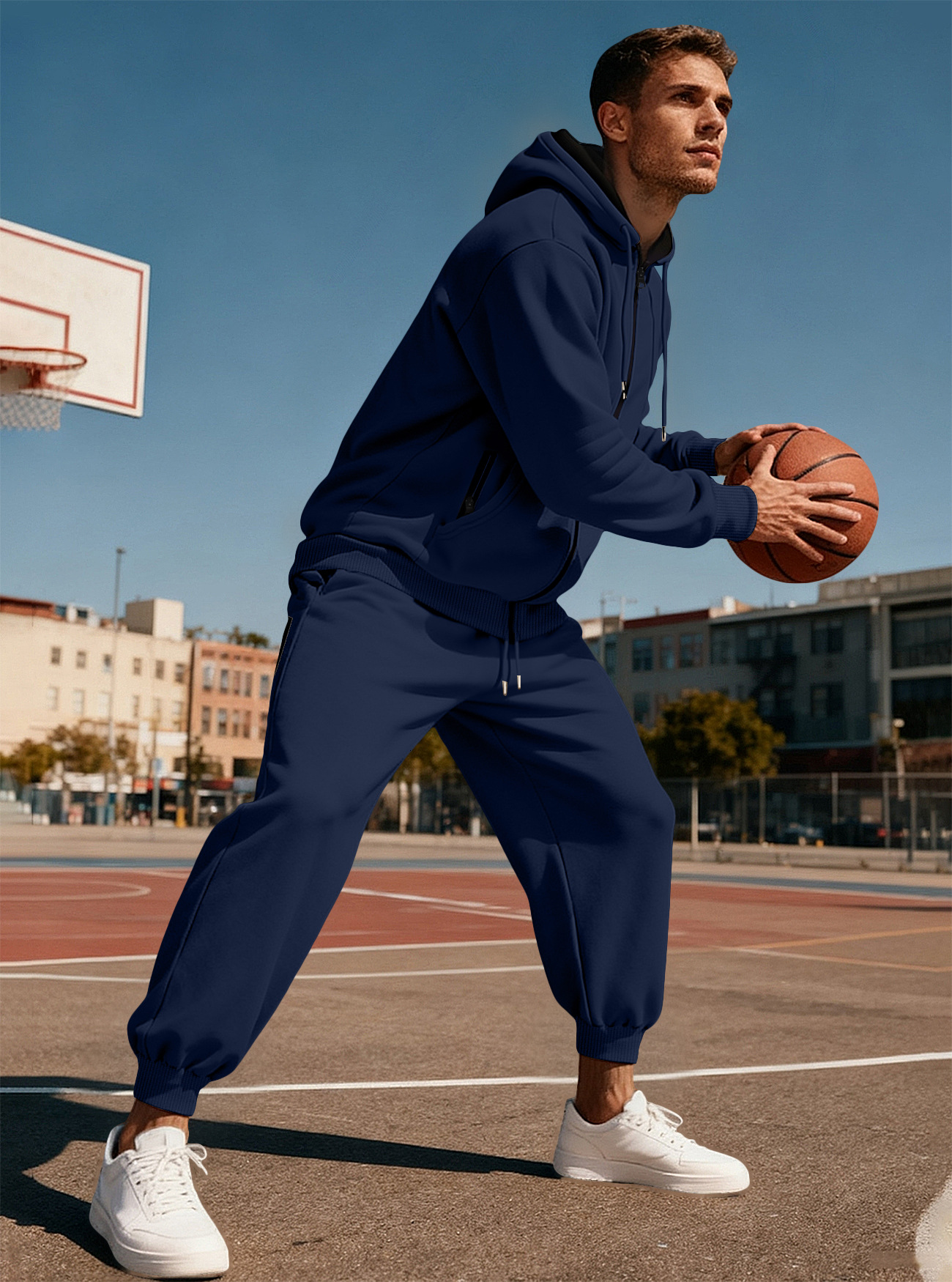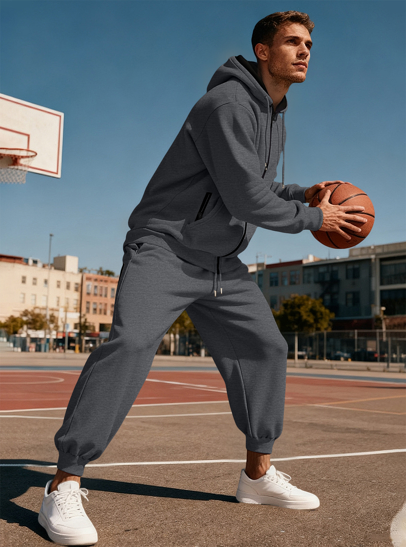 Transfronterizos Europa y América Amazon otoño y invierno masculino de color sólido con cremallera caliente con manga larga encapuchada juego deportivo casual