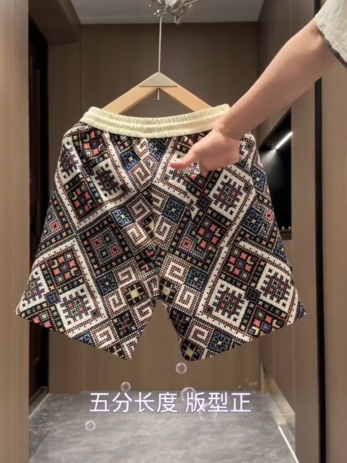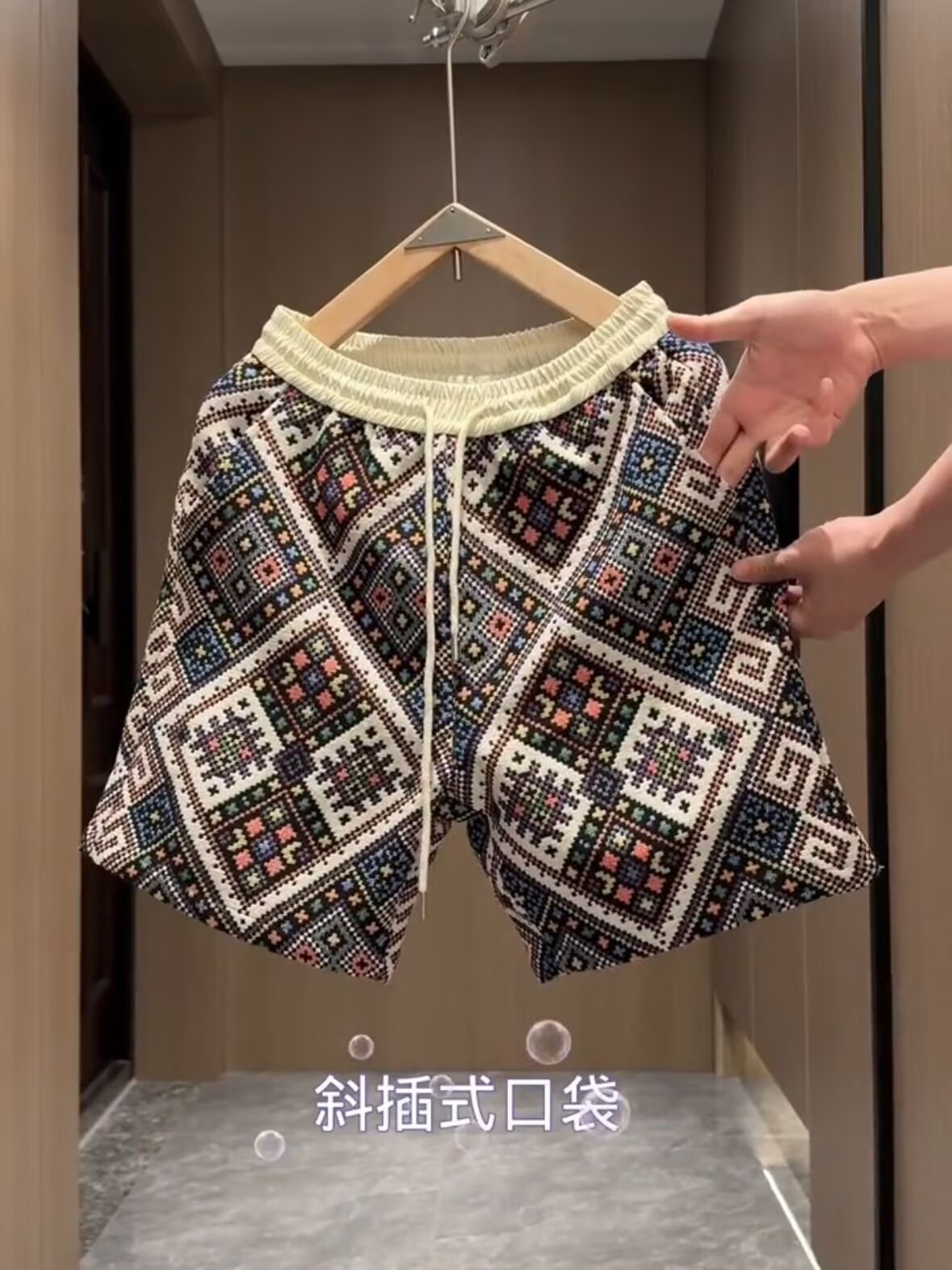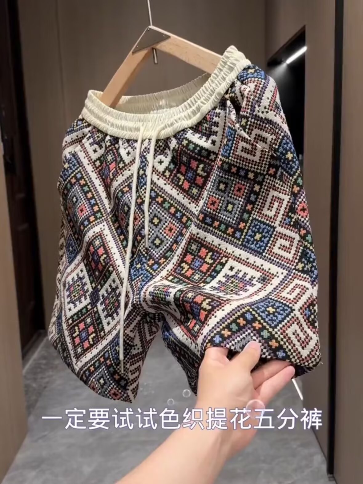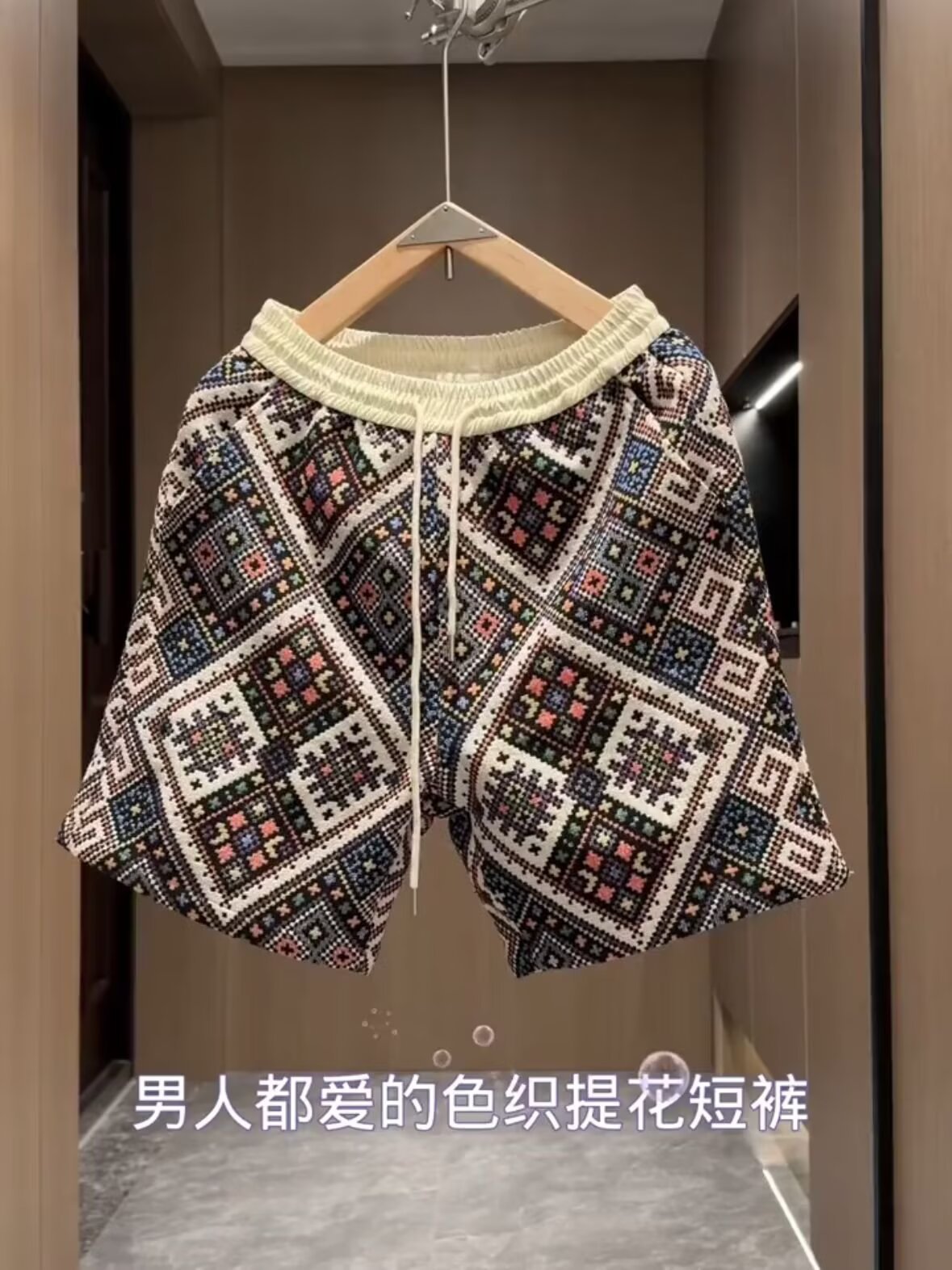 Verano hombre nuevo tejido Jacquard casual pantalones de playa estilo de moda suelta transpirable pantalones de playa