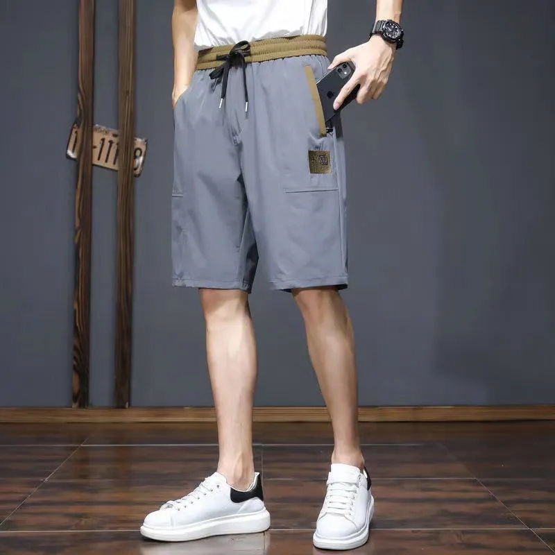 Pantalones de verano para hombres, pantalones cortos casuales, pantalones cortos bordados, pantalones de hielo delgados, pantalones de secado rápido