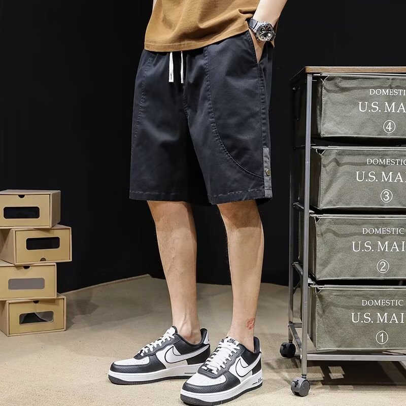 2025 estilo americano de alta calle retro lavado hombre marca de tendencia de verano cintura elástica suelta pantalones casuales rectos