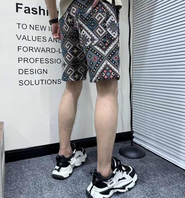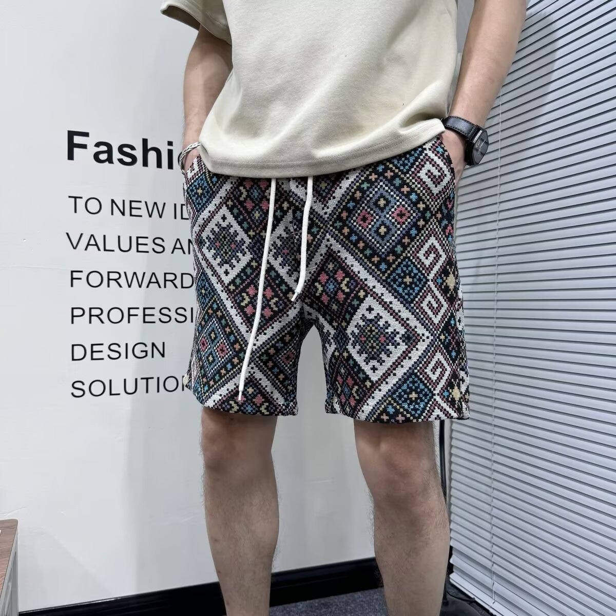 Nueva moda nacional delgada pantalones cortos jacquard de verano casual pantalones de quinta sueltos versátiles pantalones de playa de hombre