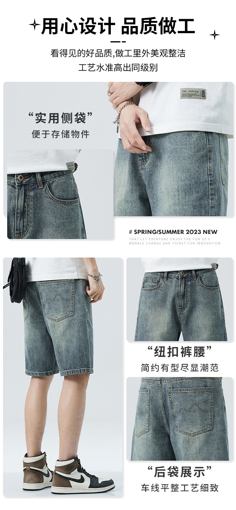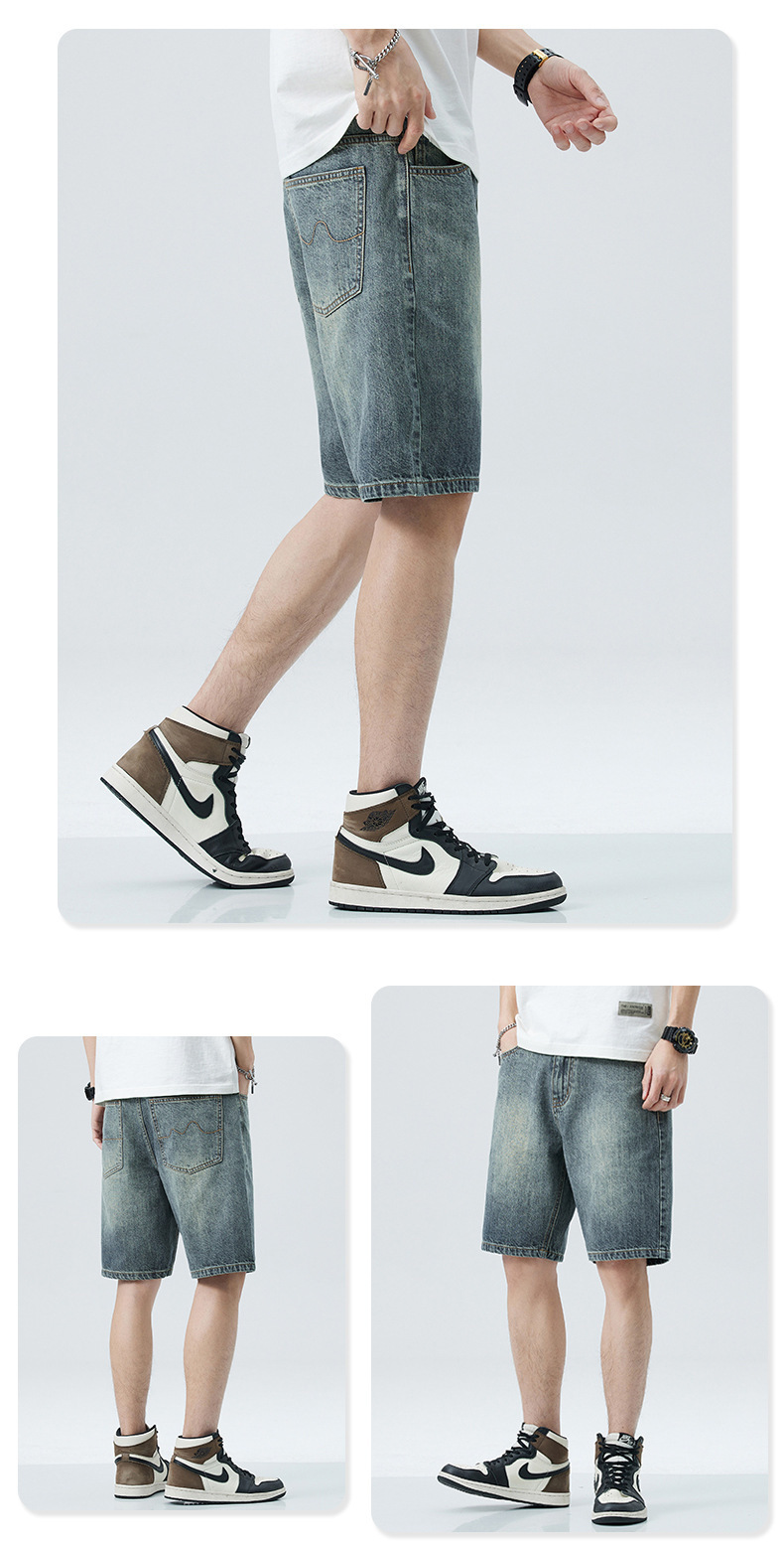 Fabricantes al por mayor jeans retro pantalones cortos de hombre de verano tendencia delgada estilo americano relajado casual cinco pantalones escolares