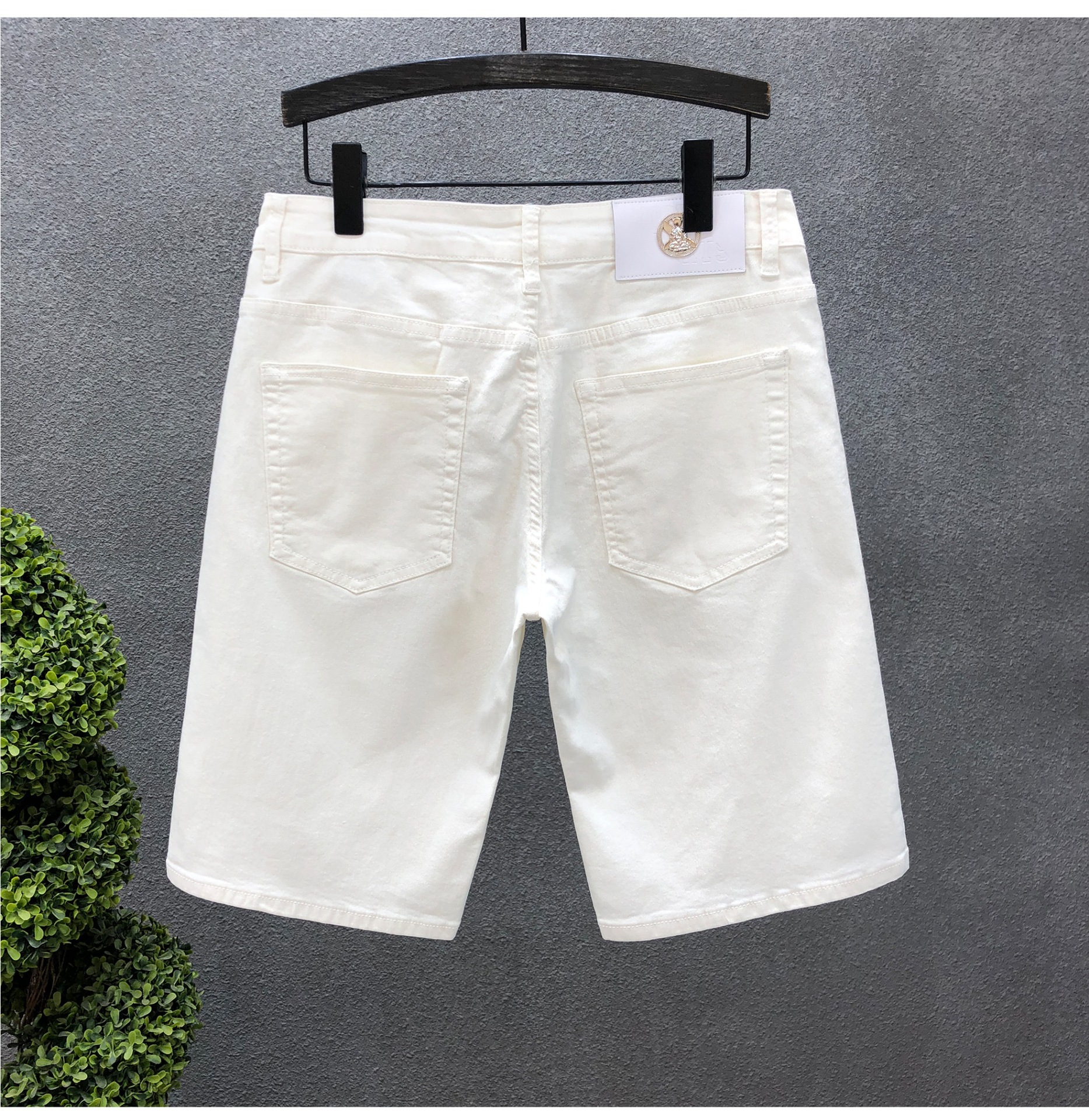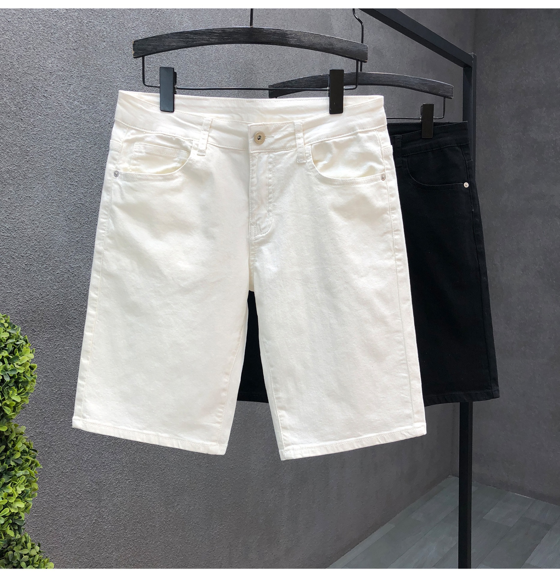 Jeans jóvenes guapo, pantalones cortos para hombres de verano delgados, 2025 nuevos jeans de verano para hombres blancos de cinco puntos
