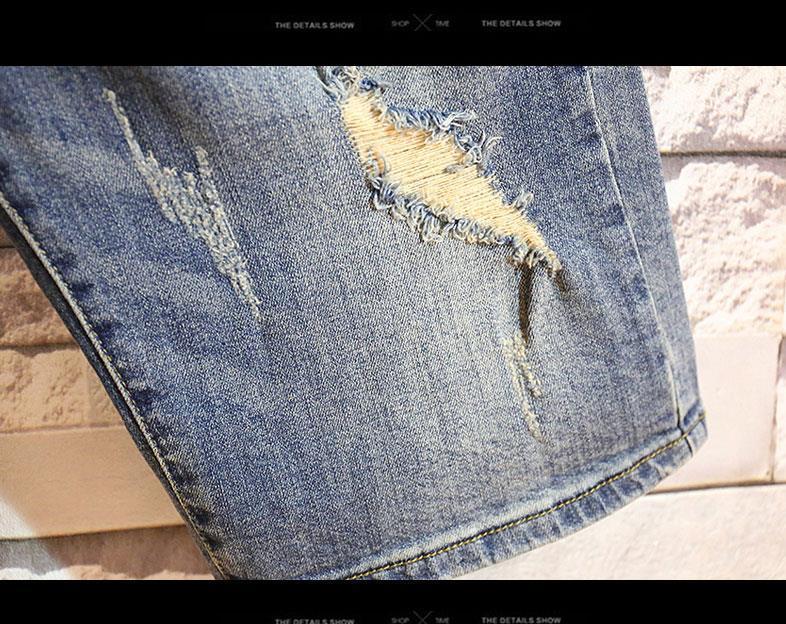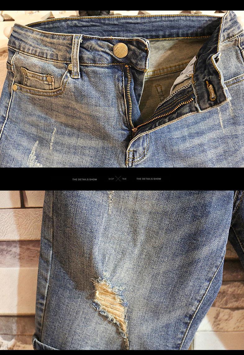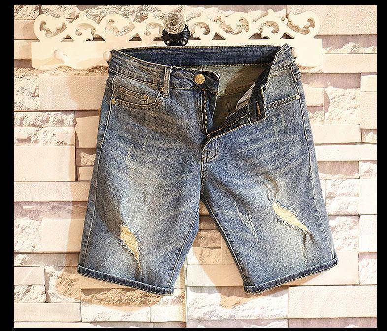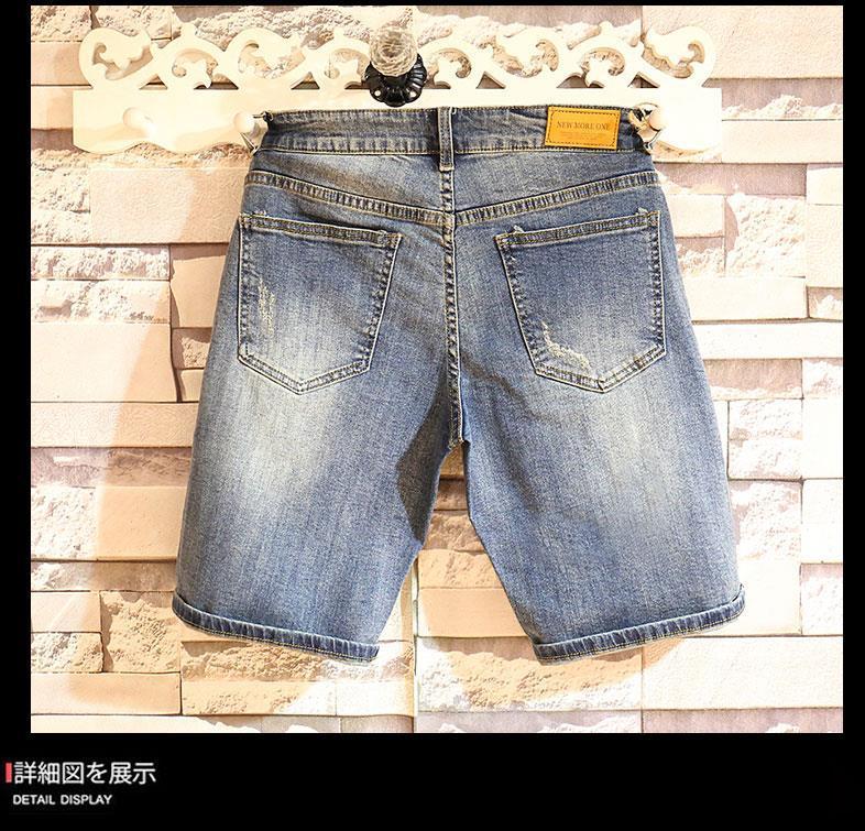 Verano marca de tendencia hombre jeans jeans de estilo coreano retro pantalones cortos rectos agujeros lavados con agua para hacer pantalones viejos