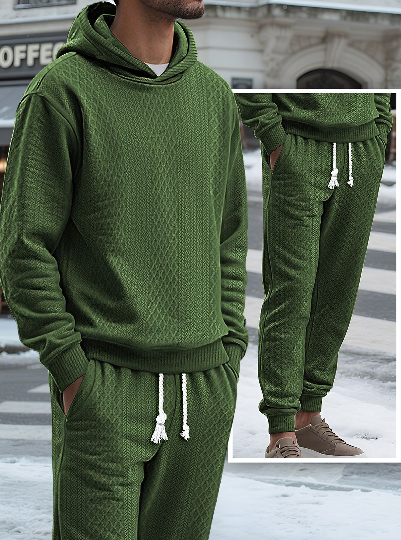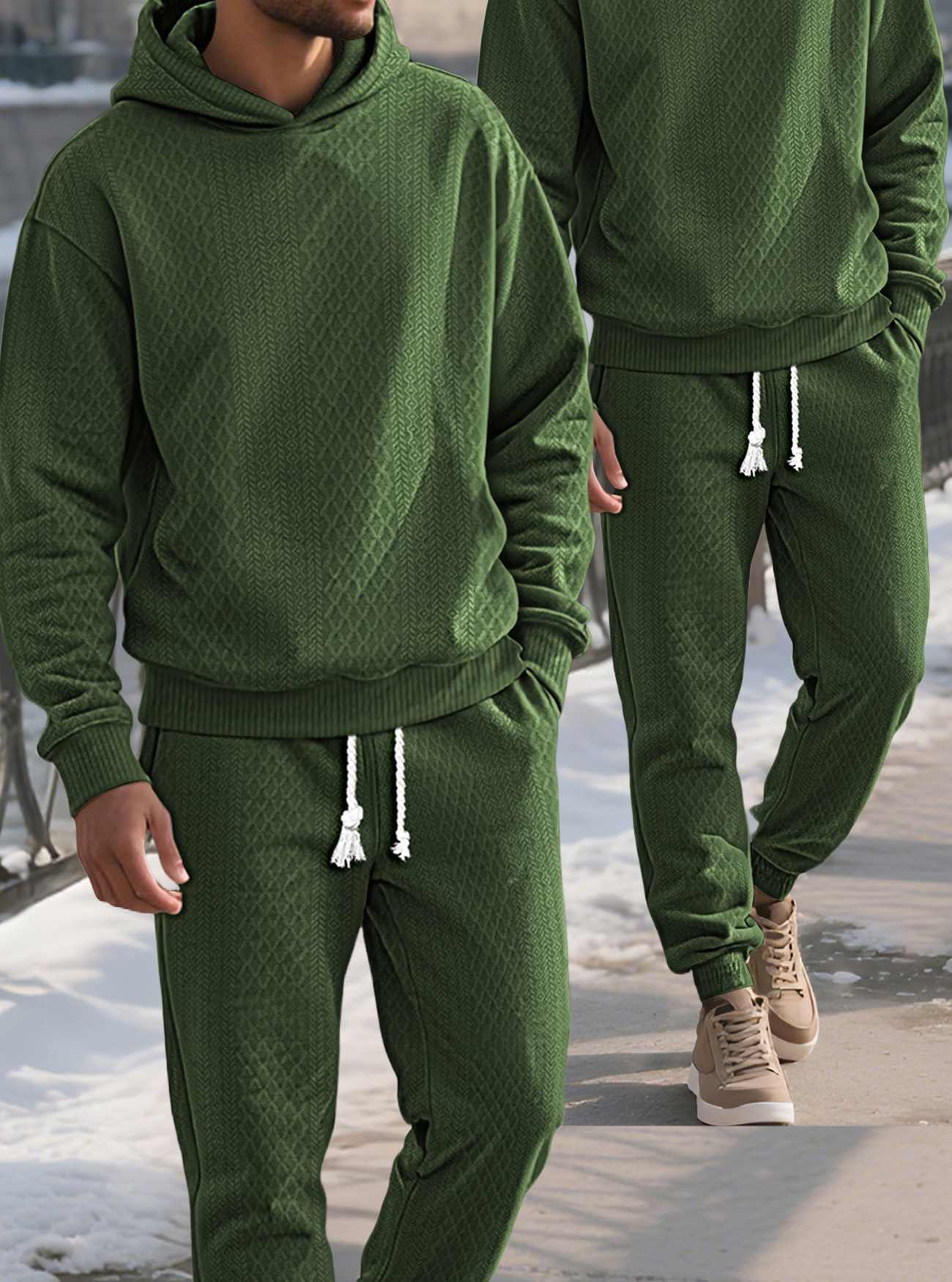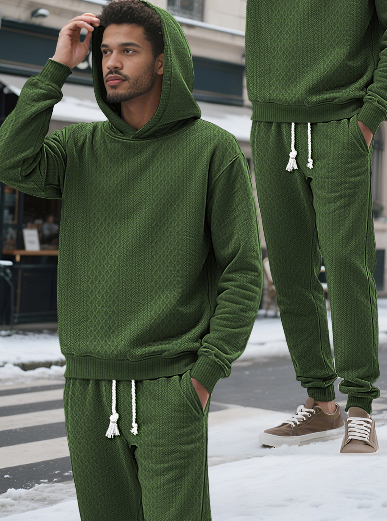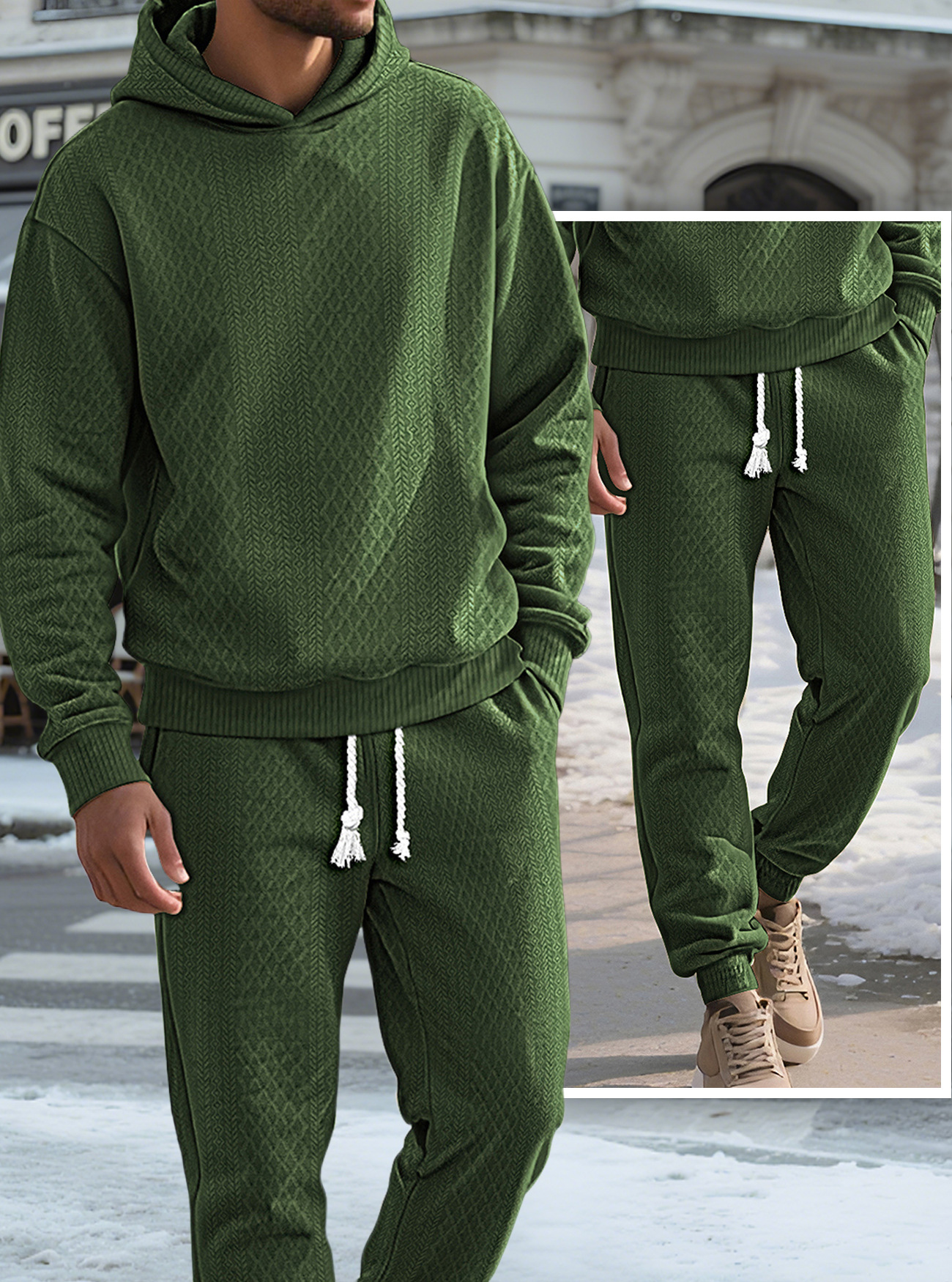 Transfronterizos TK primavera y otoño hombre deportivo relajado pantalones largos de manga larga Jacquard grande conjunto de sudadera con capuz