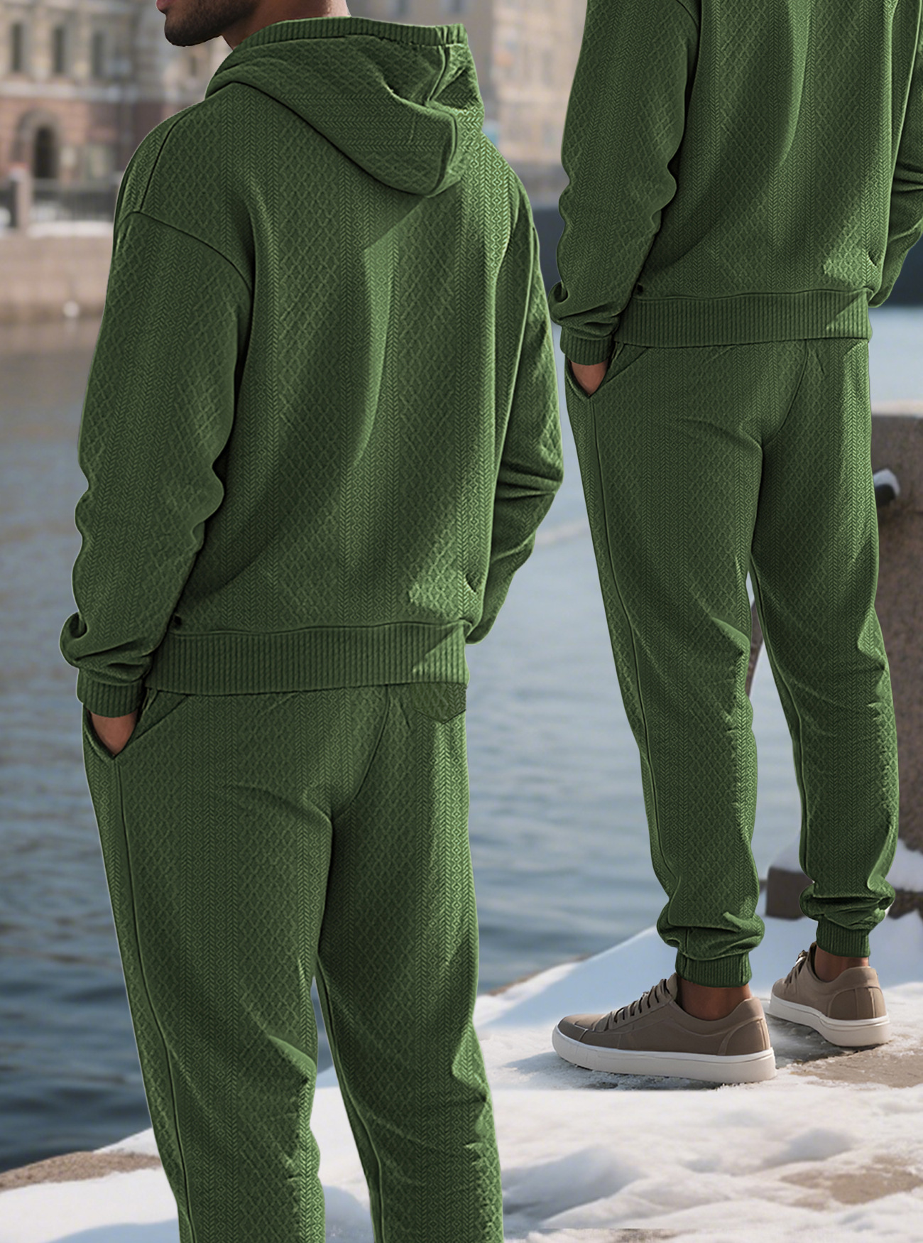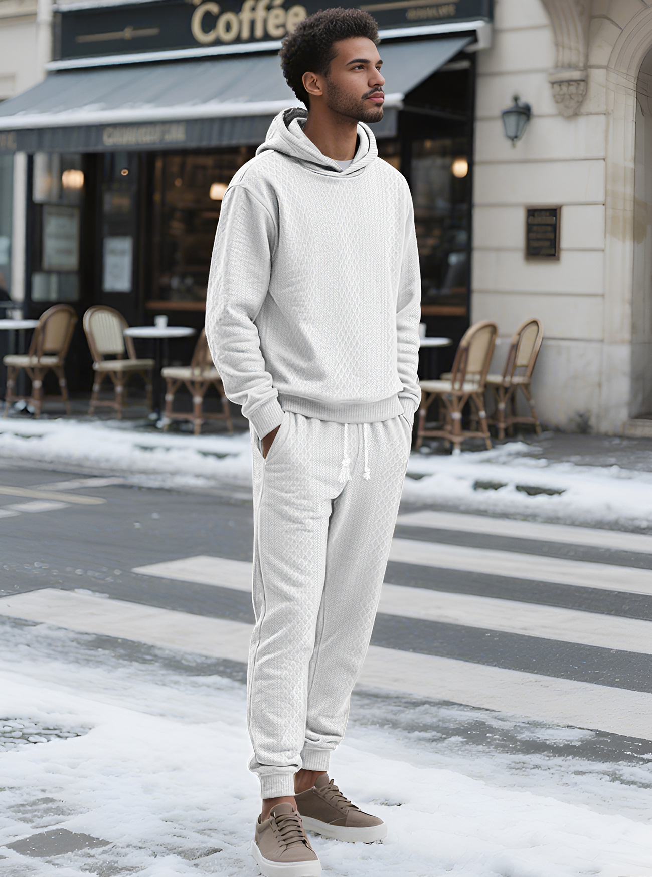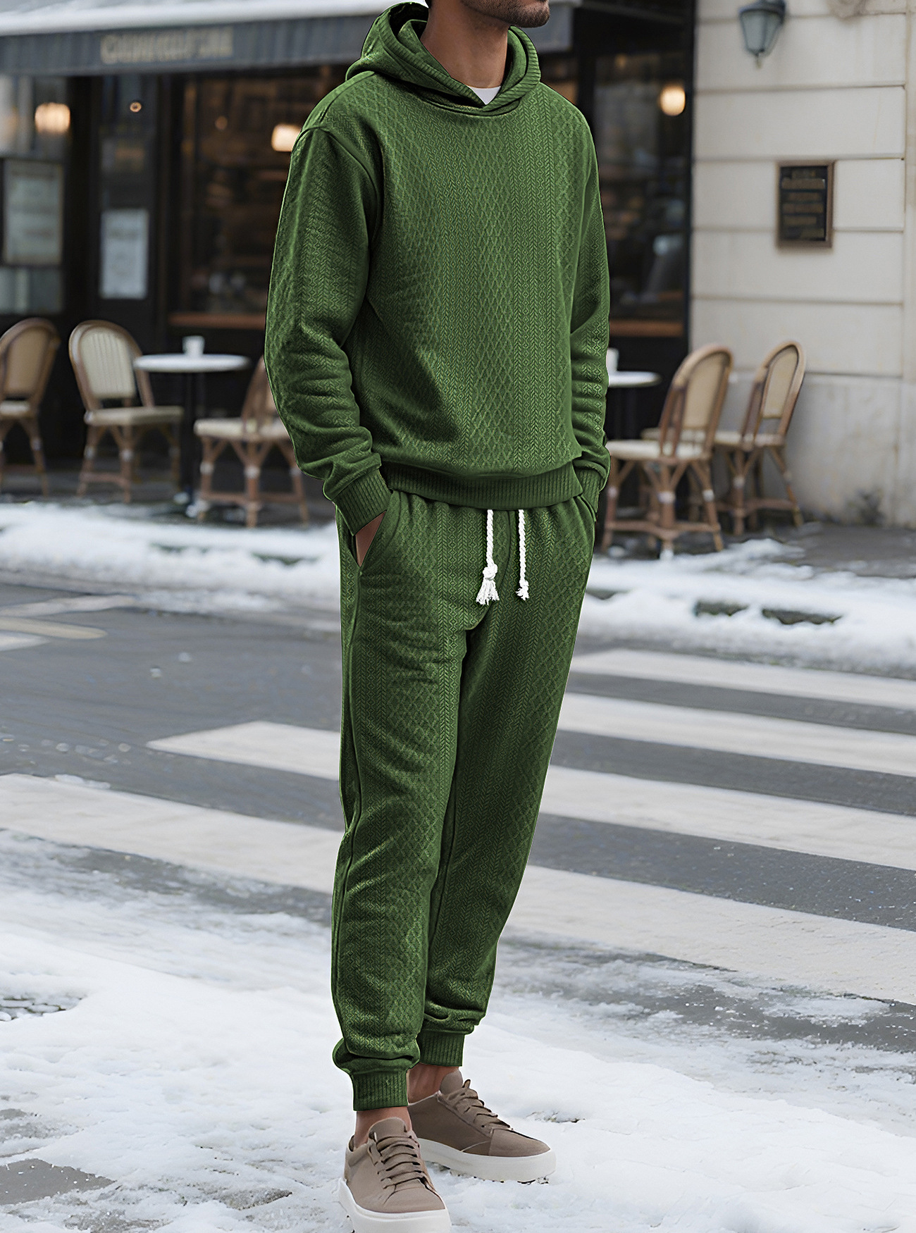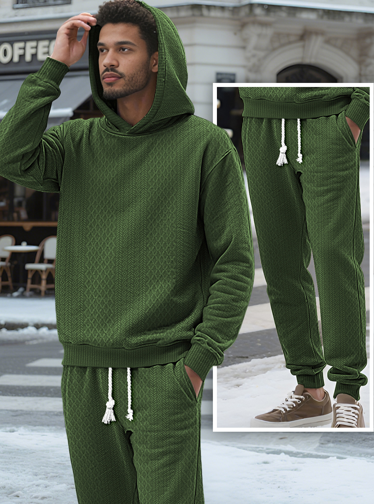 Transfronterizos TK primavera y otoño hombre deportivo relajado pantalones largos de manga larga Jacquard grande conjunto de sudadera con capuz