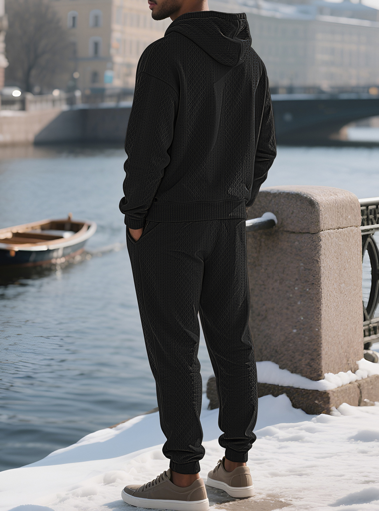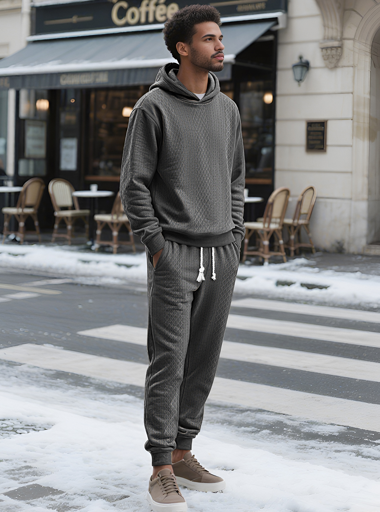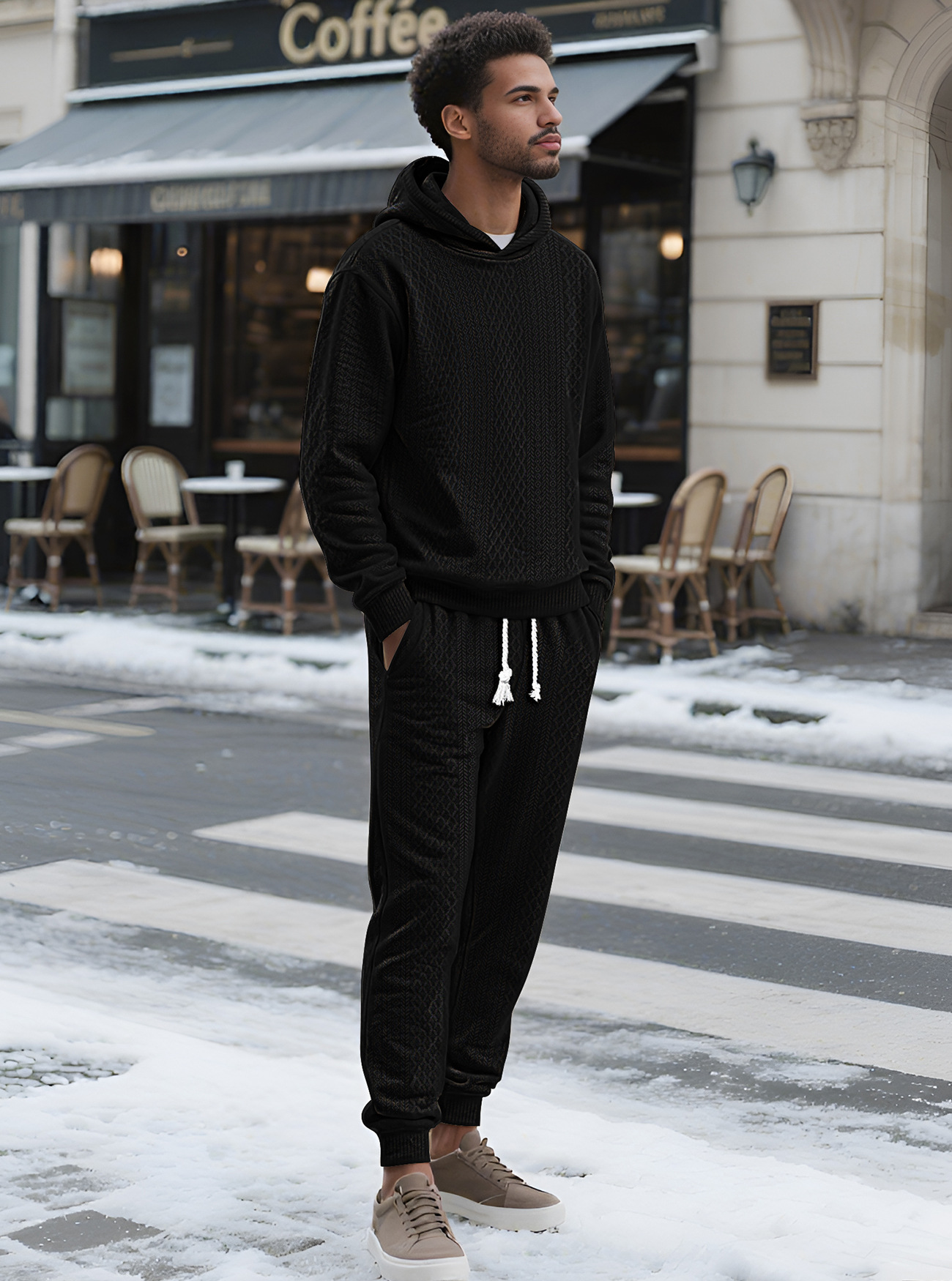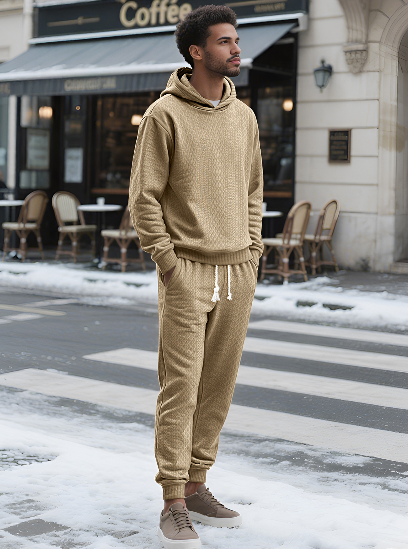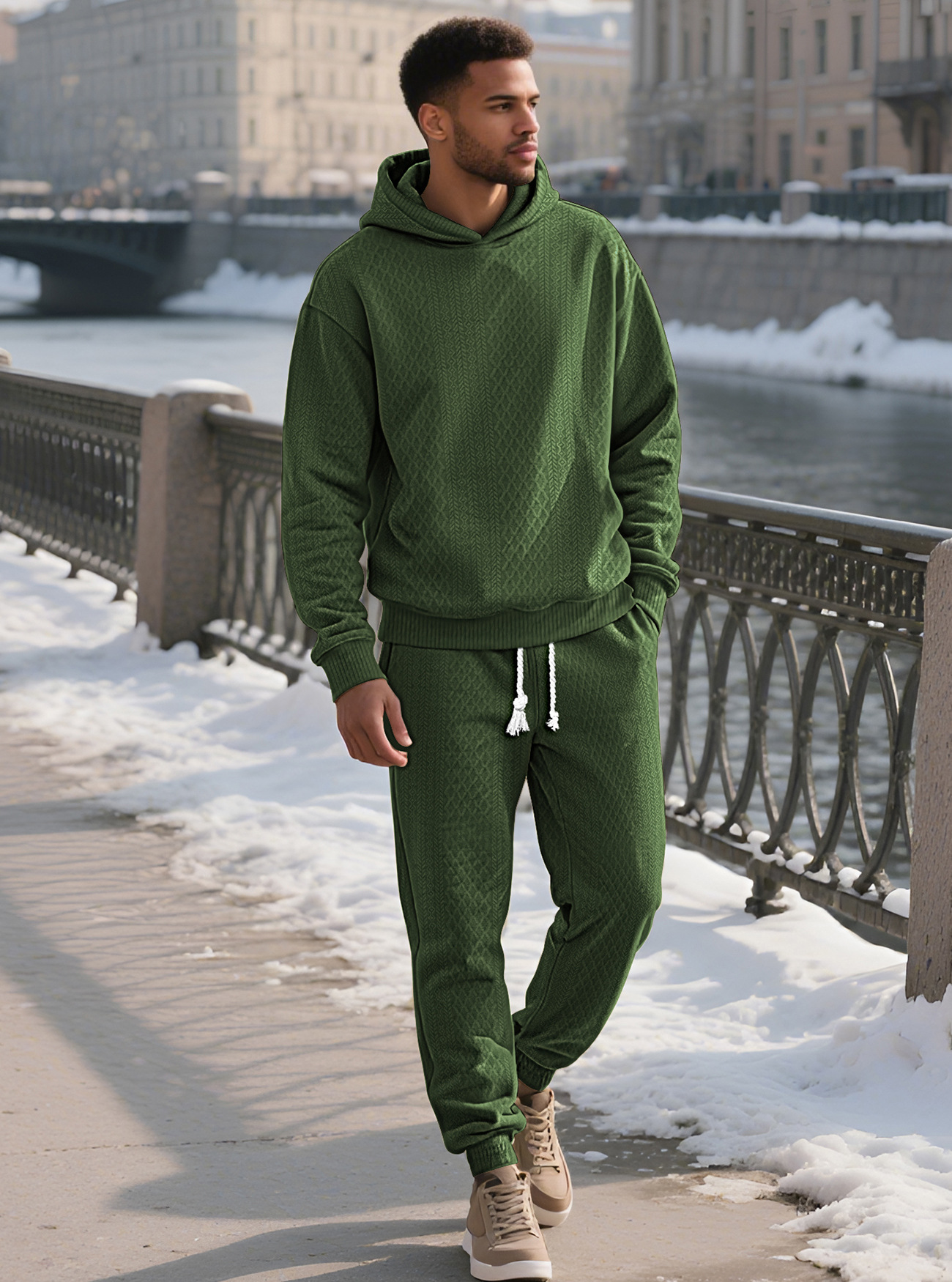 Transfronterizos TK primavera y otoño hombre deportivo relajado pantalones largos de manga larga Jacquard grande conjunto de sudadera con capuz