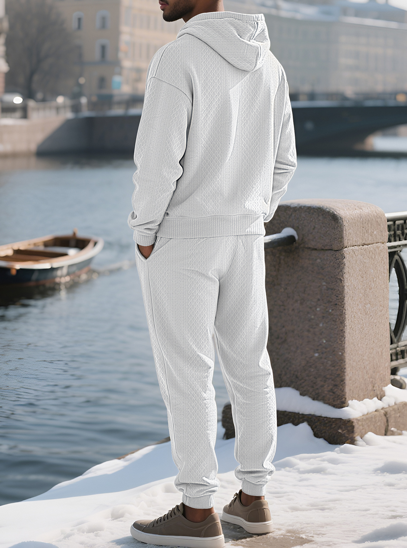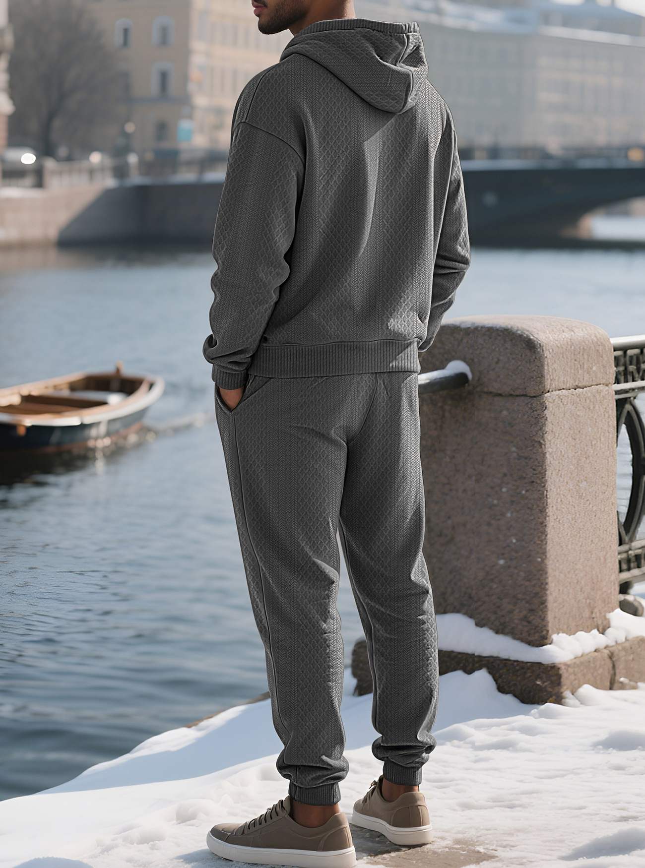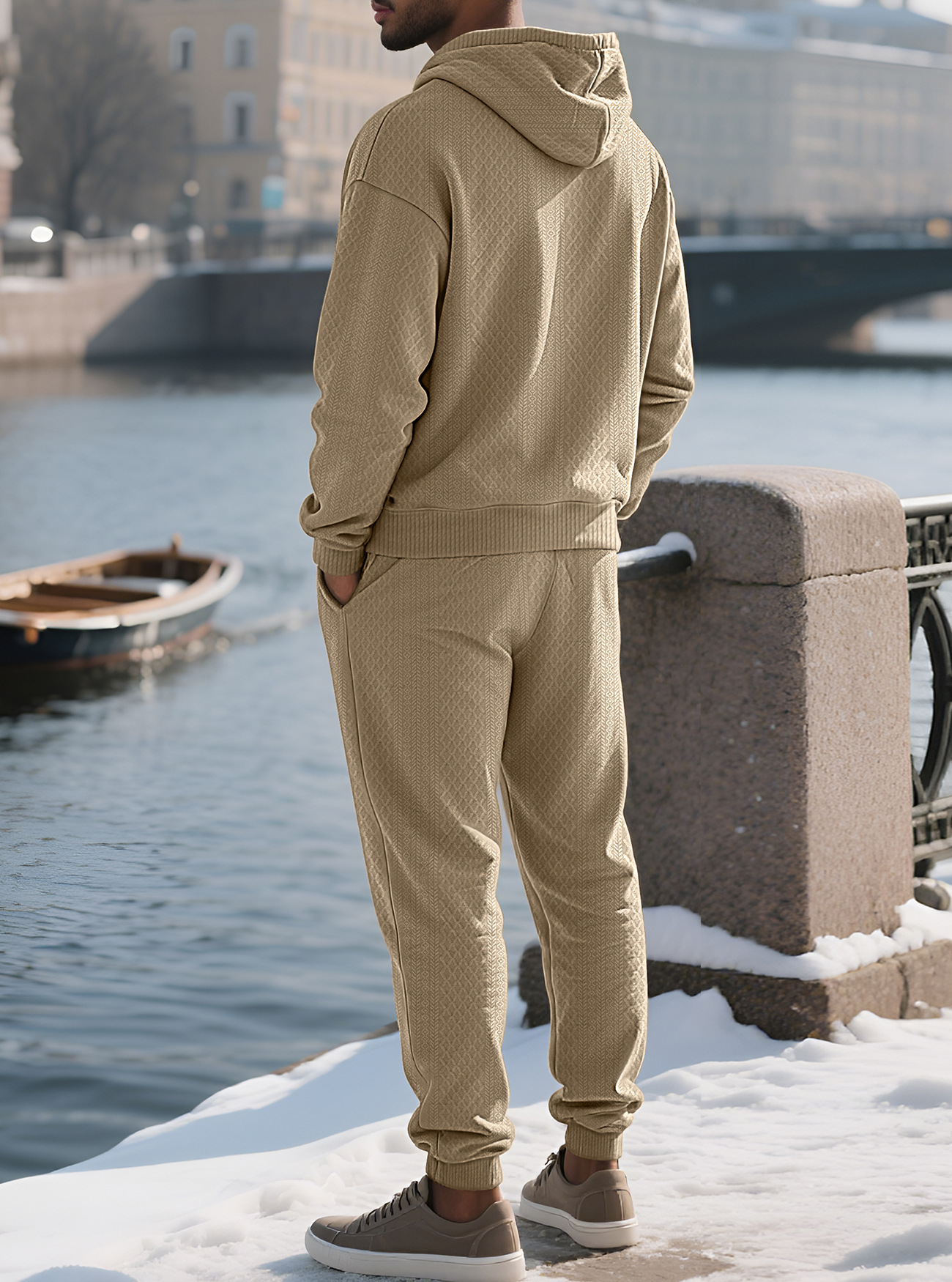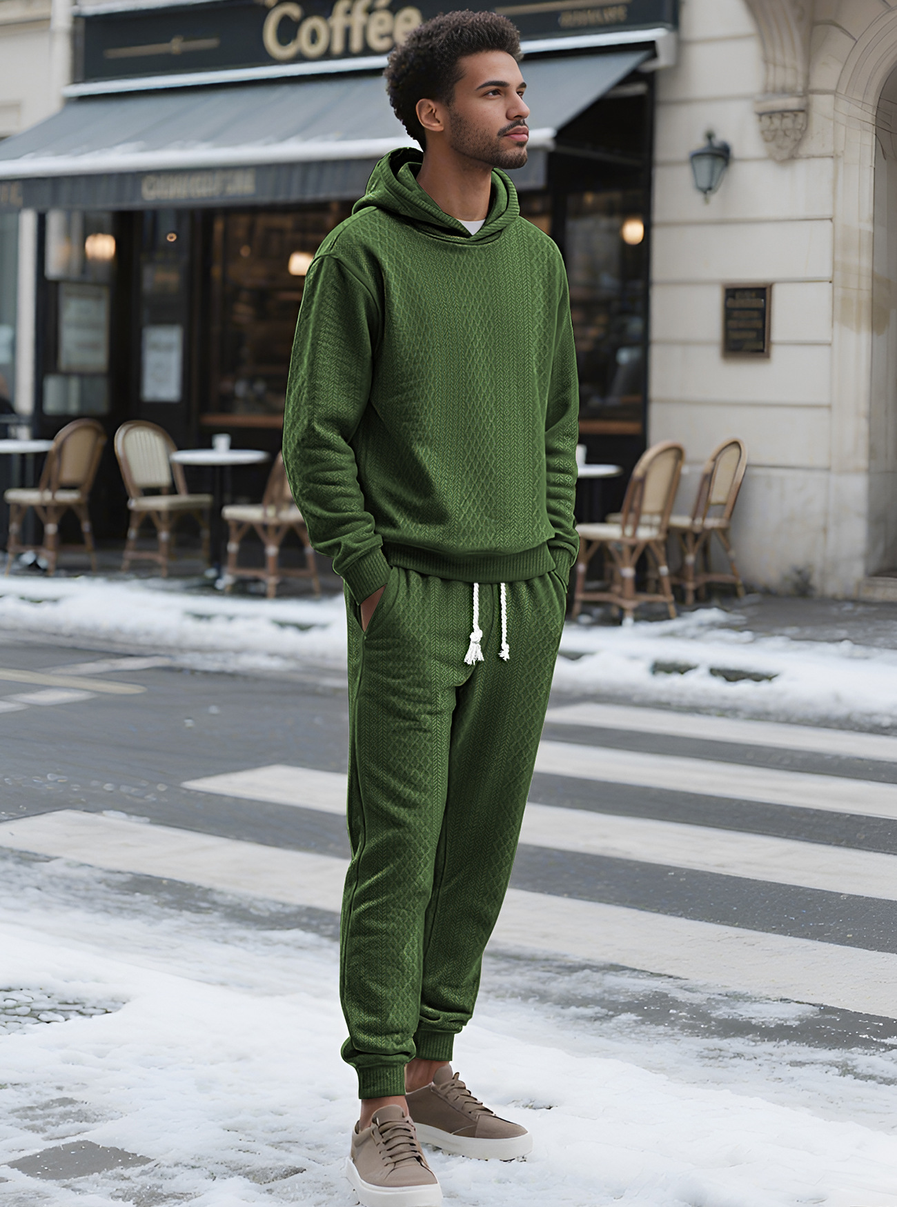 Transfronterizos TK primavera y otoño hombre deportivo relajado pantalones largos de manga larga Jacquard grande conjunto de sudadera con capuz