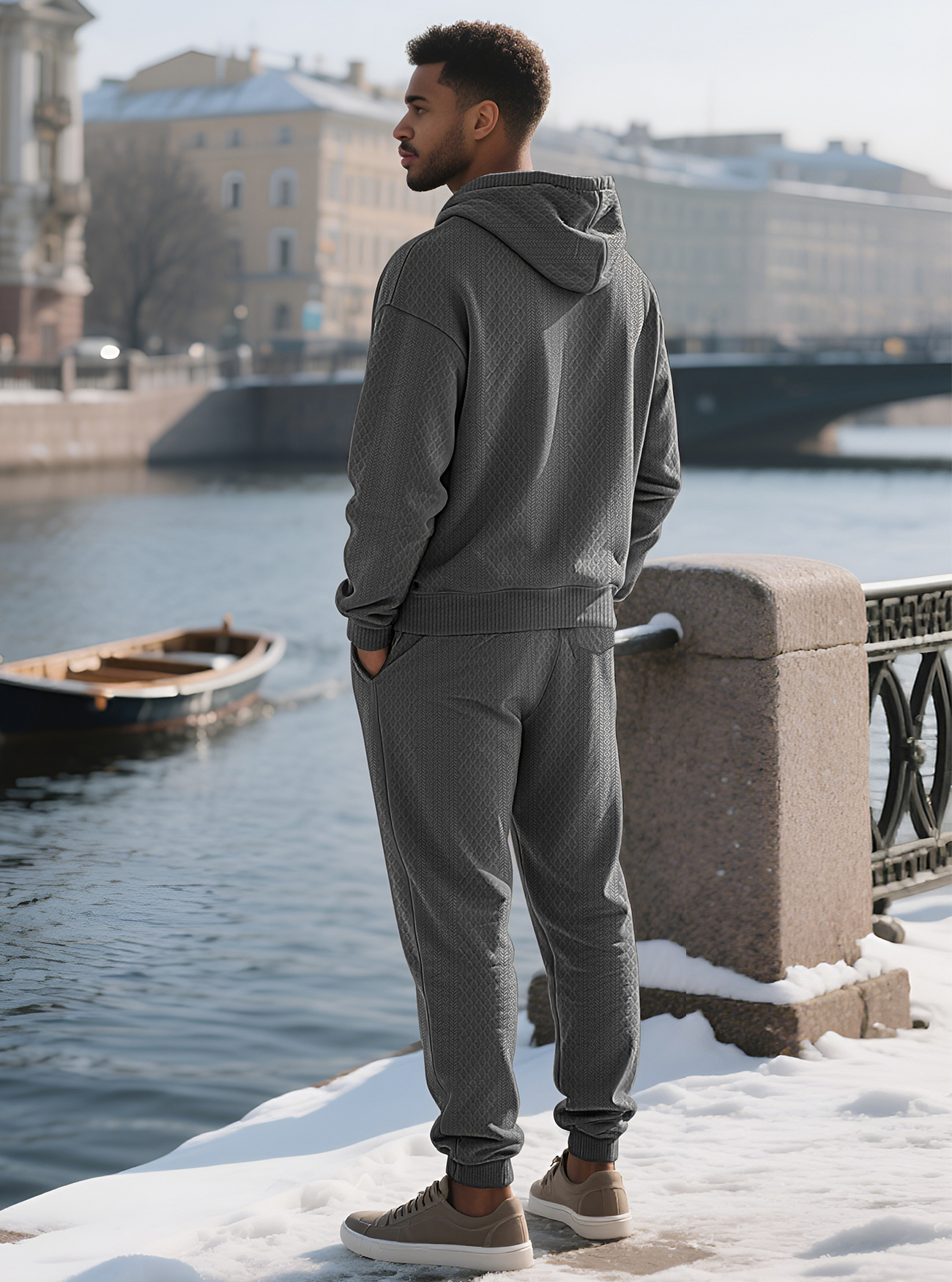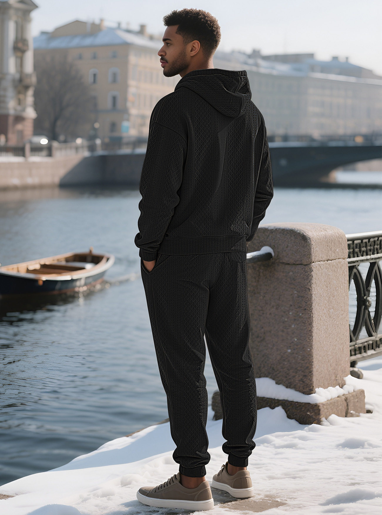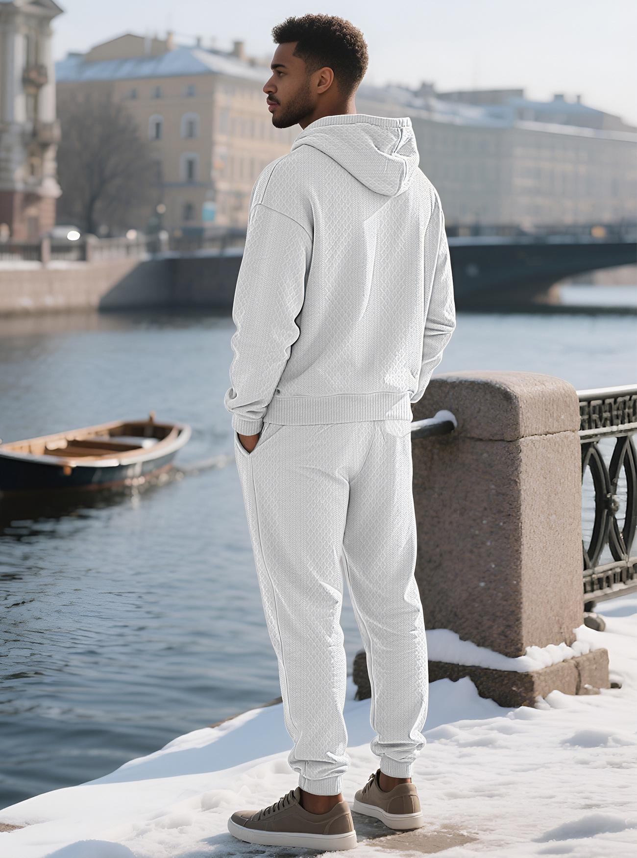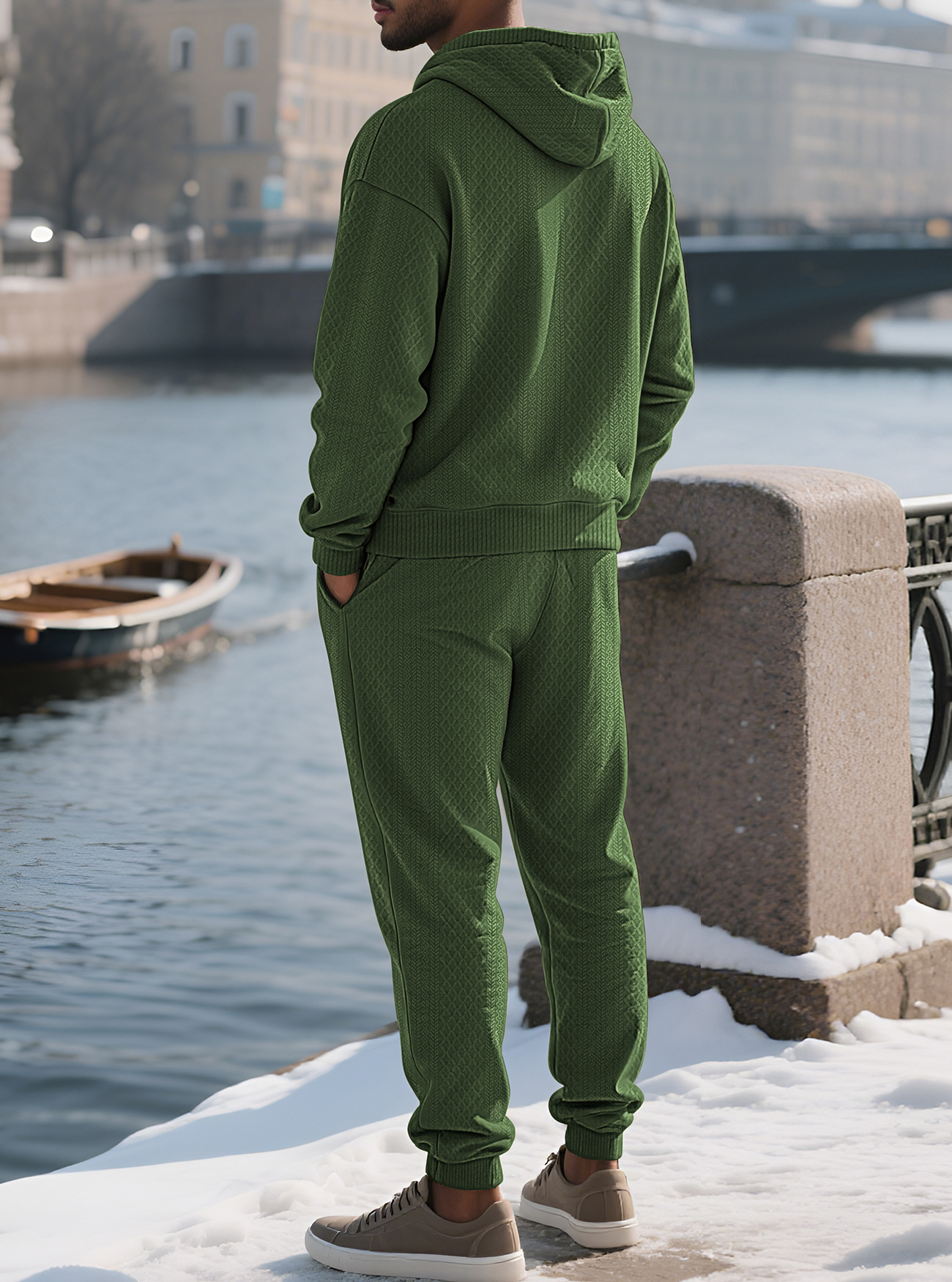 Transfronterizos TK primavera y otoño hombre deportivo relajado pantalones largos de manga larga Jacquard grande conjunto de sudadera con capuz