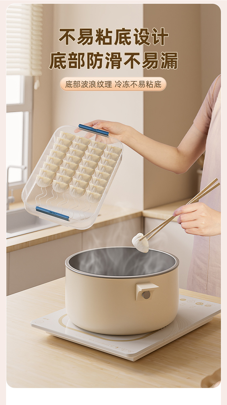 Caja de almacenamiento de dumplings caja de congelación para refrigerador casera de salsa de grados de alimentos congelación rápida de plato especial para organizar artefactos mágicos