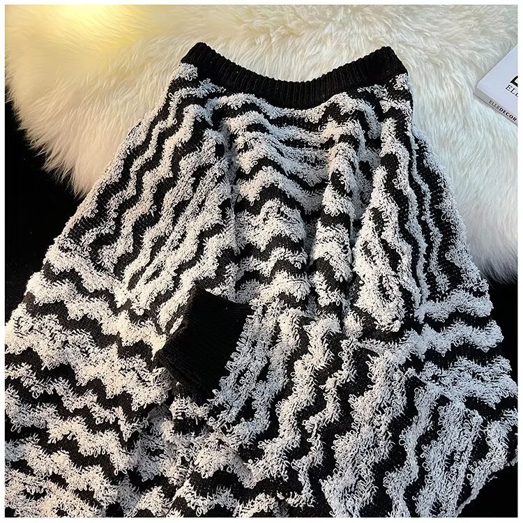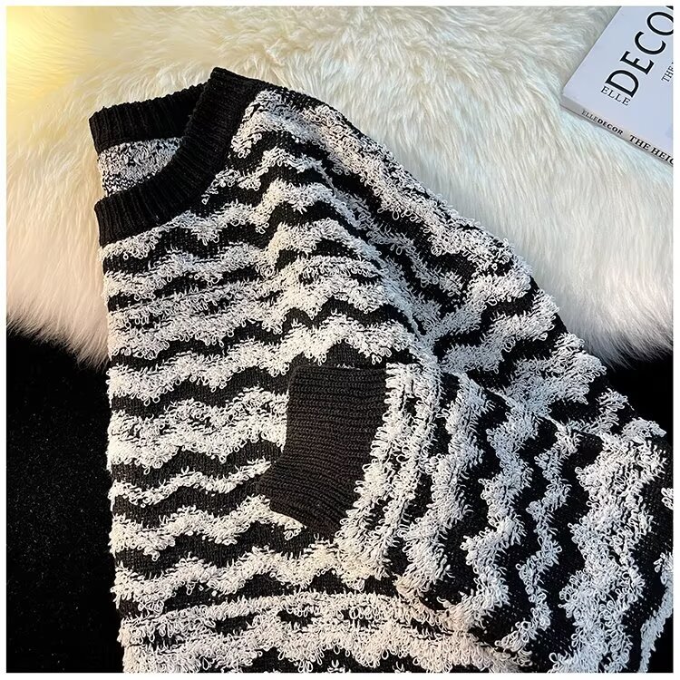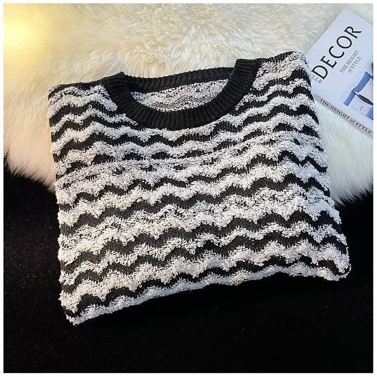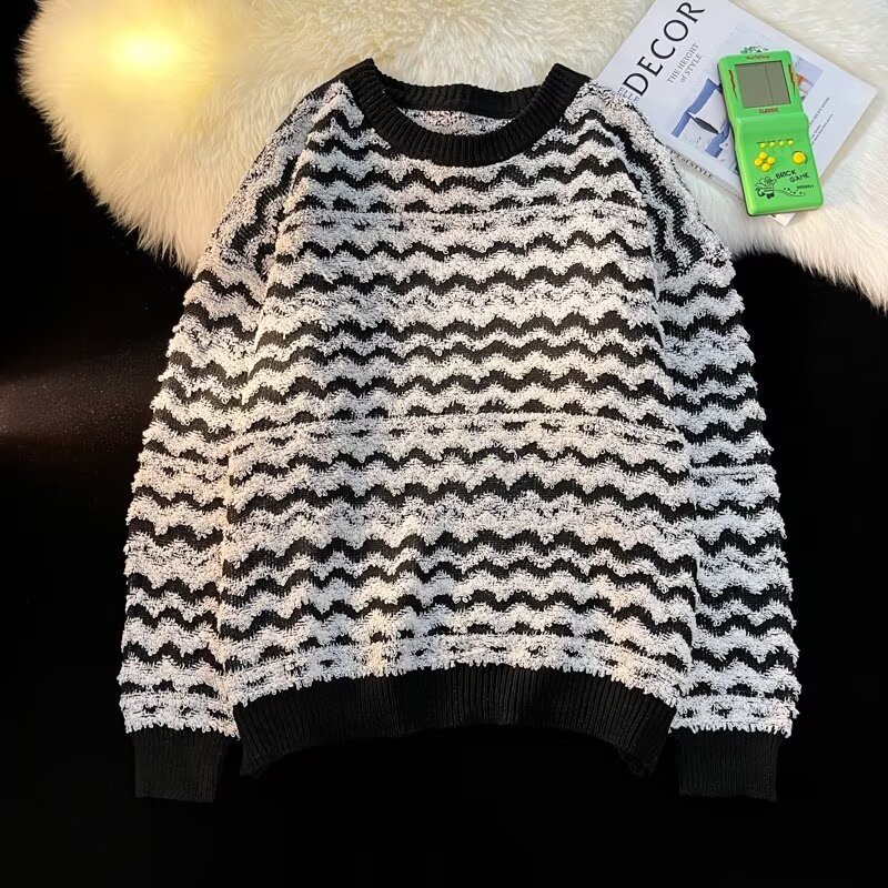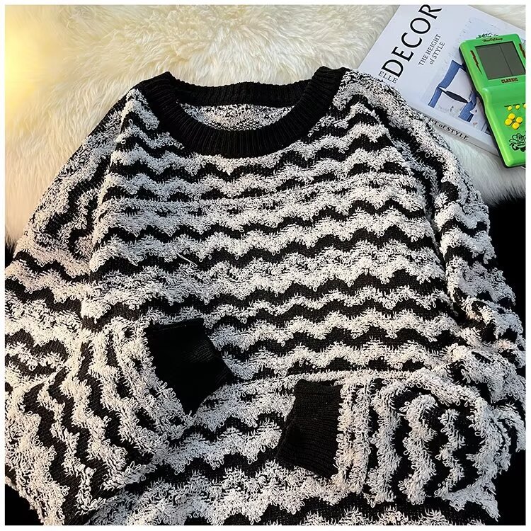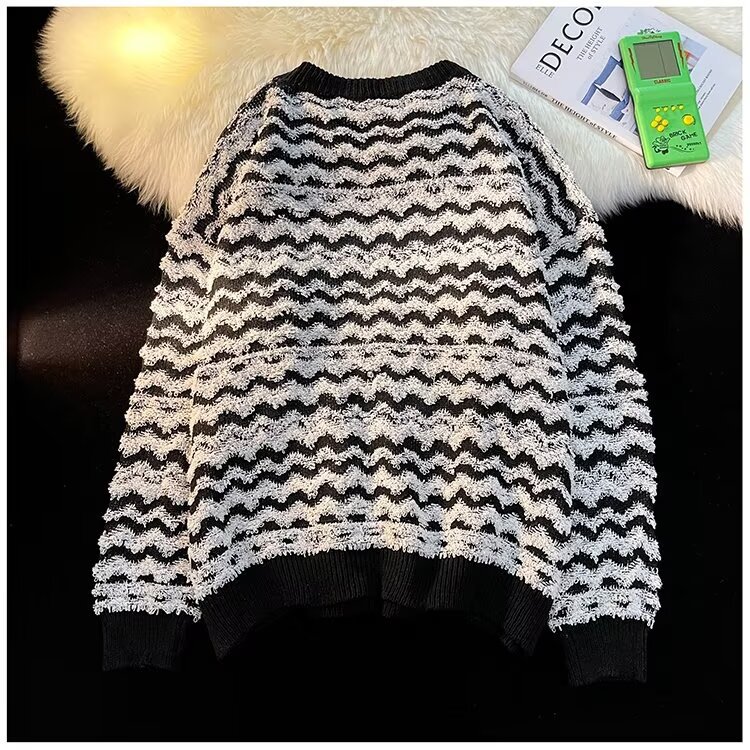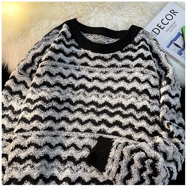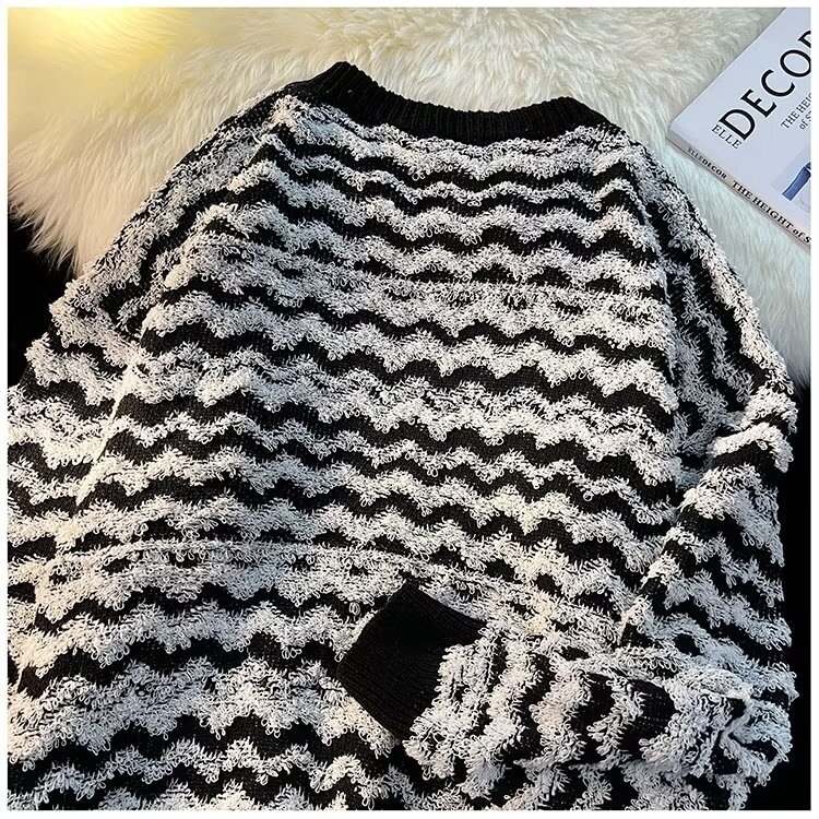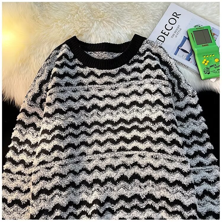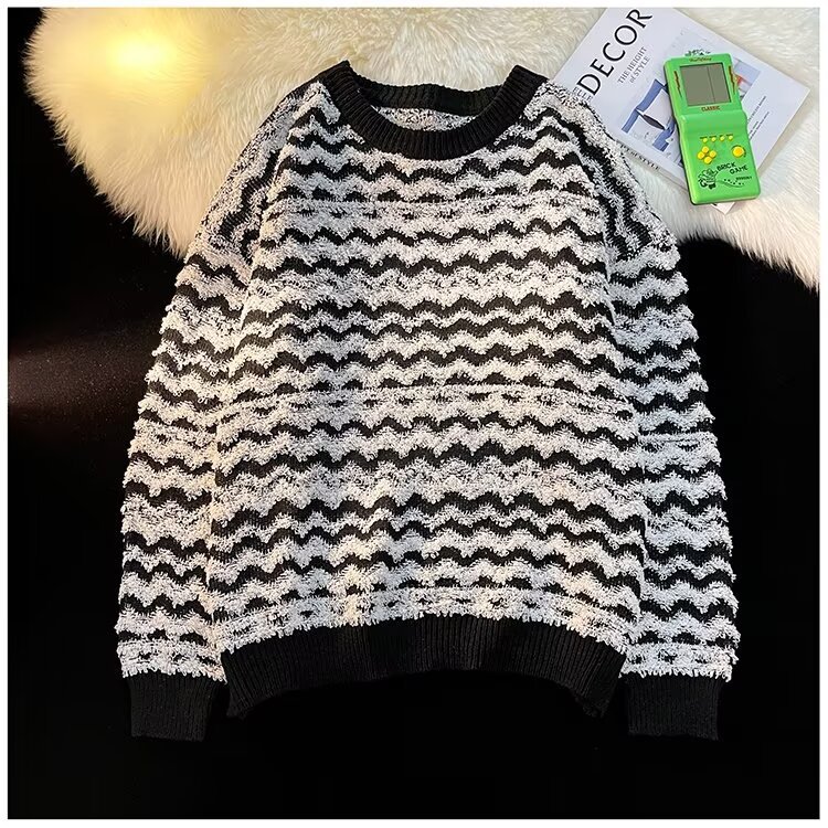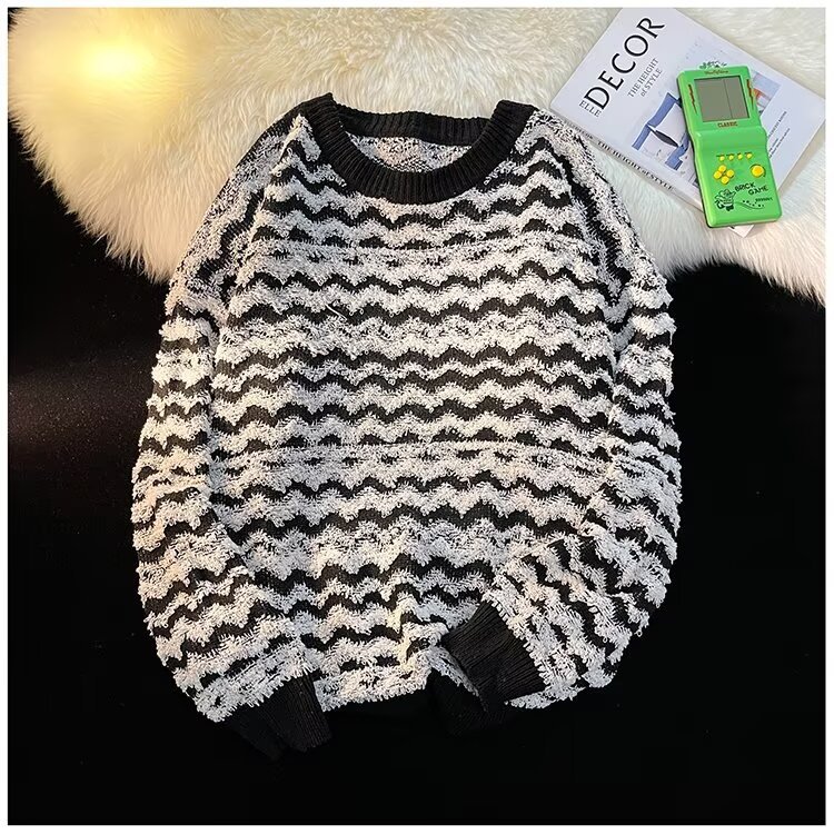 Suéter de hombre de manga larga camiseta de punto casual juvenil de otoño nuevo estilo de moda masculina suelta de cuello redondo chaqueta rayas de moda