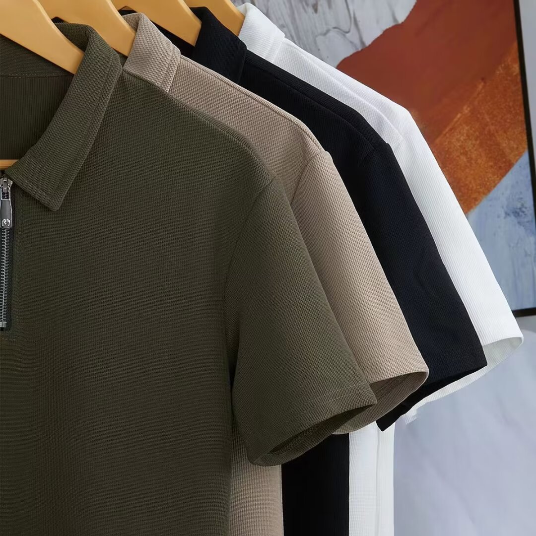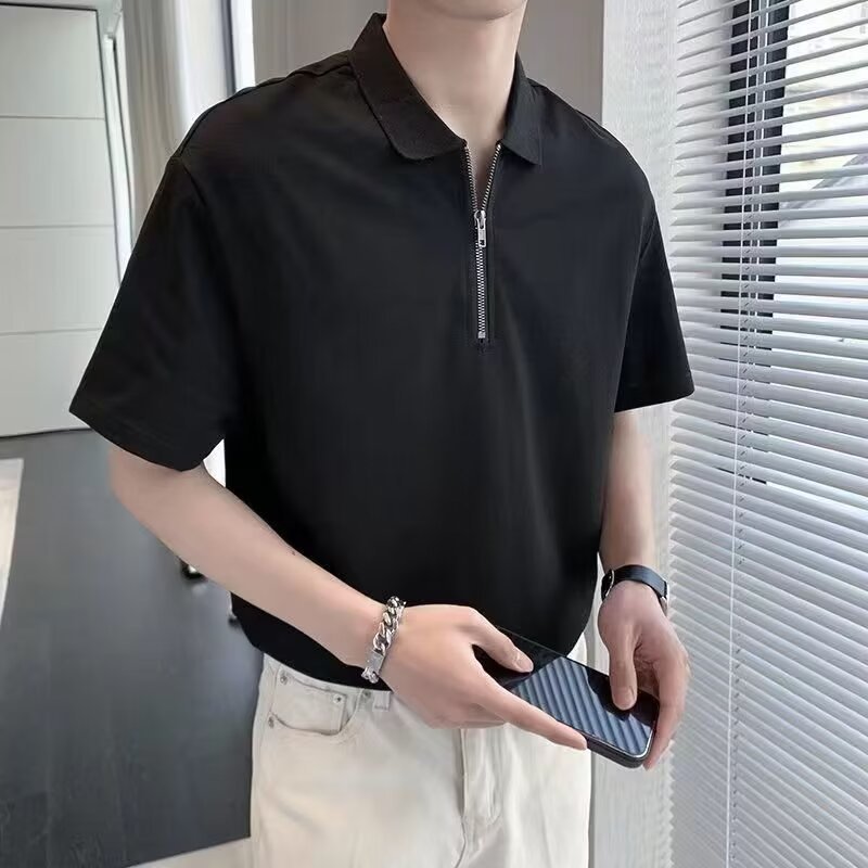 Tide polo de hombre de manga corta de alta gama 2023 nuevo hombre casual de negocios con solapa de media cremallera