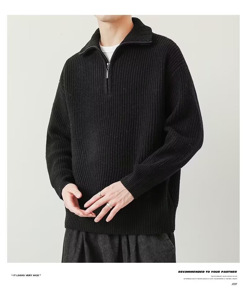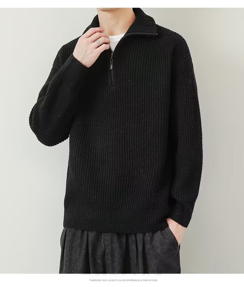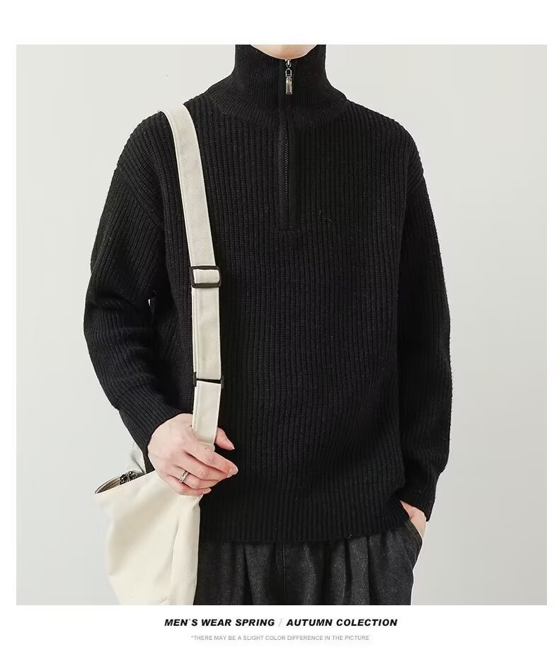Suéter de cuello alto para hombres 2024 primavera y otoño cremallera de cuello alto japonés camiseta de punto de fondo de color sólido chaqueta de línea de la juventud