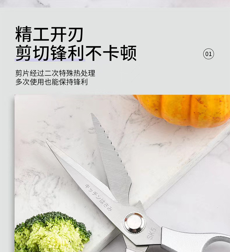 Potentes tijeras multifuncionales de acero inoxidable SK5 de cuarta generación, tijeras para matar peces, tijeras de pollo, tijeras de cocina de hueso de pollo afiladas para el hogar