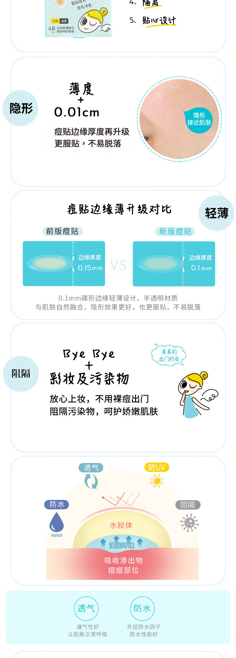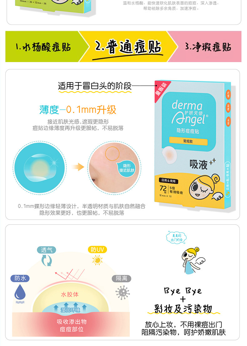 Ácido salicílico invisible para el acné, acné, piel artificial, maquillaje, super delgada