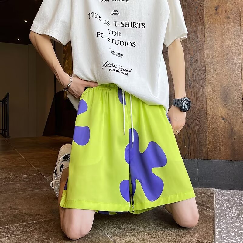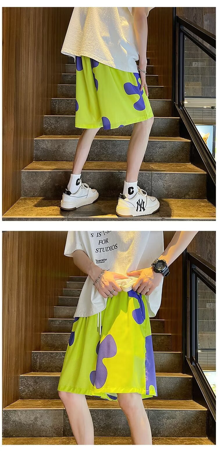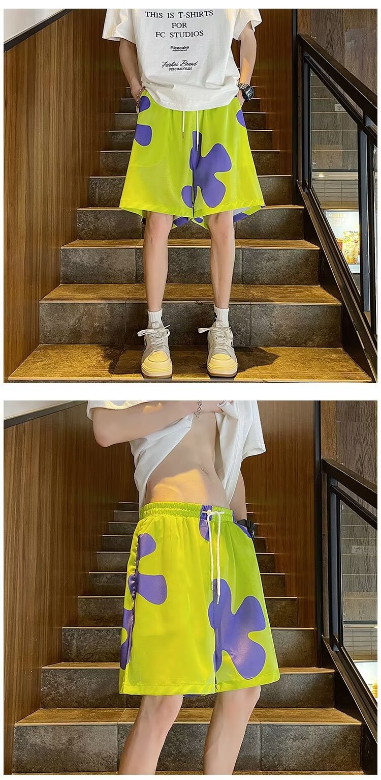 Círculos animados de fresa oso pantalones cortos de hombre de verano sueltos casa pijamas casuales pareja vacaciones de playa pantalones