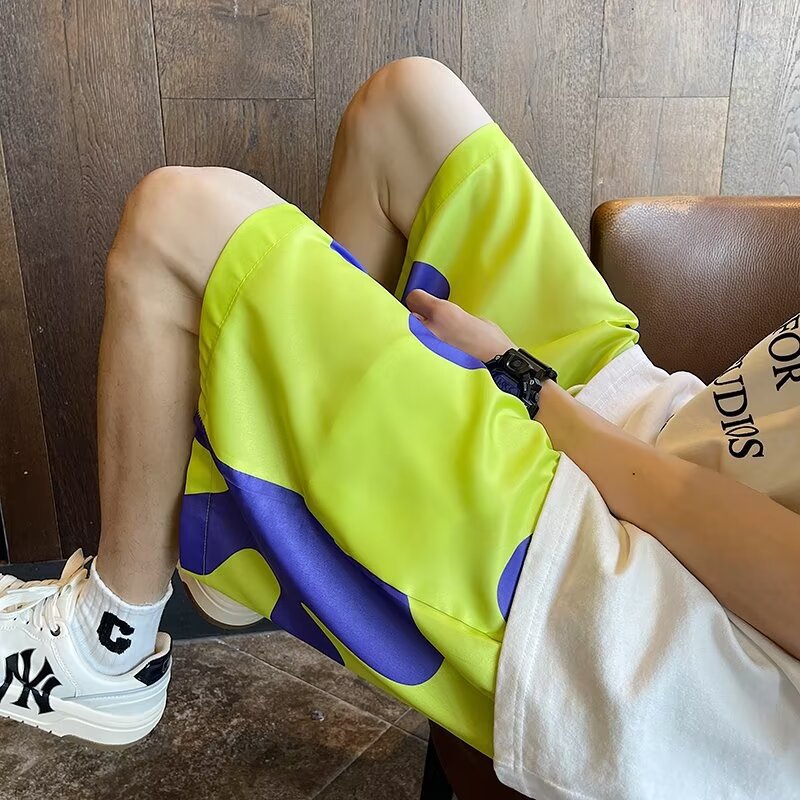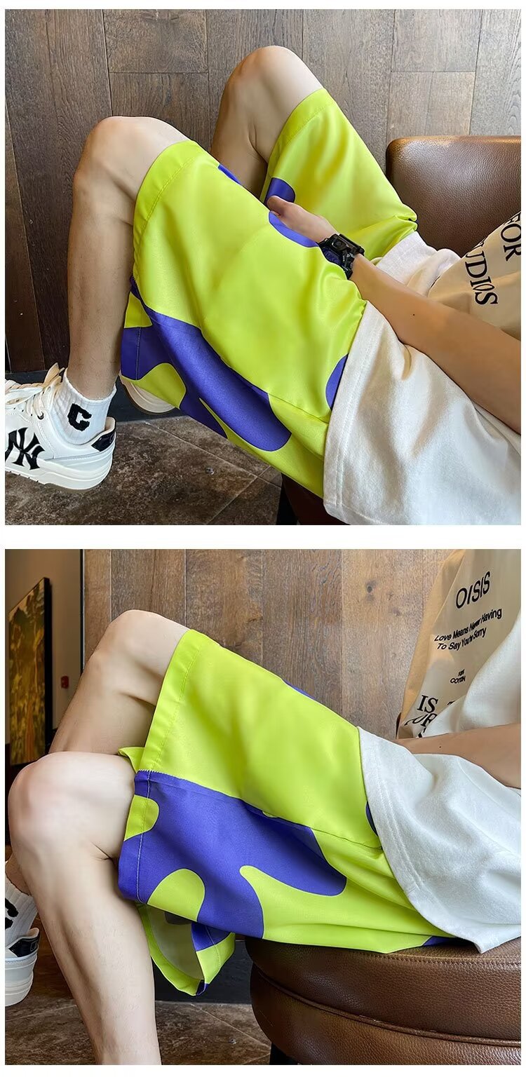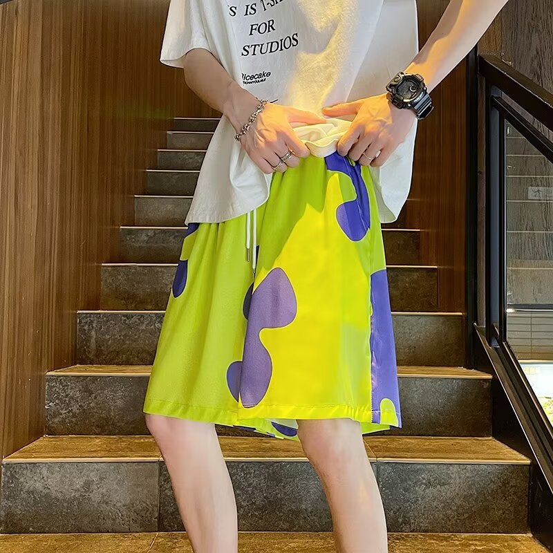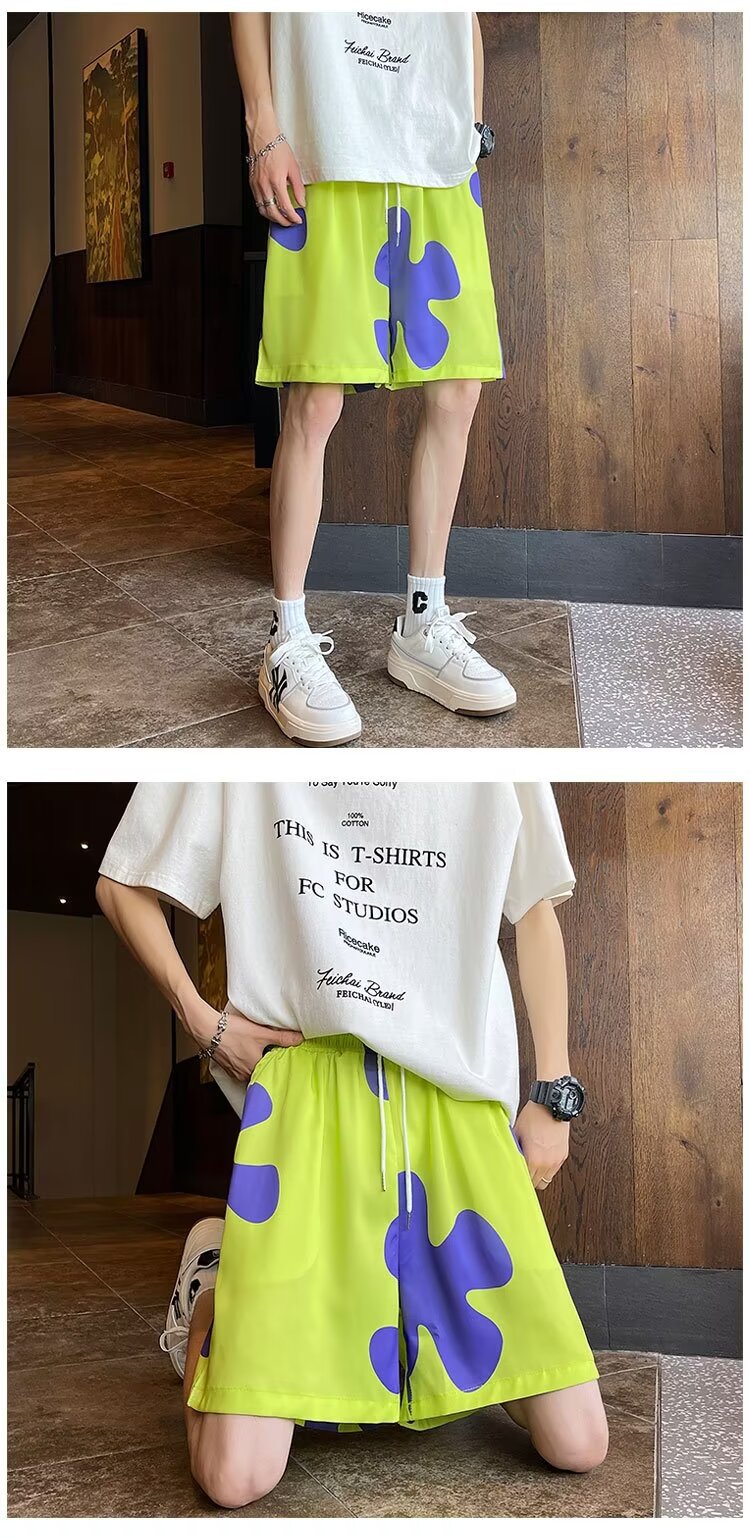 Círculos animados de fresa oso pantalones cortos de hombre de verano sueltos casa pijamas casuales pareja vacaciones de playa pantalones