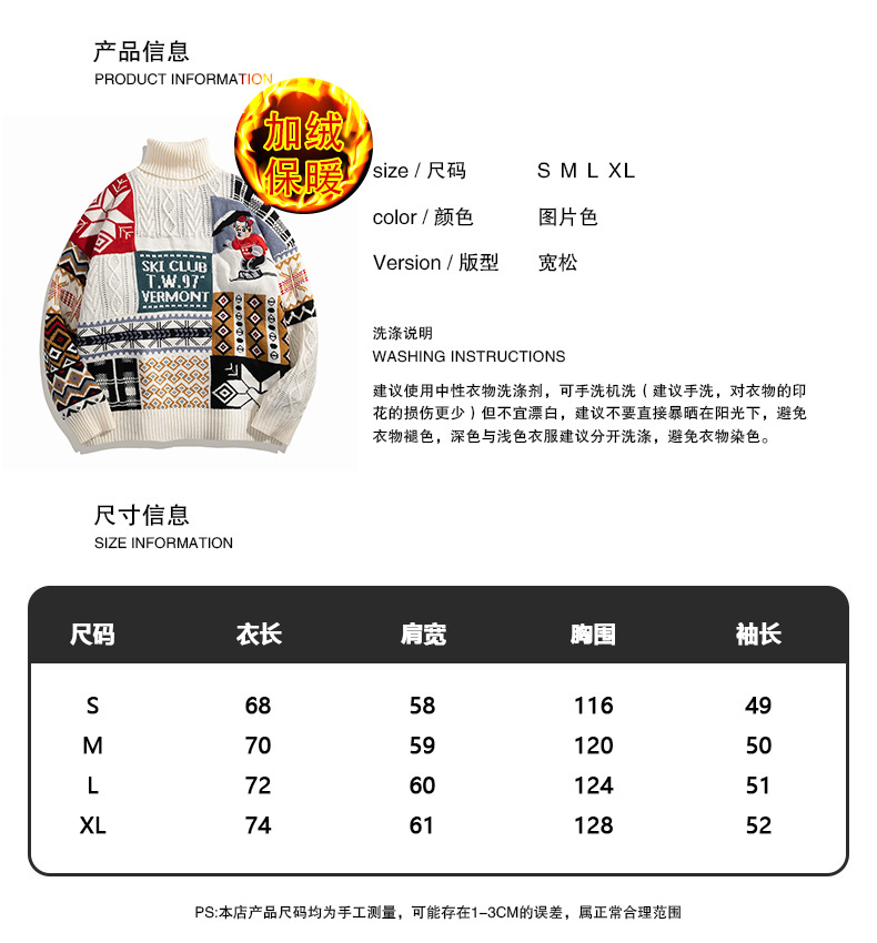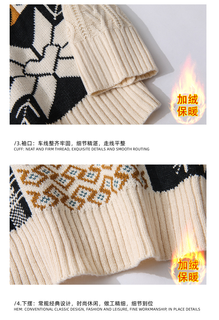 2024 otoño y invierno Harajuku estilo de color medio cuello camiseta de punto hombre marca de moda retro suéter de pareja flojo