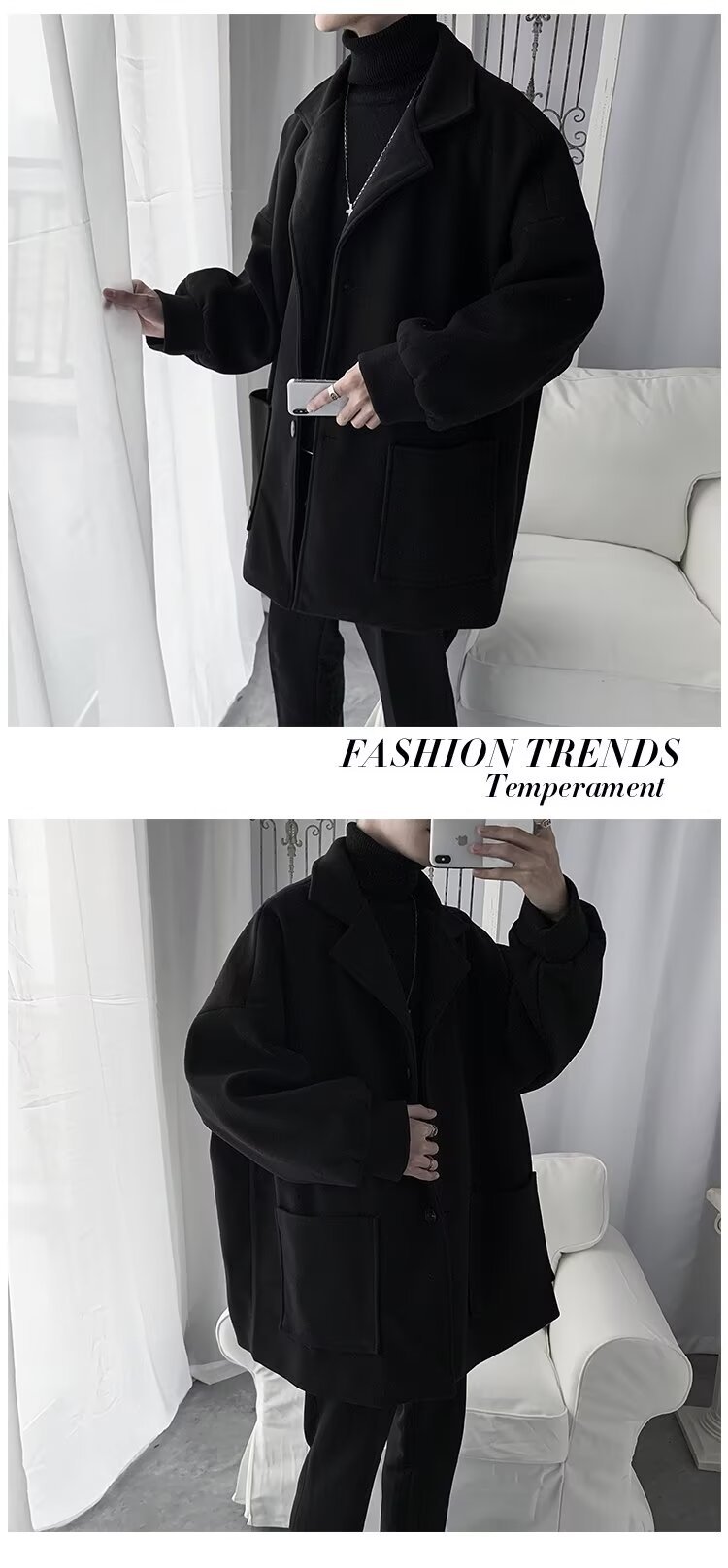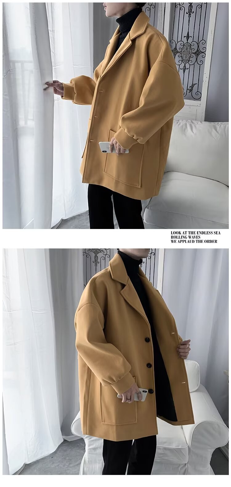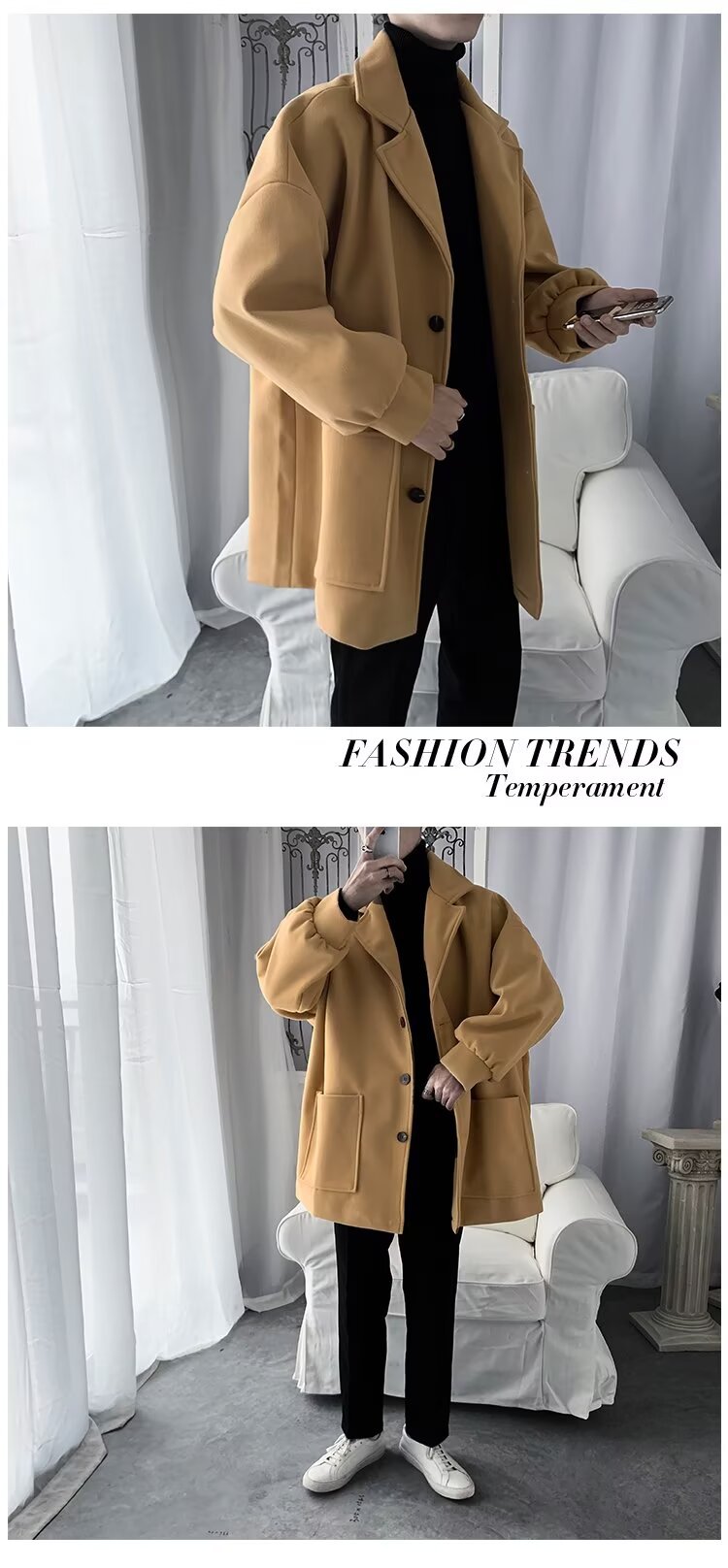 Chaqueta de tween para hombres, chaqueta de tween gruesa, abrigo de estilo medio largo, abrigo de estilo coreano, estilo de invierno y otoño, estilo de Hong Kong.