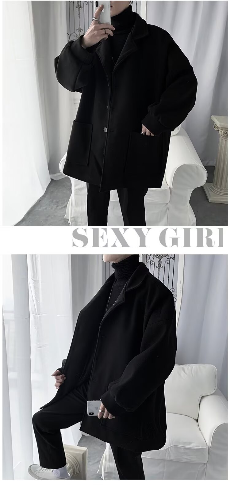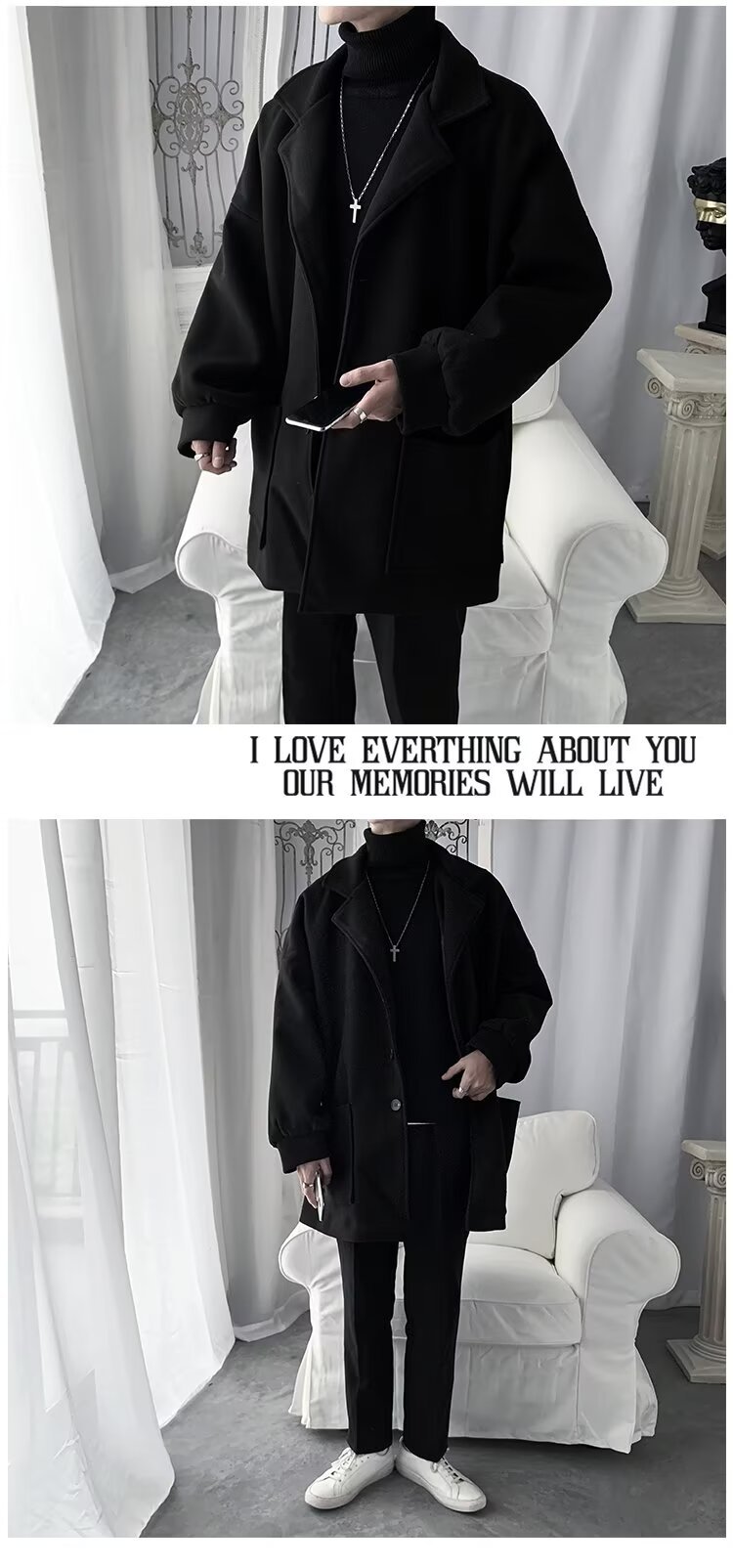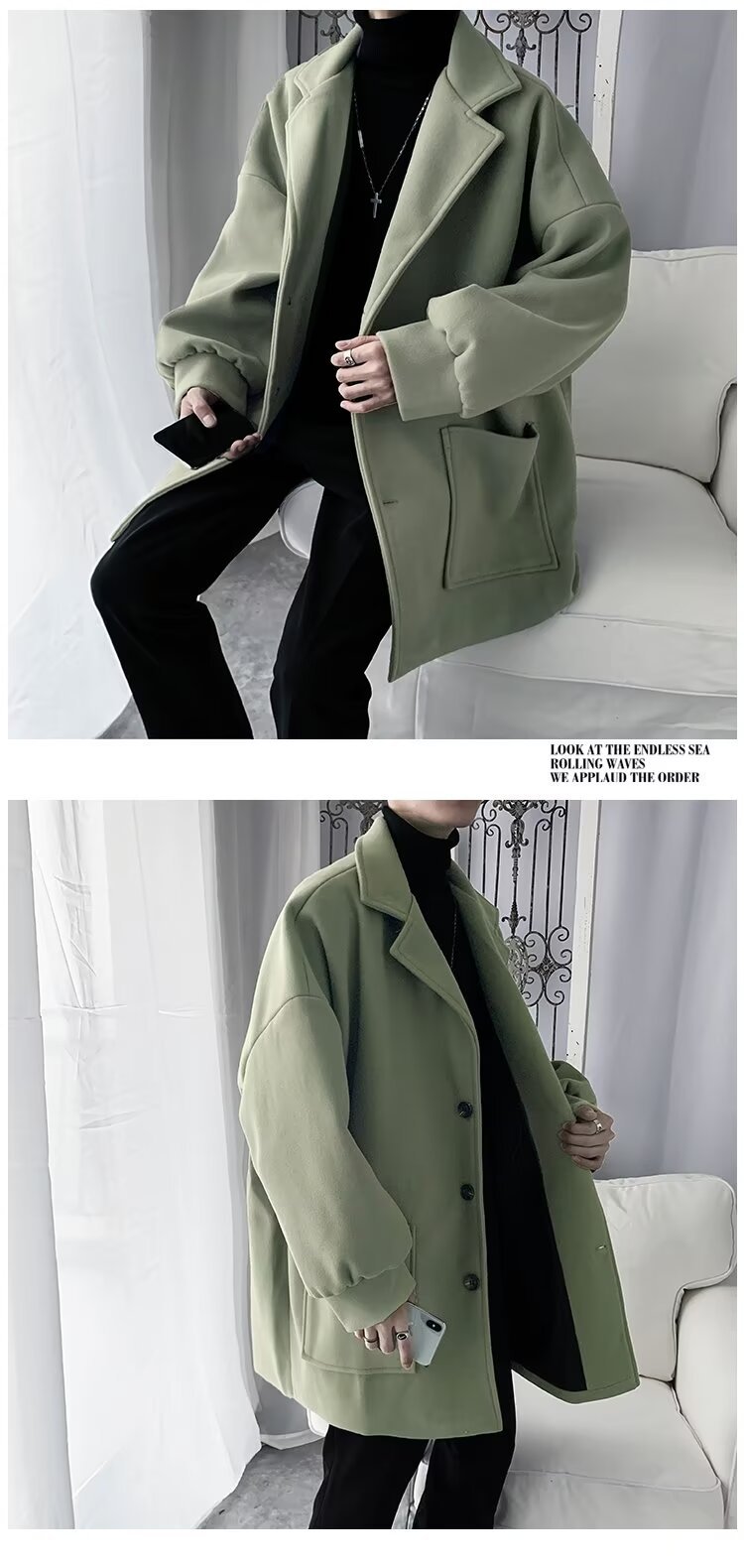 Chaqueta de tween para hombres, chaqueta de tween gruesa, abrigo de estilo medio largo, abrigo de estilo coreano, estilo de invierno y otoño, estilo de Hong Kong.