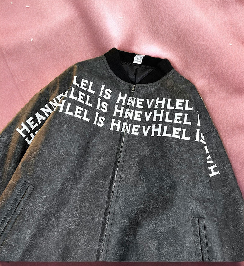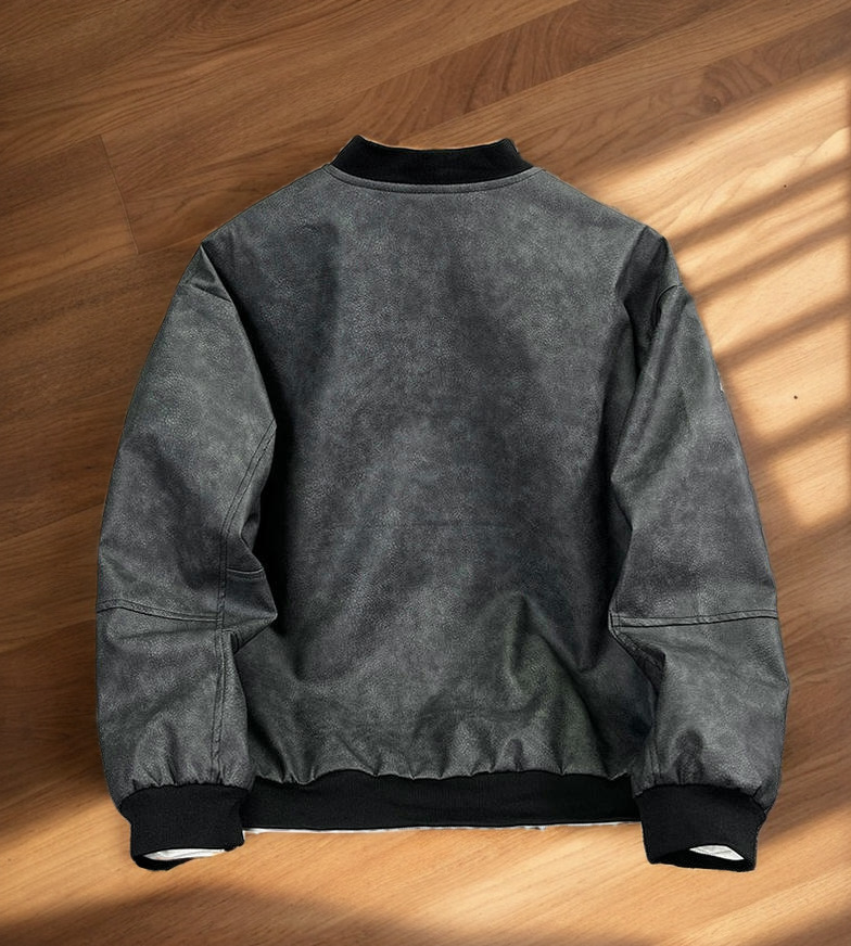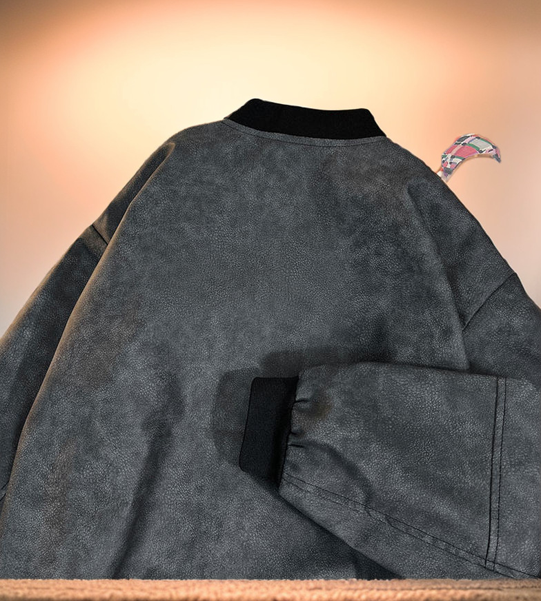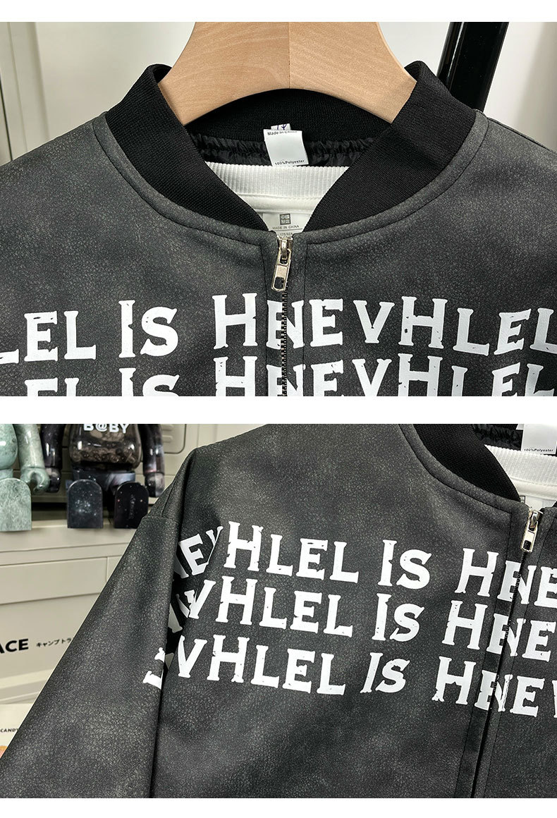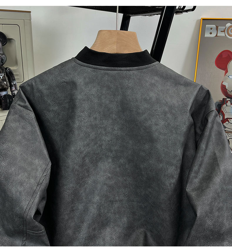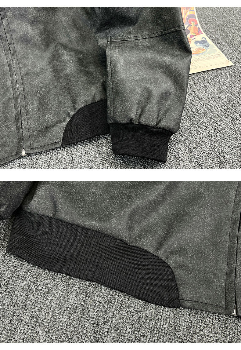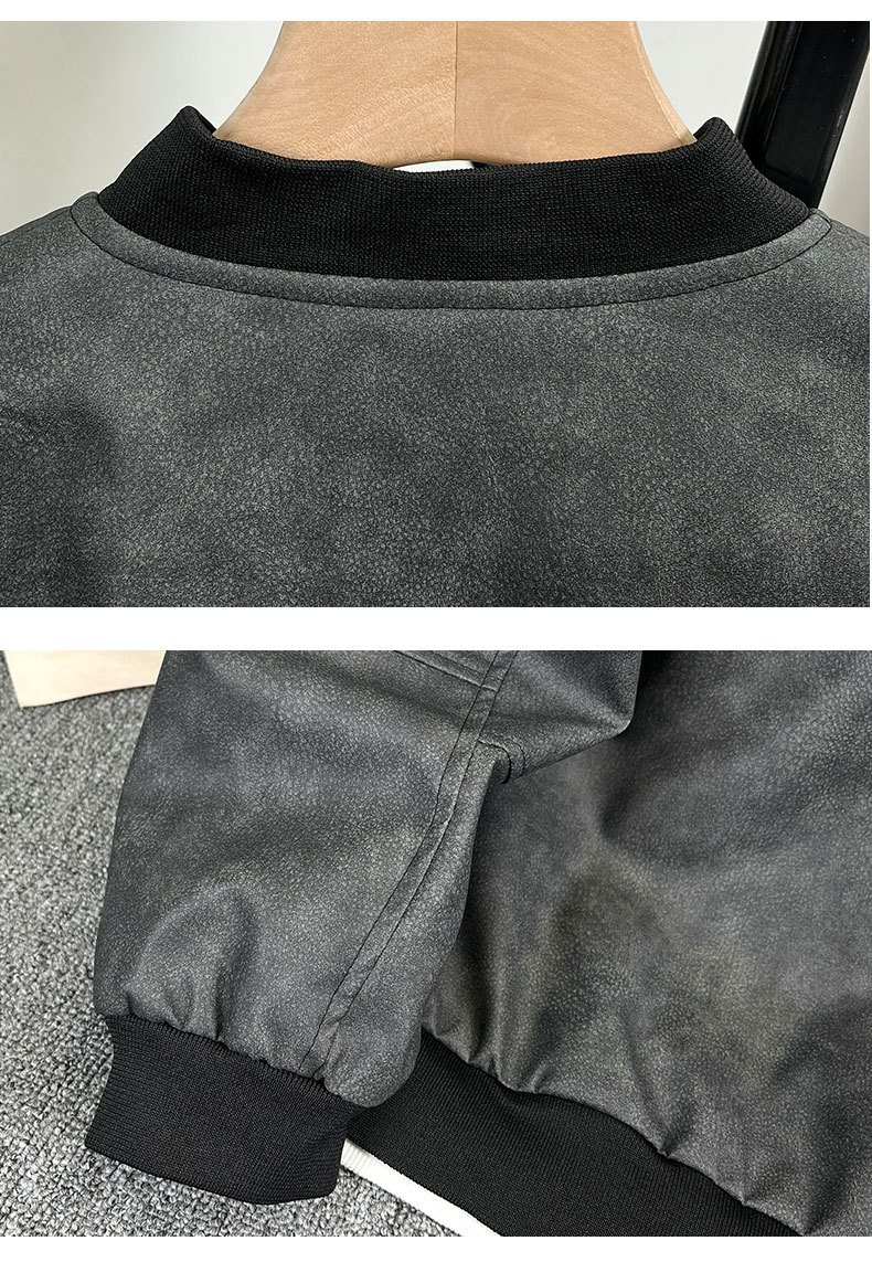 Cuero PU estilo americano de moda de calle alta chaqueta de cuello de béisbol hombre chaqueta con cremallera suelta chaqueta casual