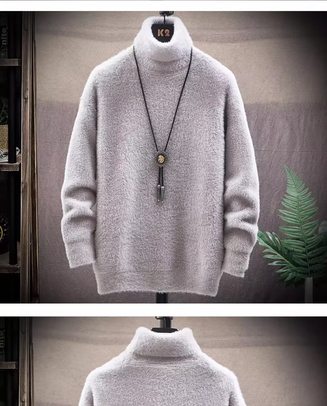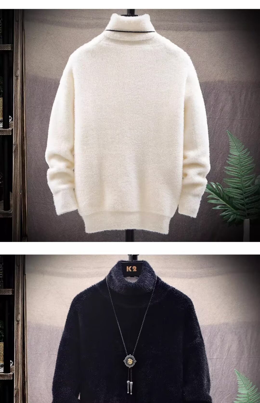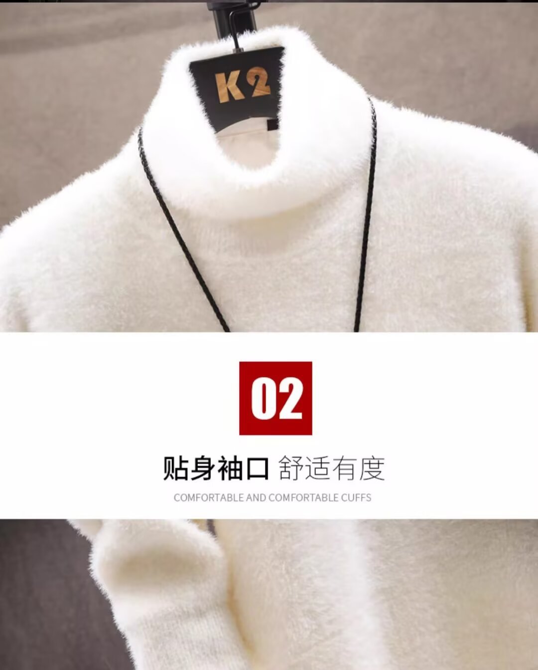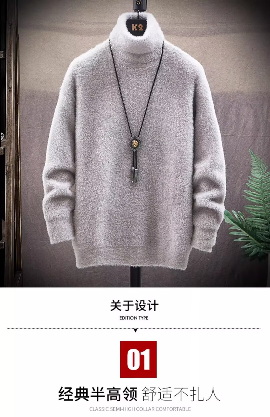 El mismo suéter de cuello alto de hombre de otoño de moda coreana suelta de arroz grueso camiseta de punto caliente