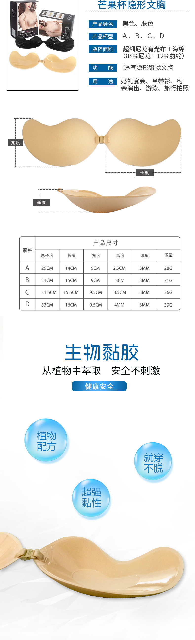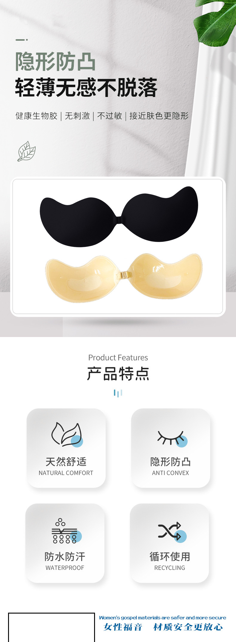 Bra de mango sin correa de hombro delgada silicona adhesivo de pecho sin anillo de acero ropa interior invisible poliéster transpirable manzana frente al pecho