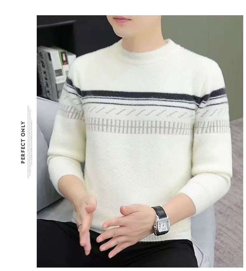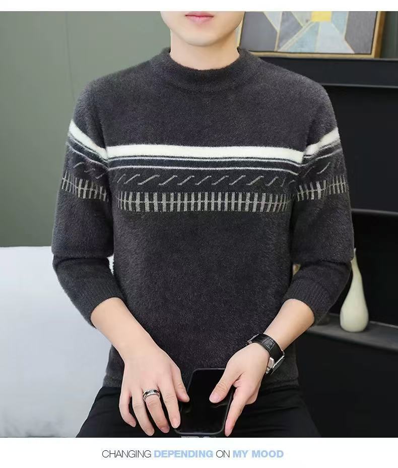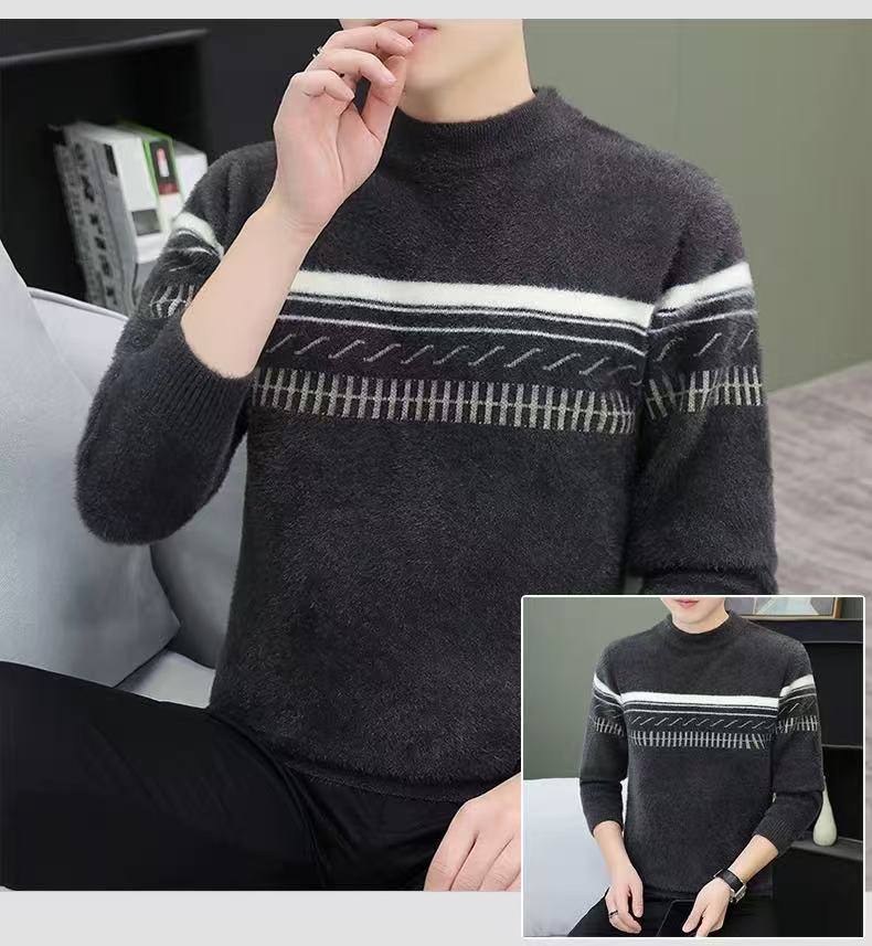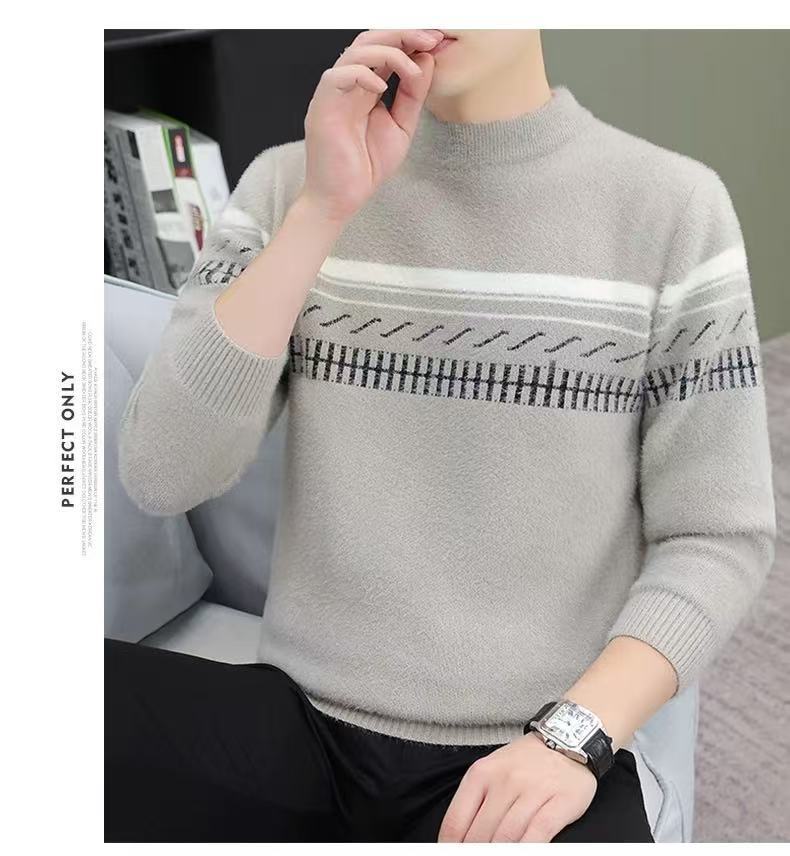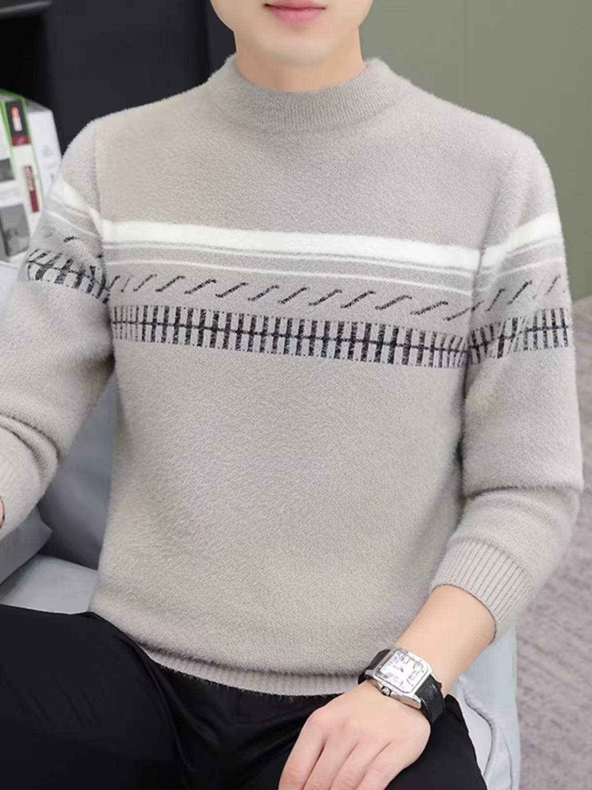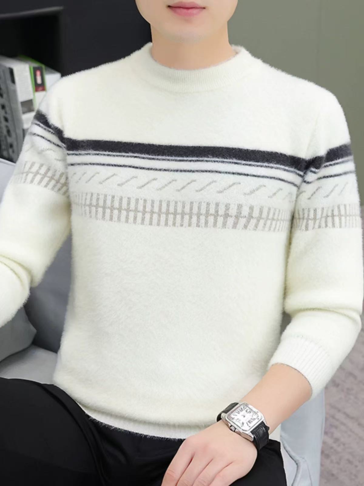 YINGAO retro engrosado jacquard suéter de lana hombre manga larga invierno cálido todo el suéter de lana a rayas de hombre