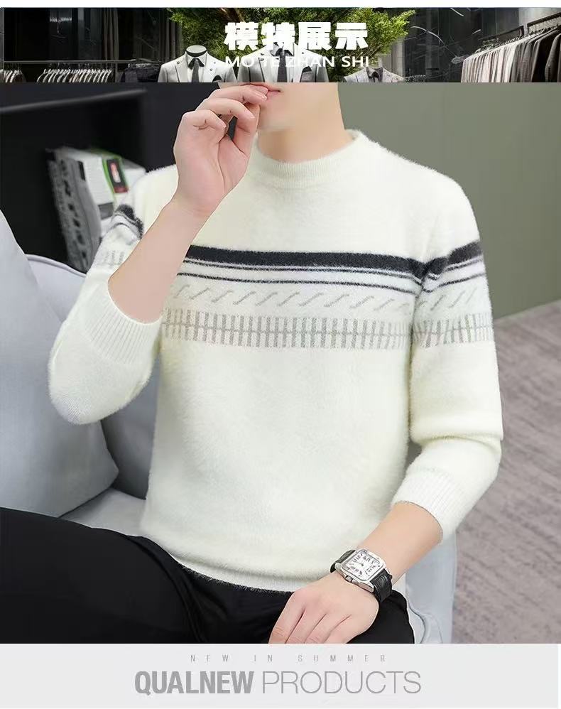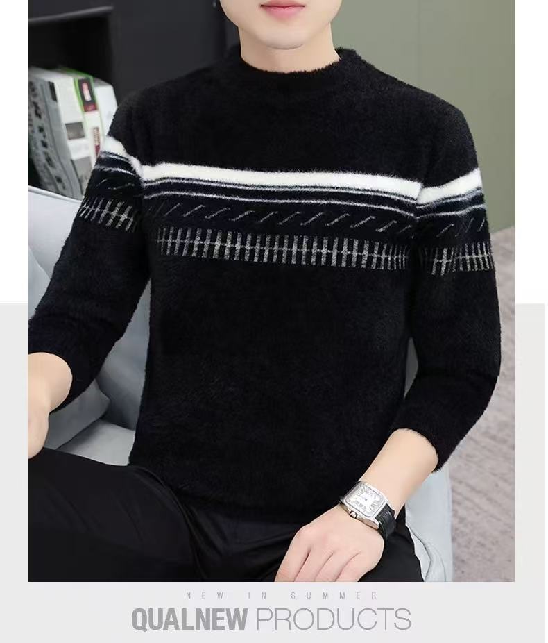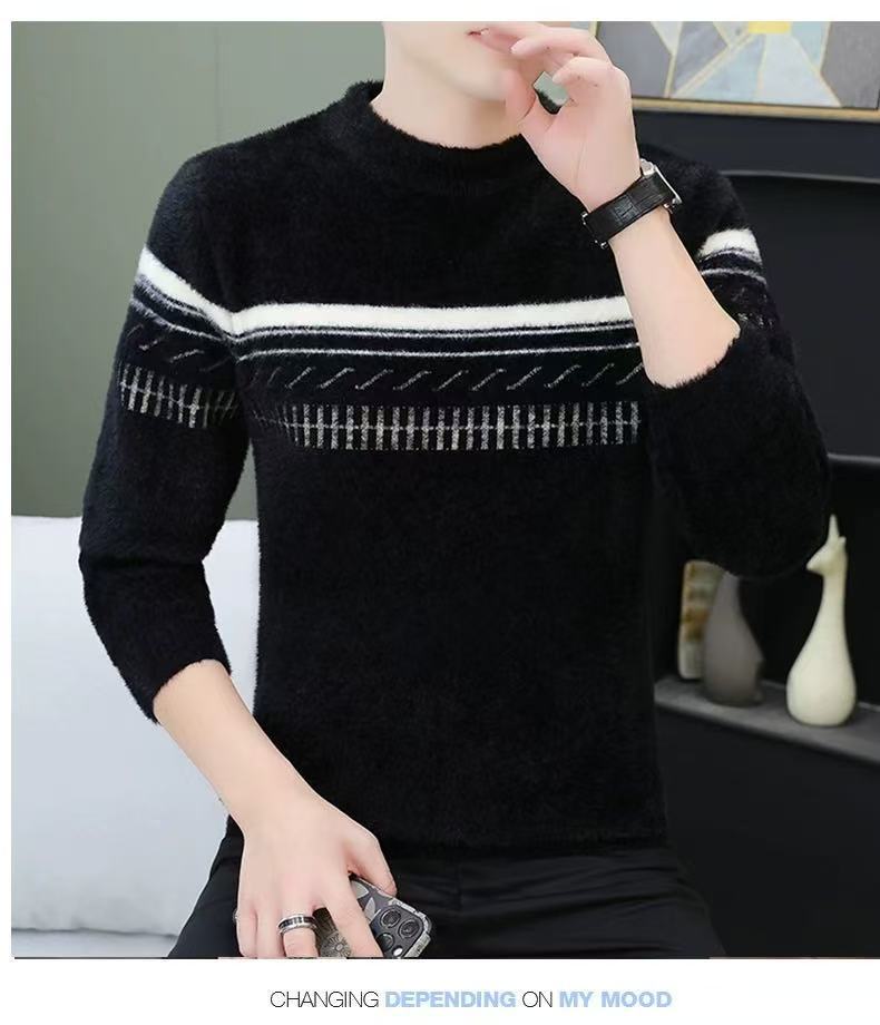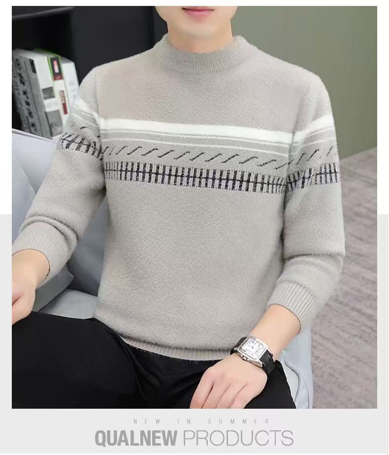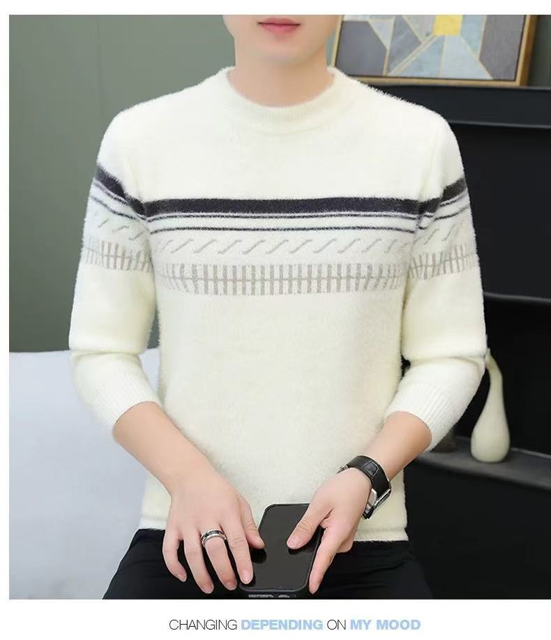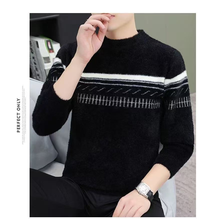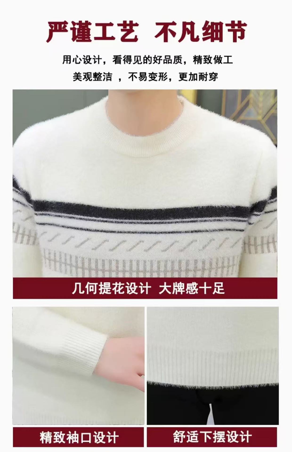 YINGAO retro engrosado jacquard suéter de lana hombre manga larga invierno cálido todo el suéter de lana a rayas de hombre