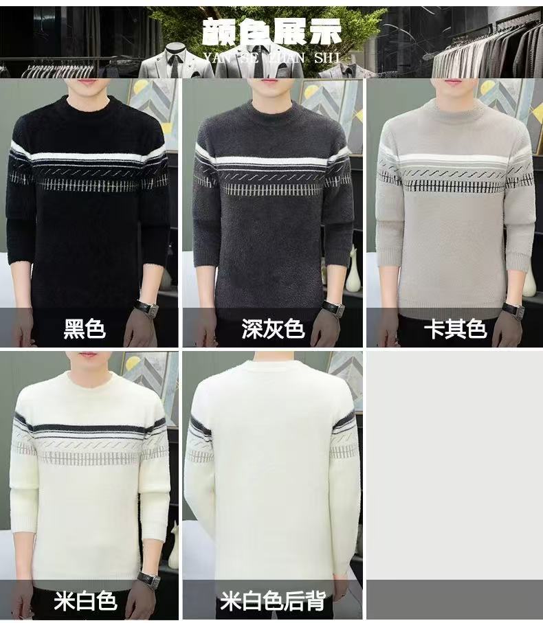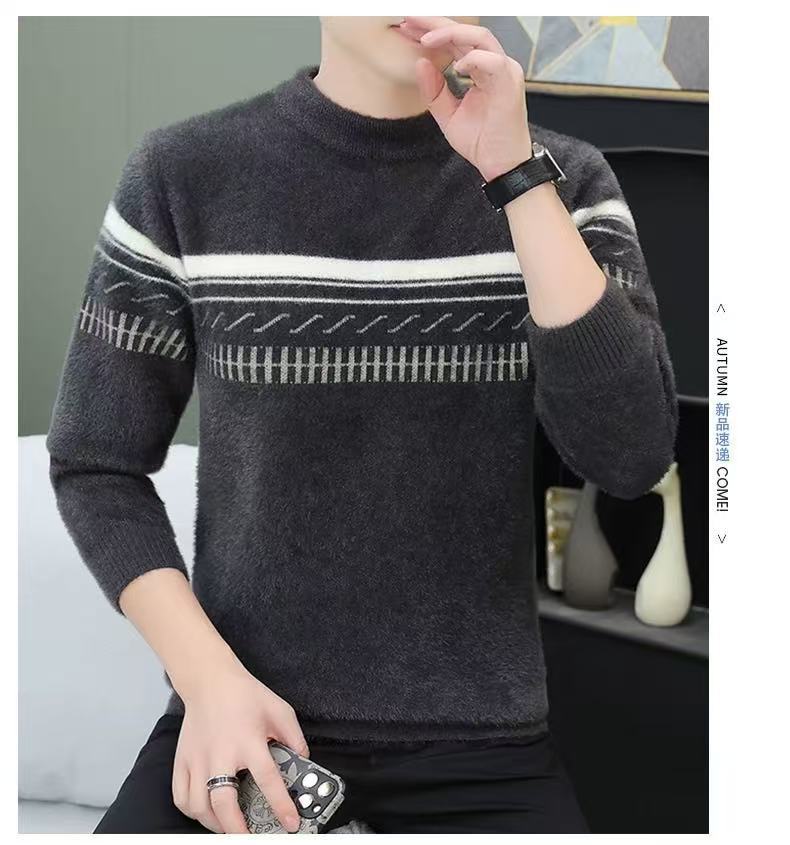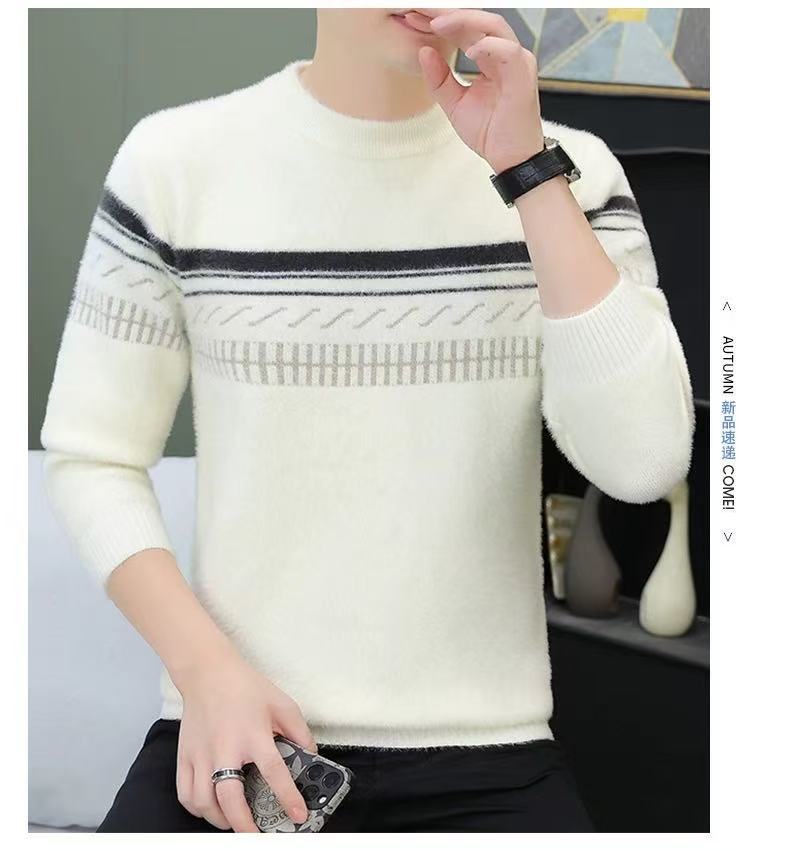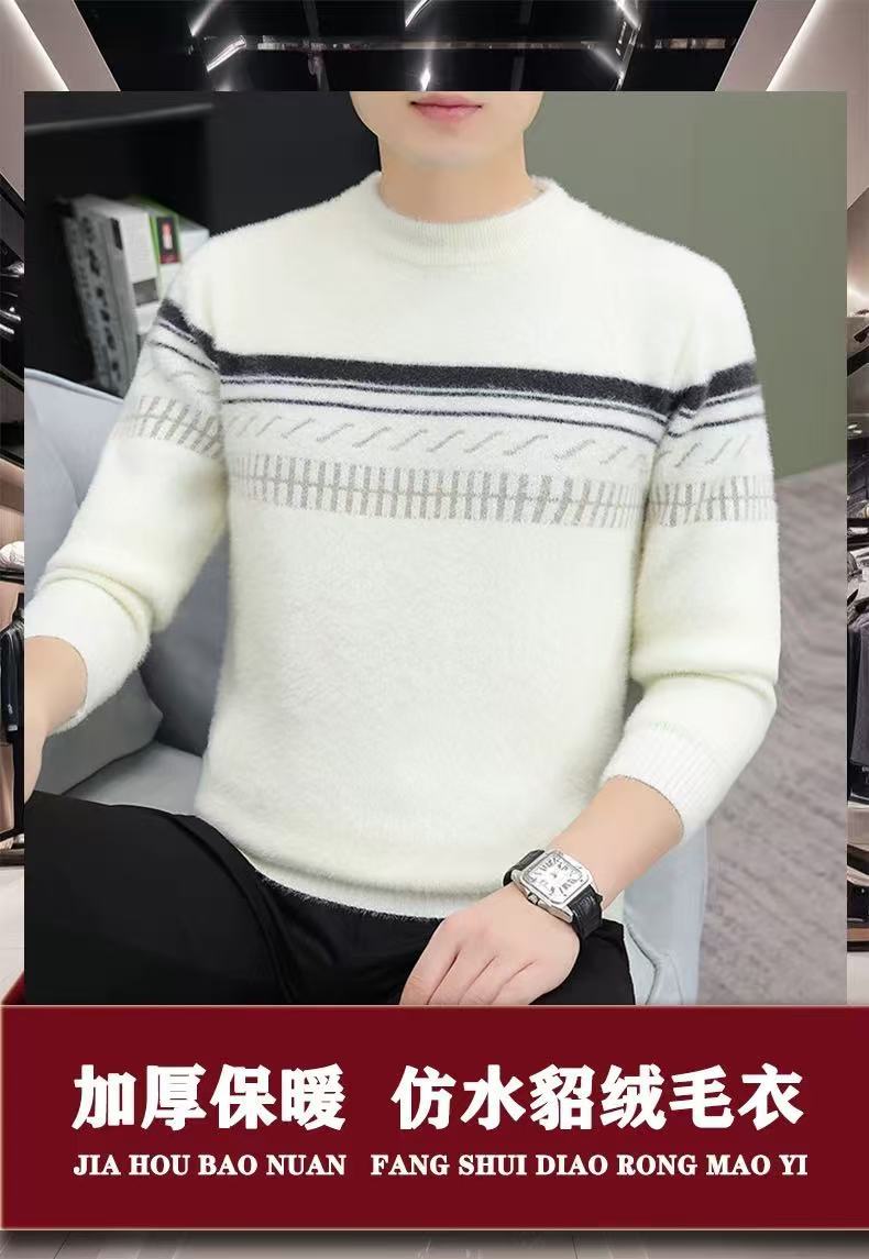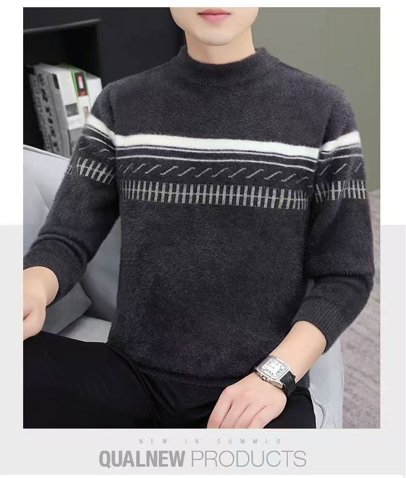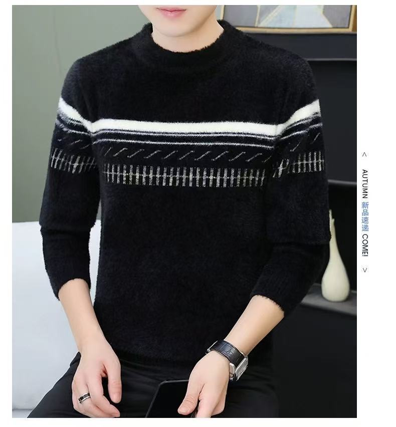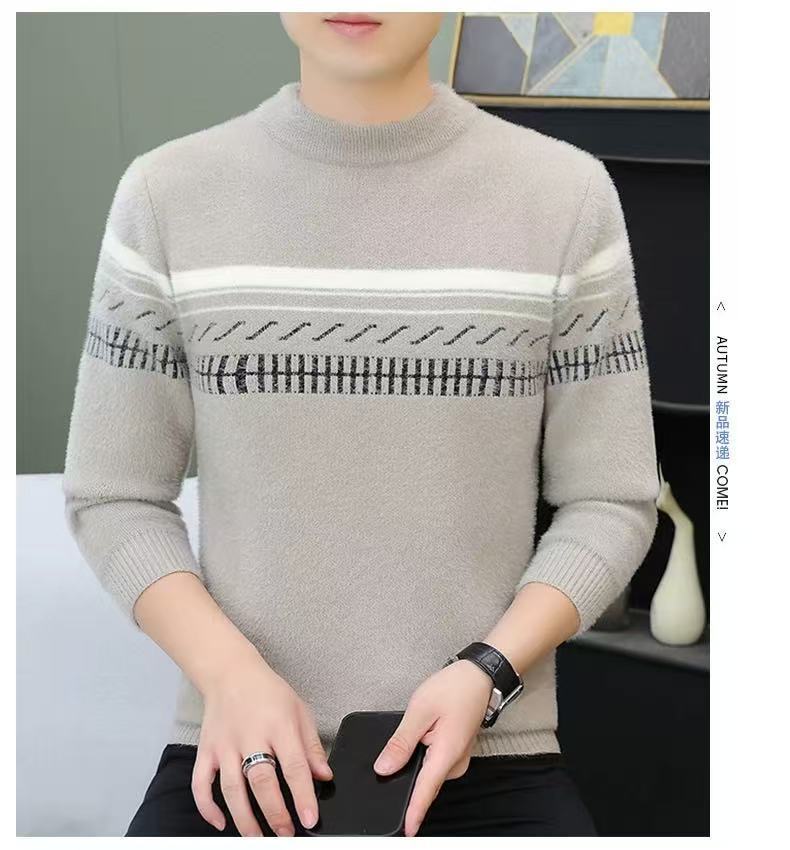 YINGAO retro engrosado jacquard suéter de lana hombre manga larga invierno cálido todo el suéter de lana a rayas de hombre