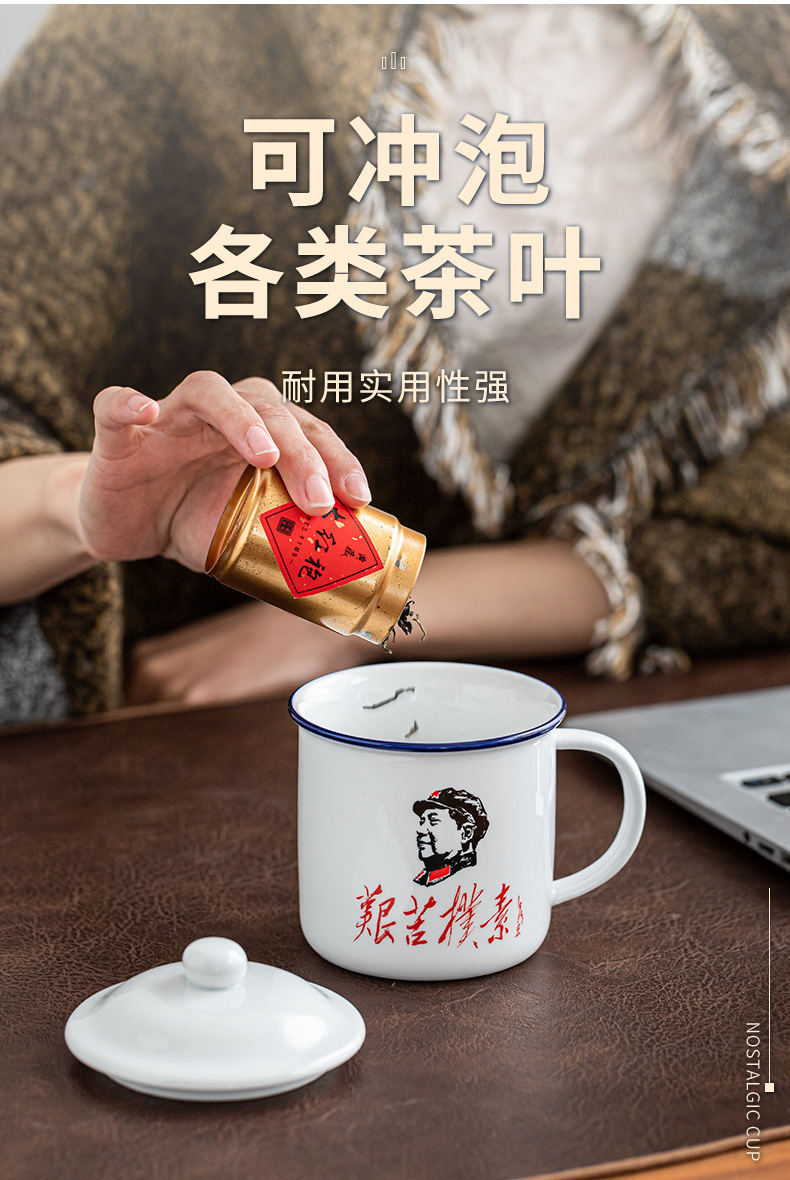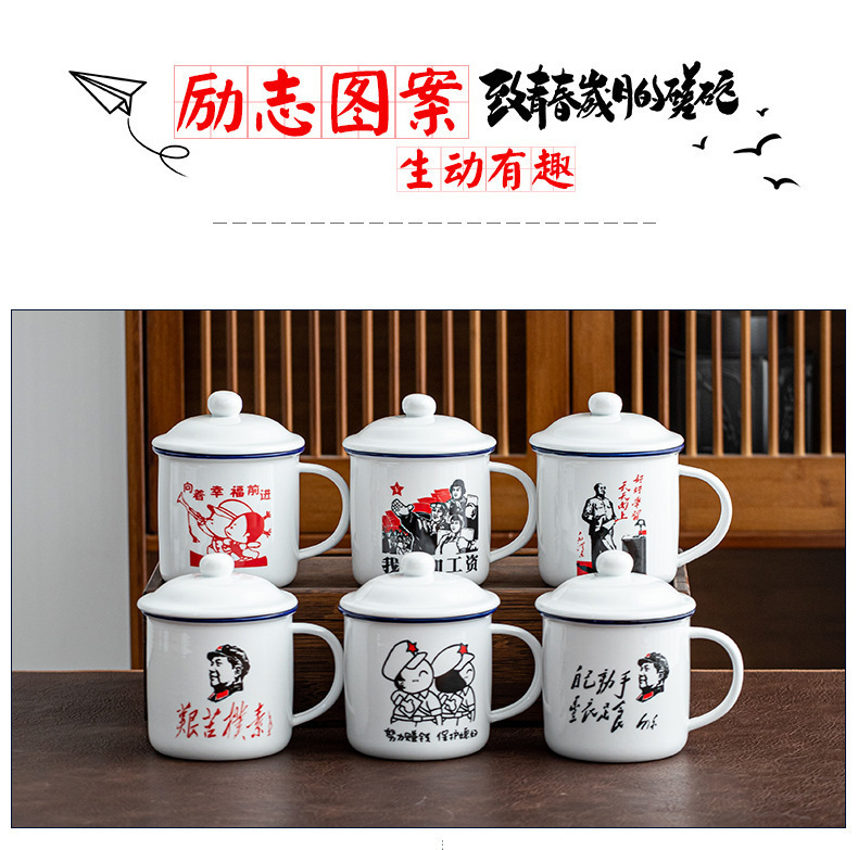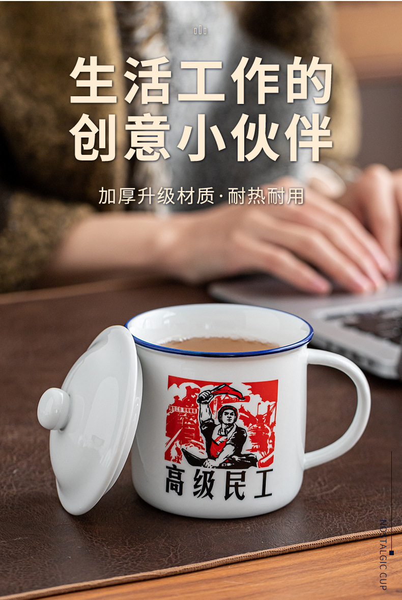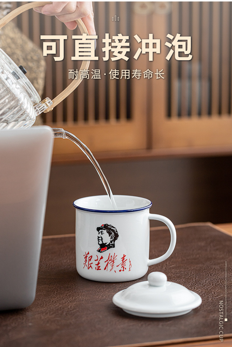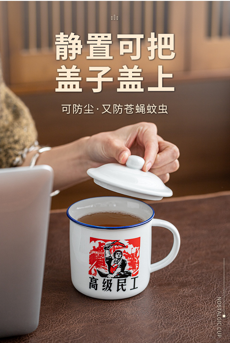 Taza antiguo antiesmalte con taza de cubierta, taza de té clásica retro, taza de marca, taza de oficina de gran capacidad, taza creativa