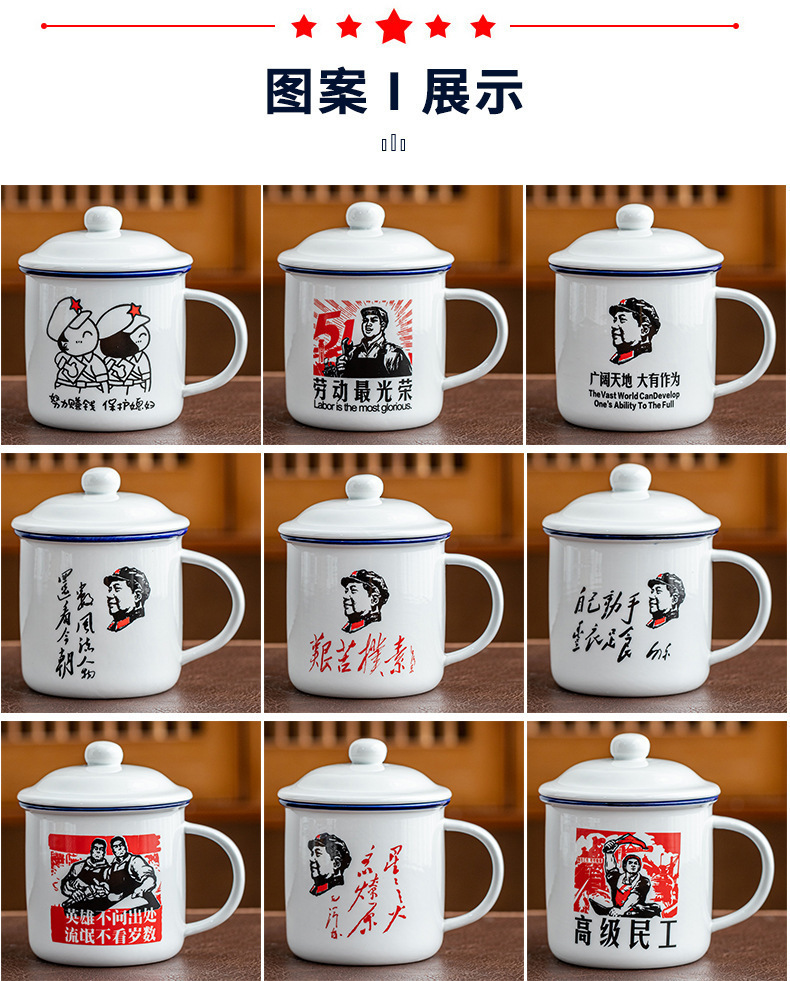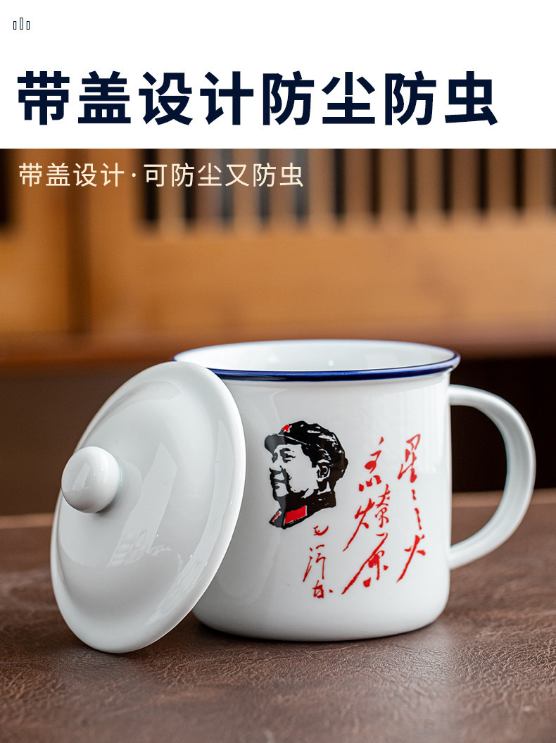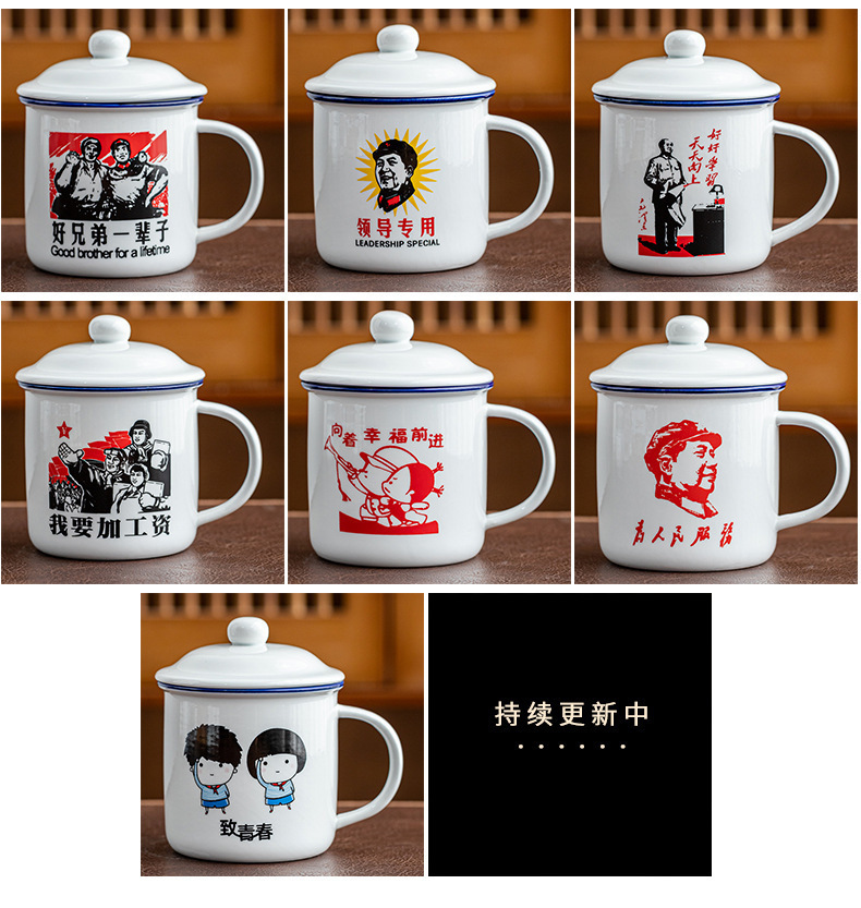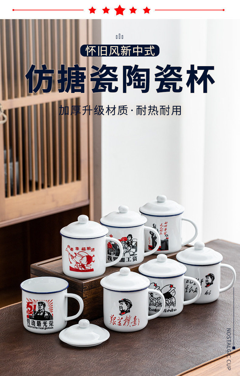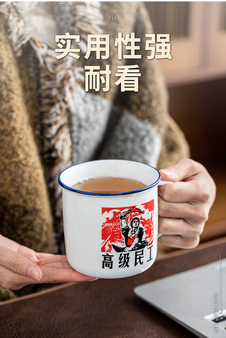 Taza antiguo antiesmalte con taza de cubierta, taza de té clásica retro, taza de marca, taza de oficina de gran capacidad, taza creativa