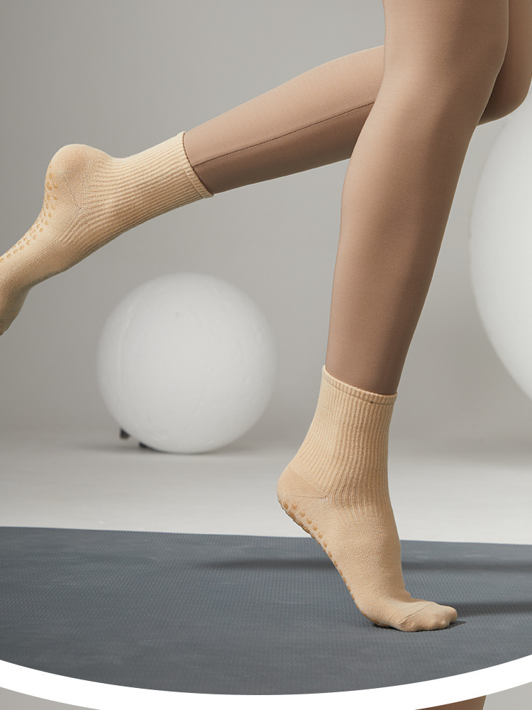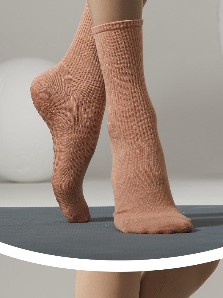 Calcetines deportivas profesionales de acondicionamiento físico de color sólido, calcetines redondas simples, calcetines de piso largas de ballet, otoño y invierno