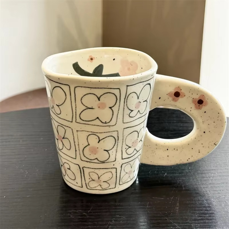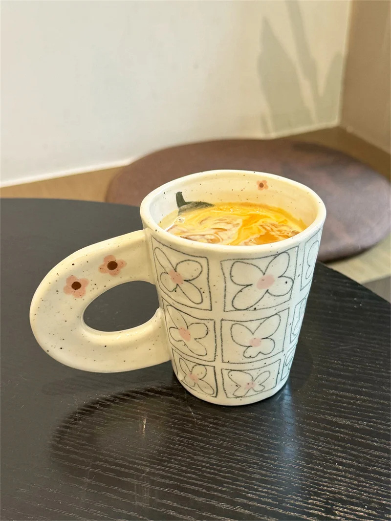 Nicho de dibujos animados taza de marca personalidad creativa mango taza de cerámica taza de agua de café de mano mano de la niña para el hogar