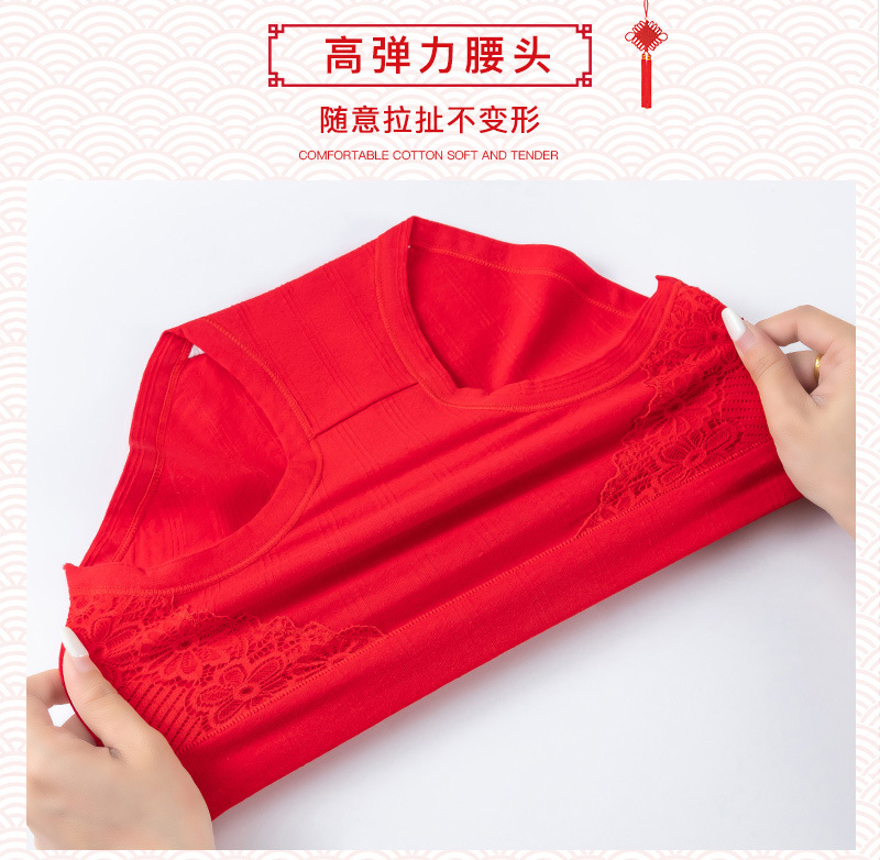 Madre de mediana edad, calzoncillos de mujer de algodón, calzoncillos de cintura alta, calzoncillos a prueba de fugas, calzoncillos rojos de boda.