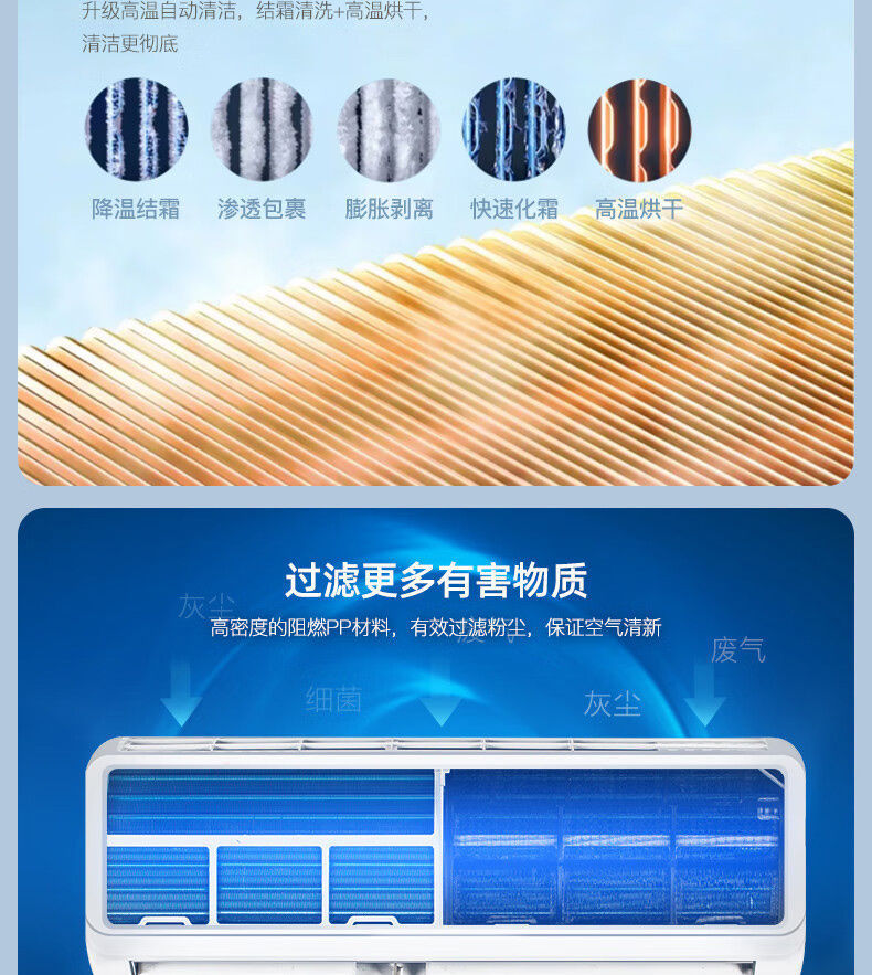 | Lista de envases | Unidad interior, control remoto, batería # 7, instrucciones, módulo de eliminación de polvo electrostático, cableado del sensor de temperatura de la tubería exterior (tiene máquina de descongelación de temperatura de la tubería exterior), tubería de salida de agua, PE |