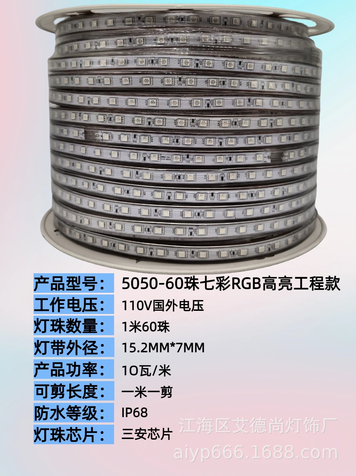 Tira de Luces LED 110V220V RGB5050 Flexible, Colorida, para Exteriores, Impermeable, Iluminación Ambiental, Tira de Luces para Ingeniería