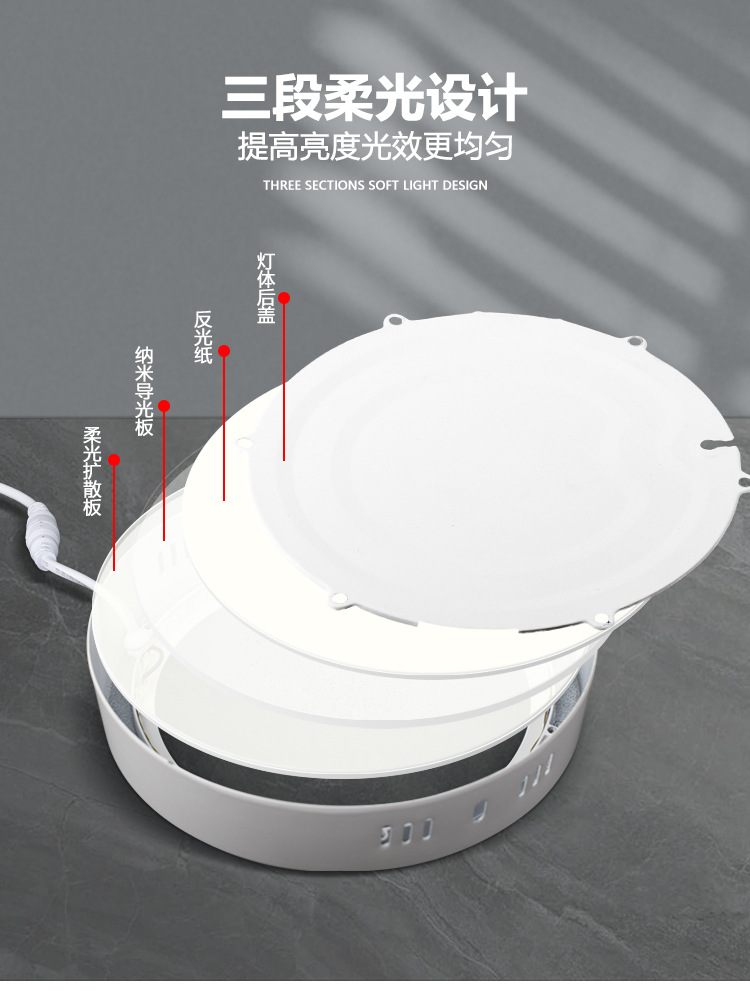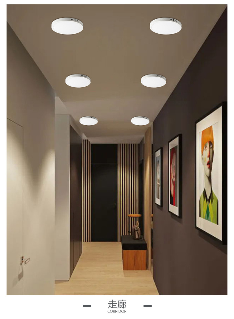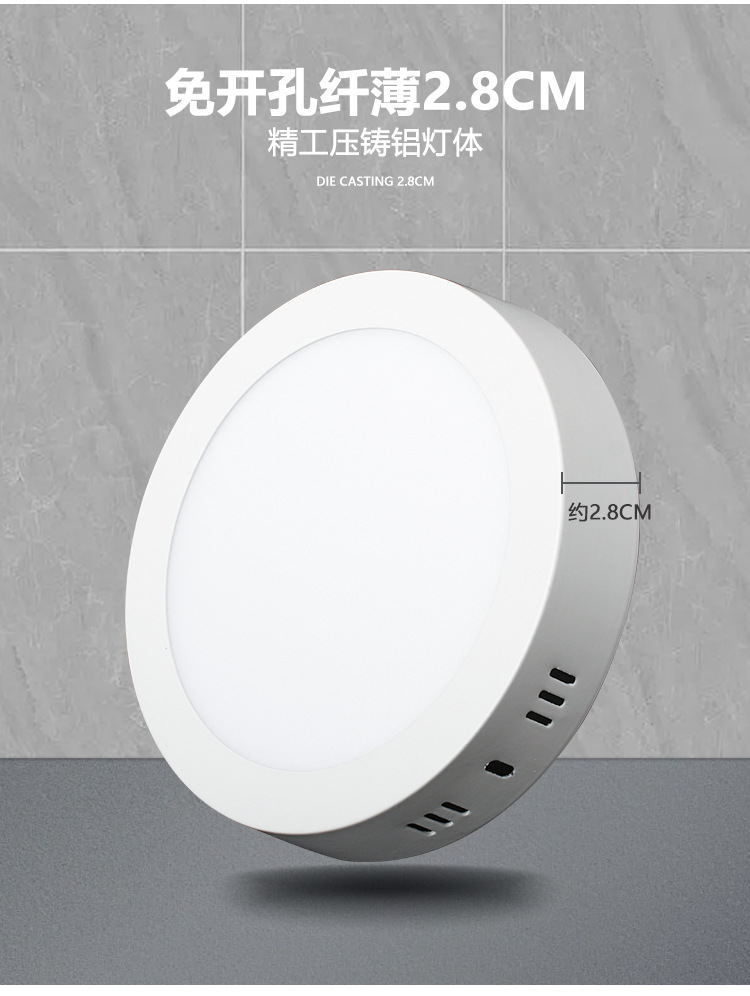 Lámpara de panel de superficie ultrafina LED, proyecto de downlight sin orificios empotrados, lámpara de techo con cambio de luz de tres colores, pasillo de entrada
