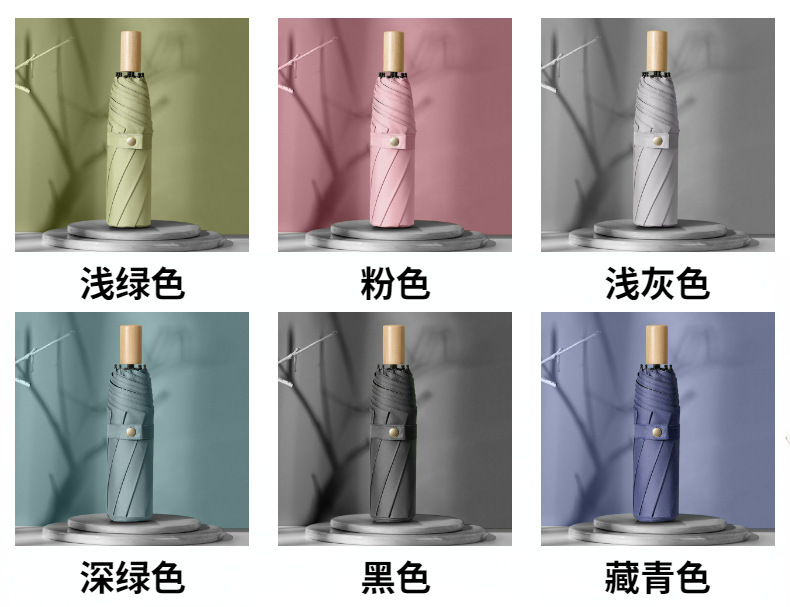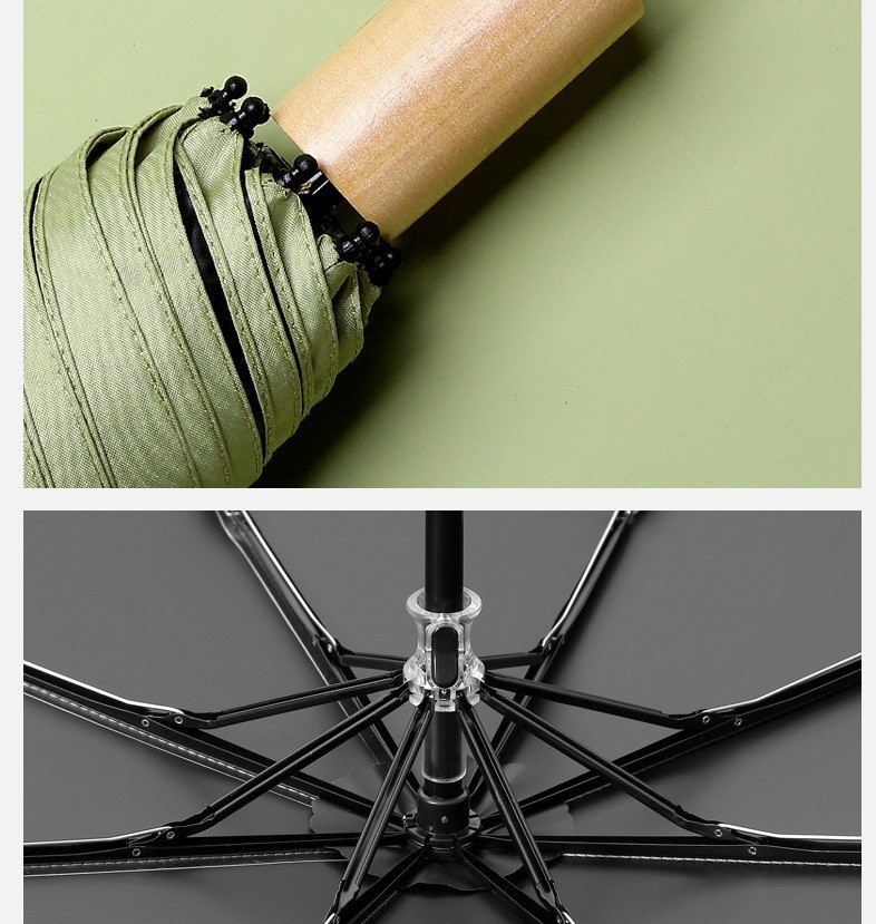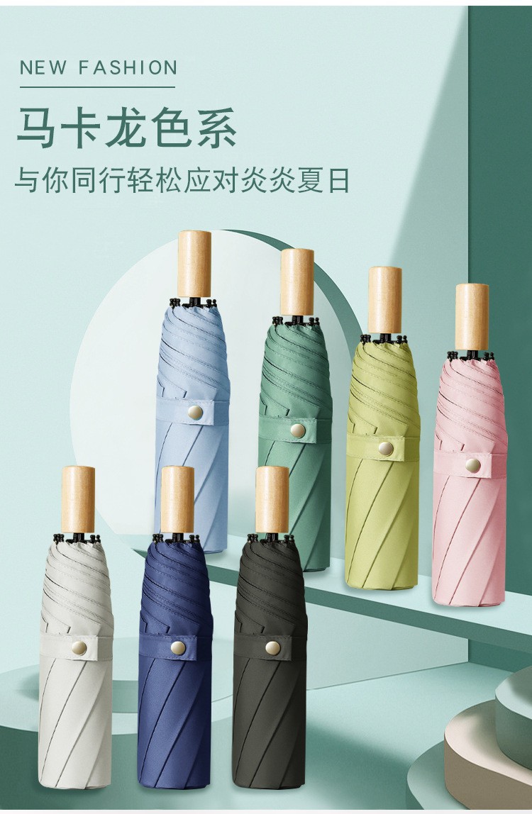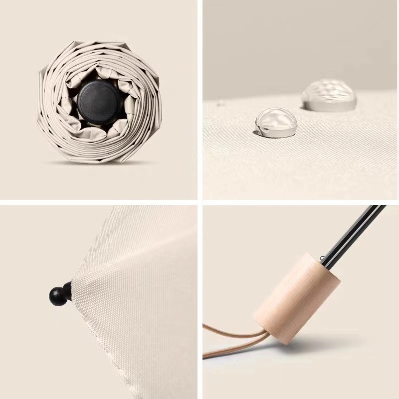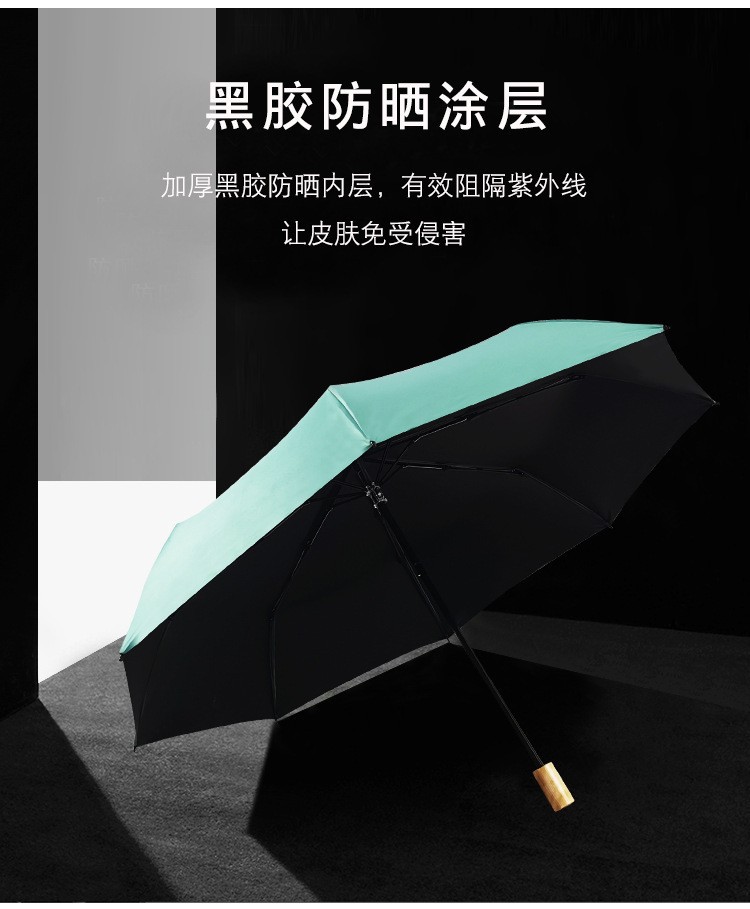 Paraguas de tres plegadas paraguas de vinilo para mujeres paraguas de protección solar UV paraguas de madera paraguas logotipo personalizado paraguas