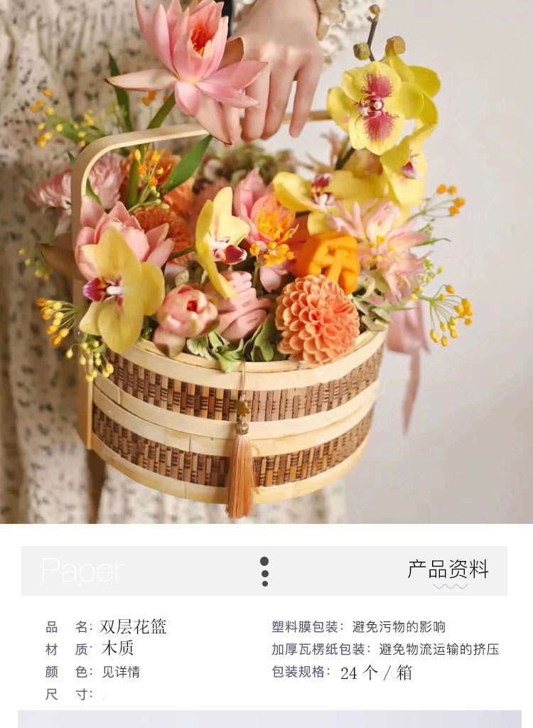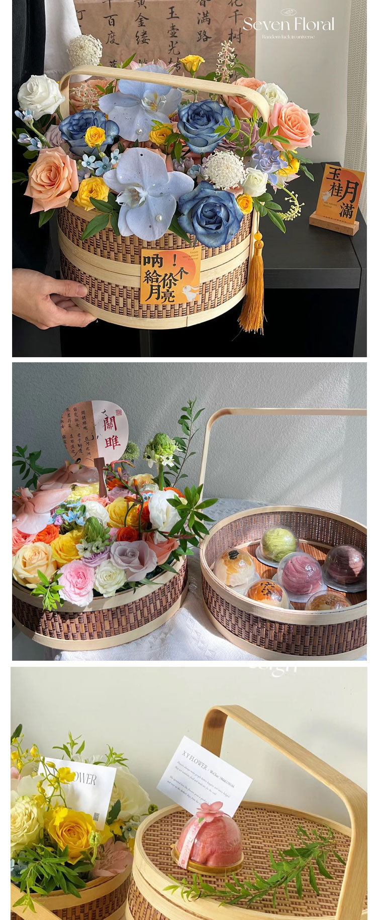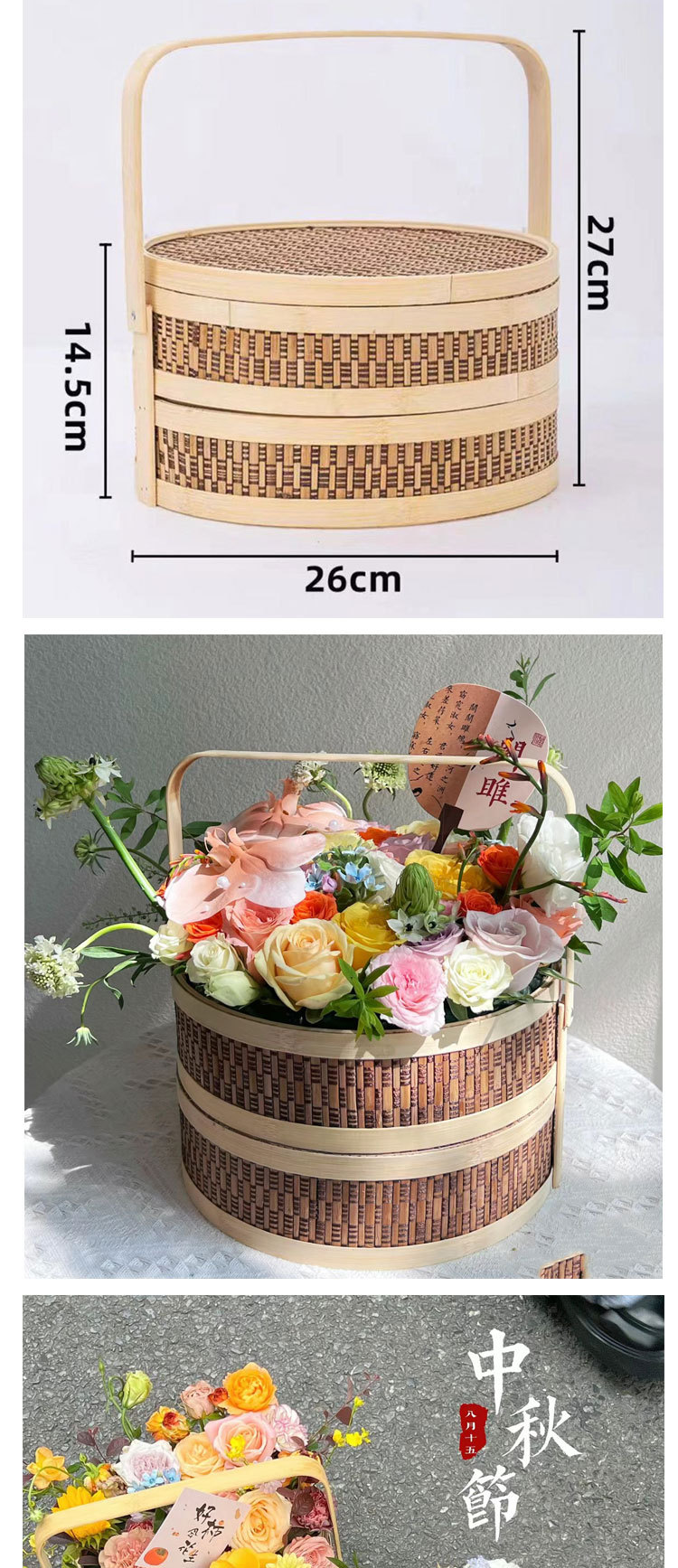 Festival del Medio Otoño pastel de luna nueva cesta de bambú de estilo chino de doble capa de tela de mano cestas de flores cestas de flores cestas de frutas
