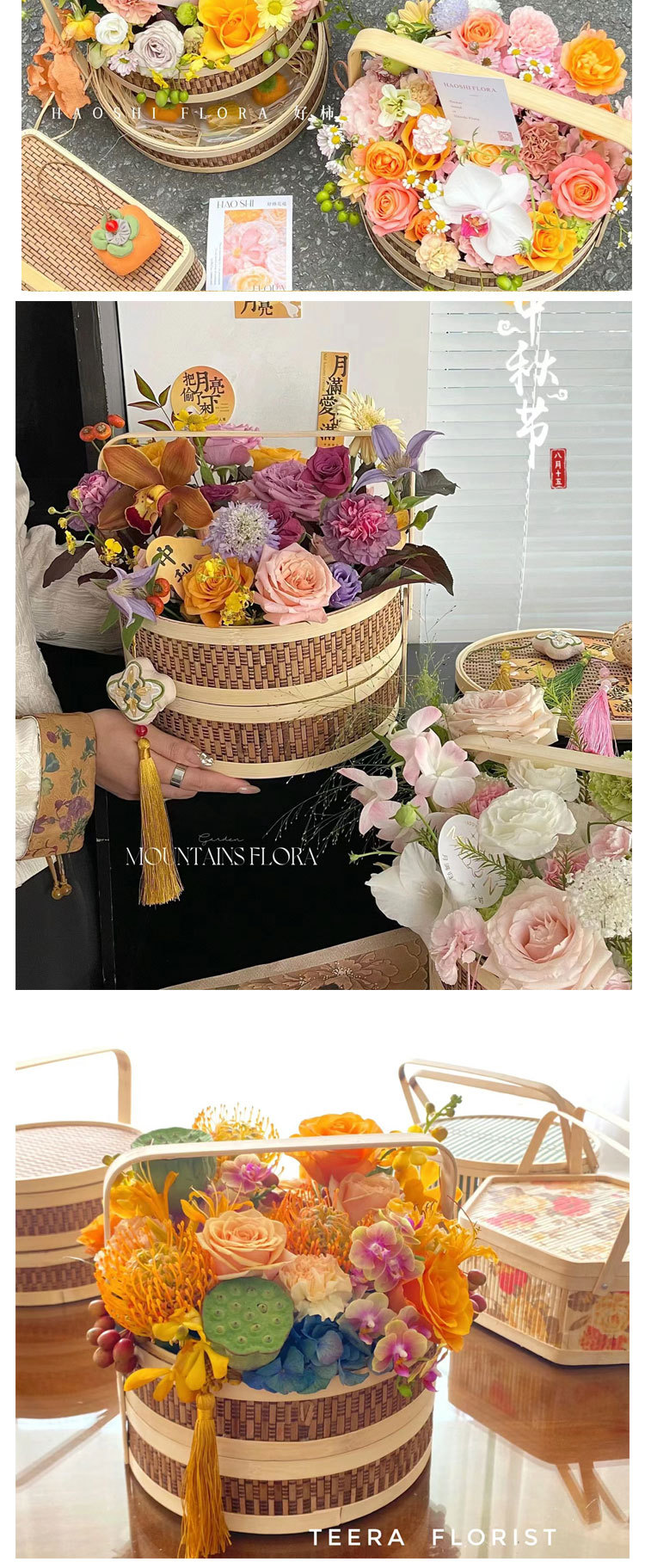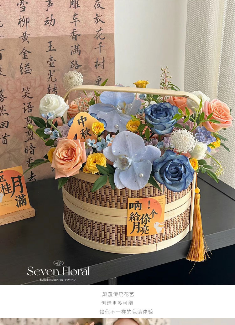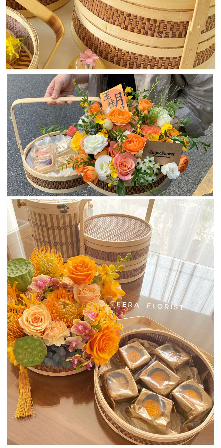 Festival del Medio Otoño pastel de luna nueva cesta de bambú de estilo chino de doble capa de tela de mano cestas de flores cestas de flores cestas de frutas