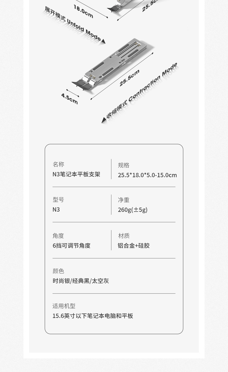 ![Soporte para portátil de aleación de aluminio N3 [plata-todo silicona]](https://cbu01.alicdn.com/img/ibank/O1CN01uj7lLi1jlMBQpJZGx_!!2219349454588-0-cib.jpg)