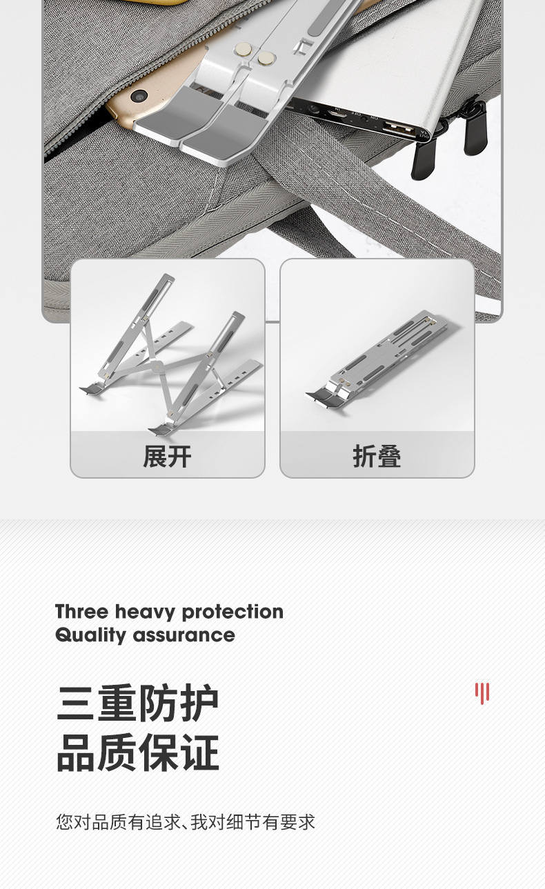 Soporte para computadora portátil, ajustable en altura, con radiador, transfronterizo, de aleación de aluminio, portátil, plegable y con almacenamiento