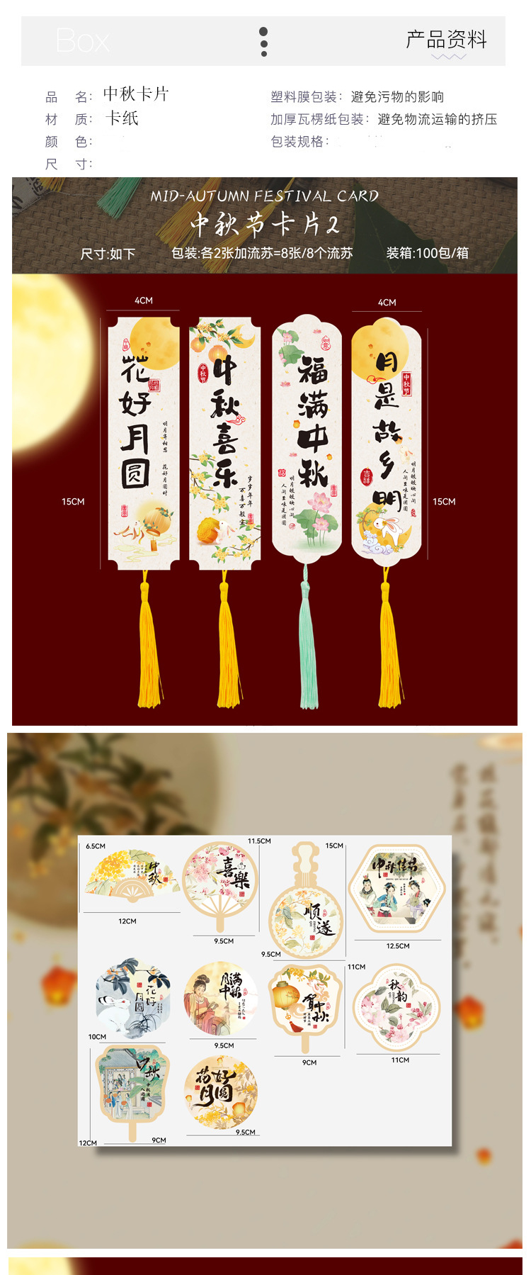 Regalos del Festival del Medio Otoño Nuevo estilo chino tarjeta de felicitación tarjeta de felicitación de vacaciones tarjeta de regalo caja de regalo material de decoración ramo de flores tarjeta de elevación