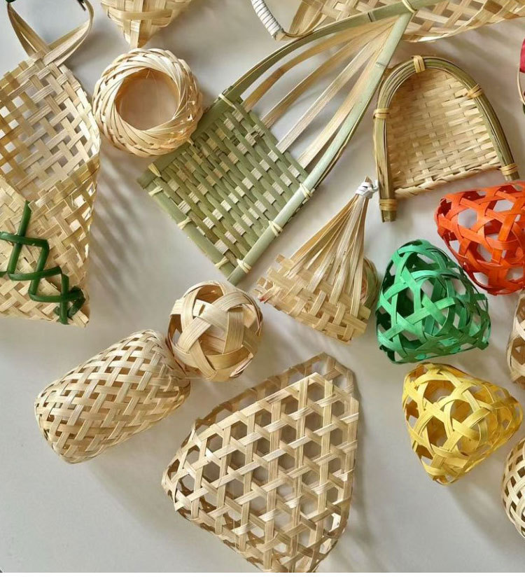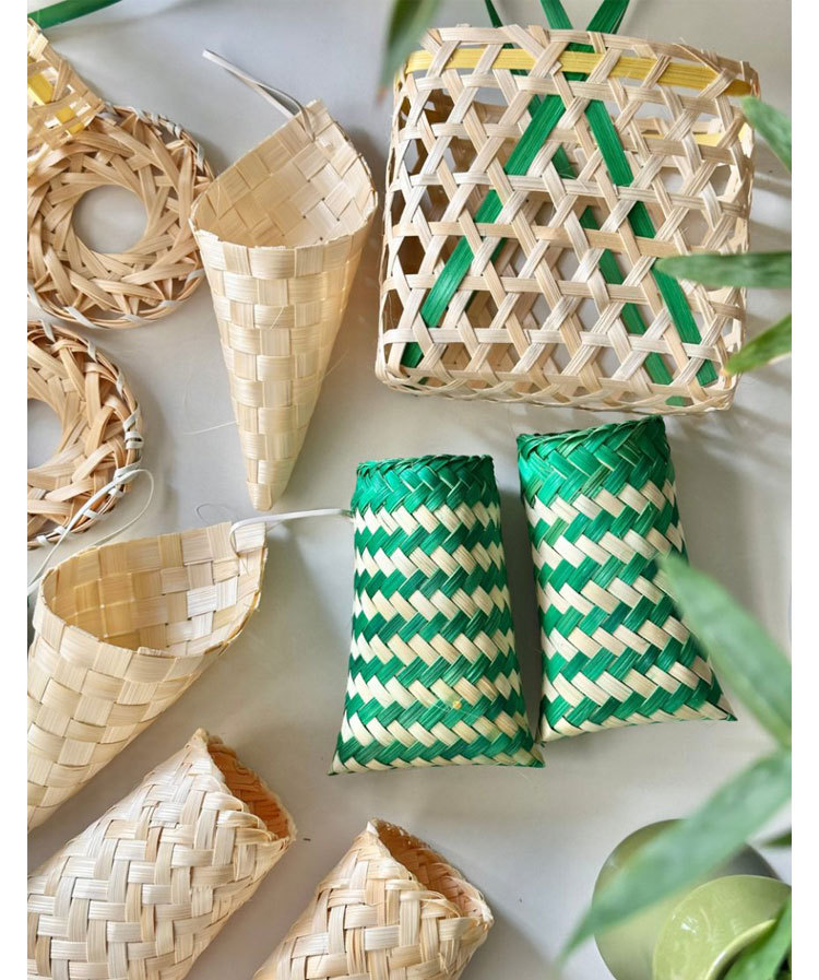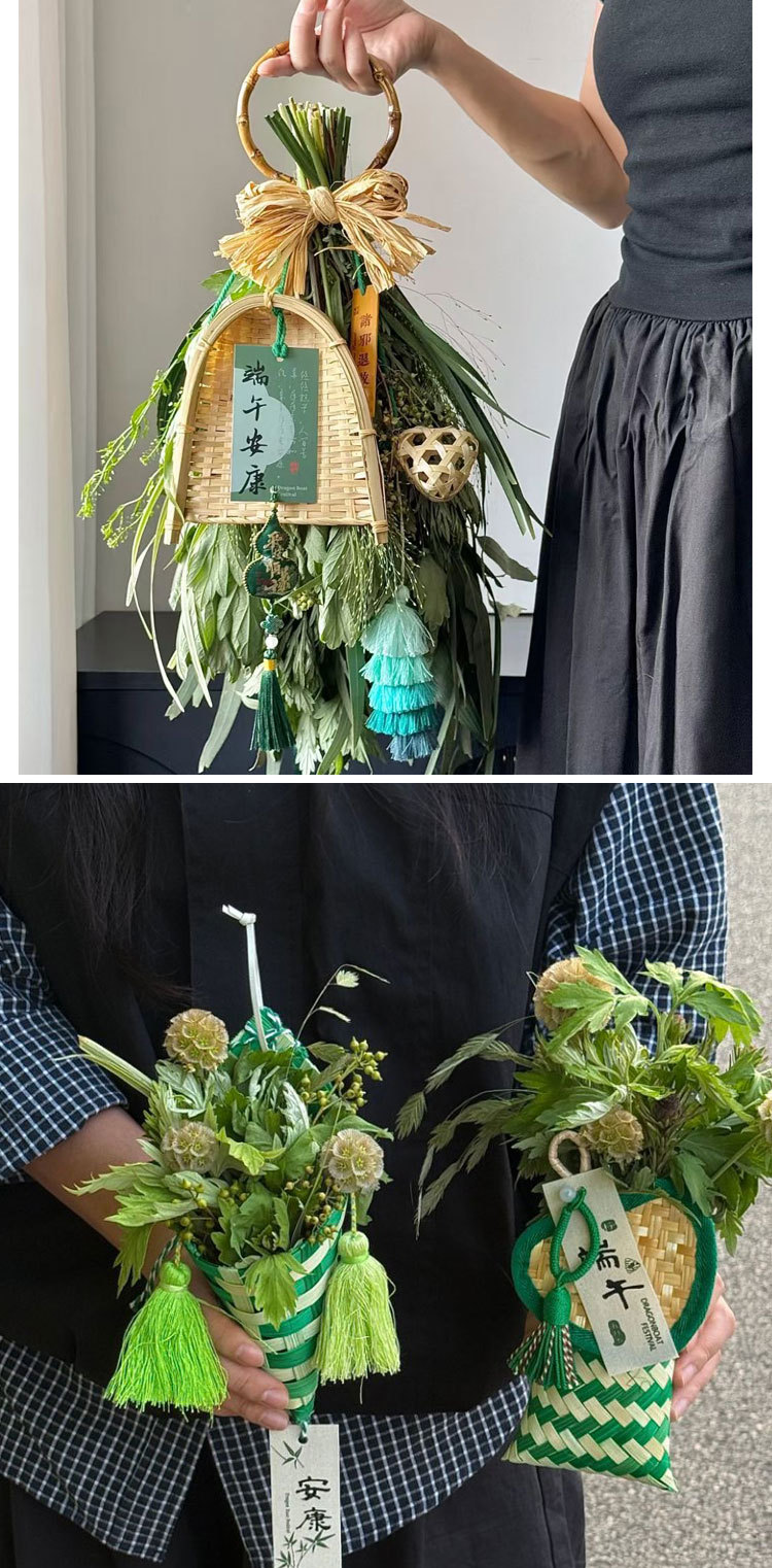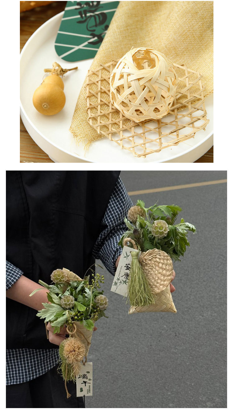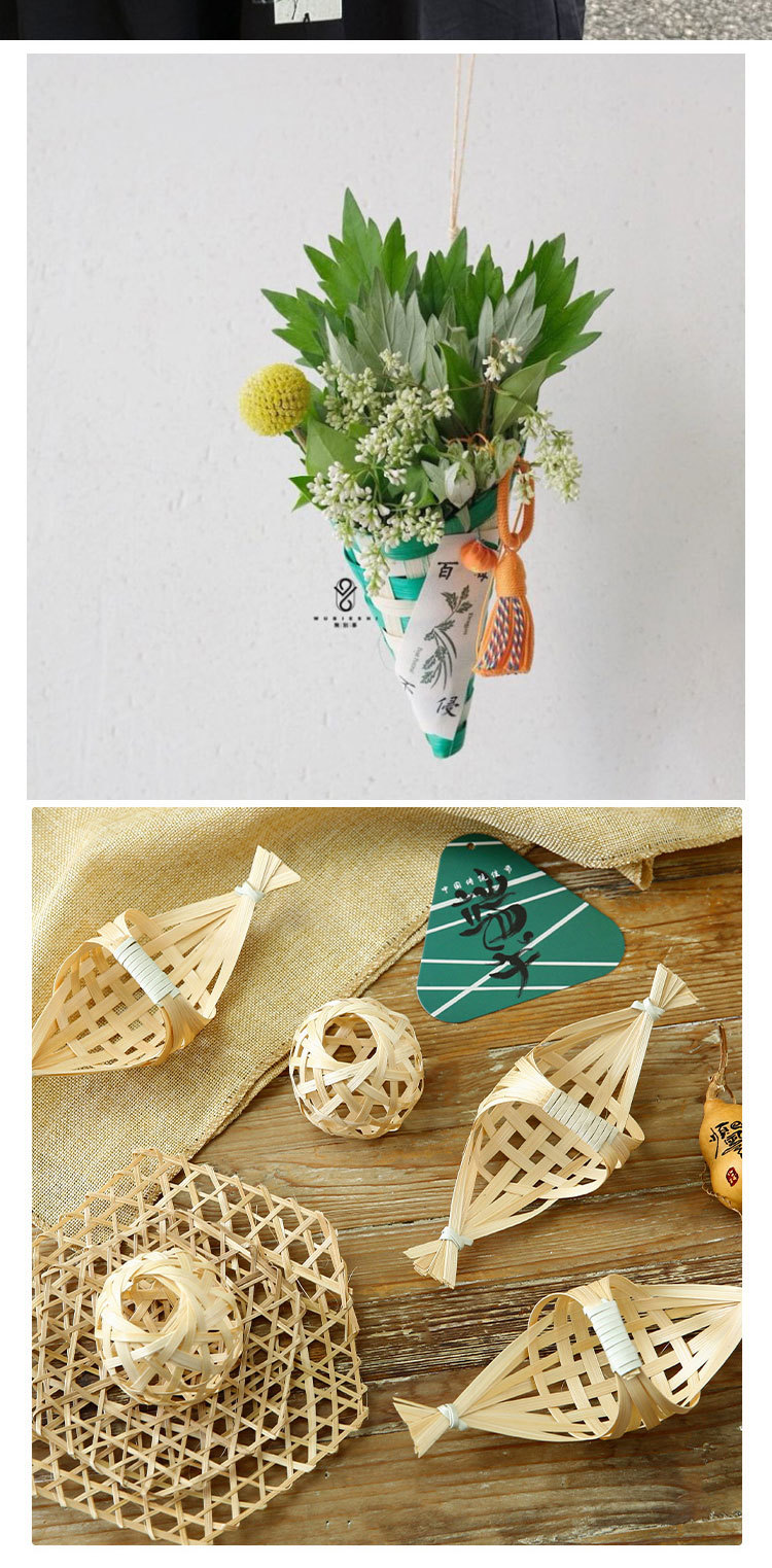 Festival del Bote del Dragón Tejer de bambú Hecho a mano Diy Barco del bote del dragón Bolso de ajenjo Ramo Empaquetado Decoración de la puerta Colgante de la puerta Joyas de coche hechas a mano
